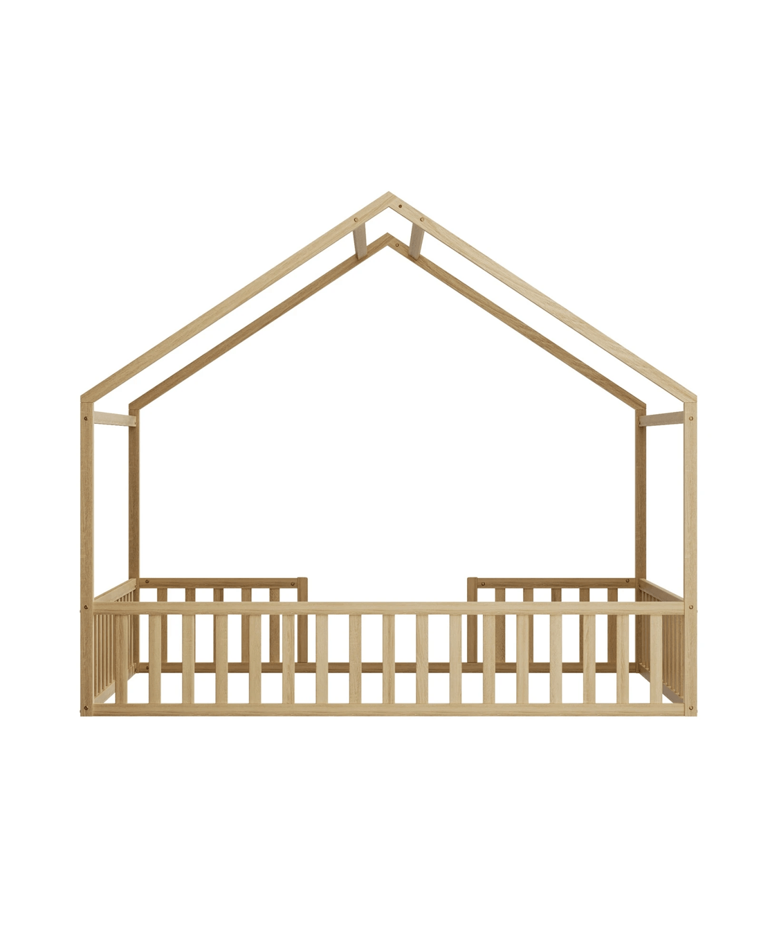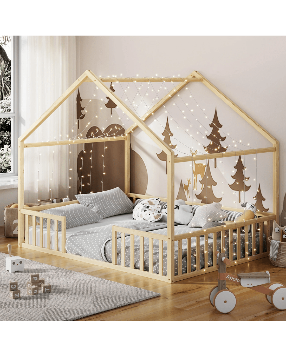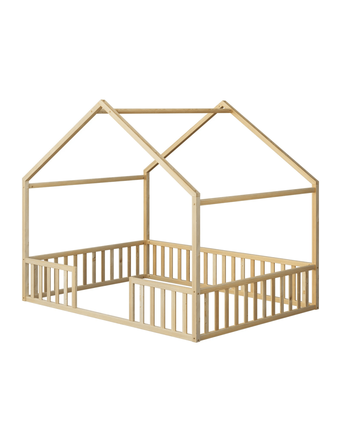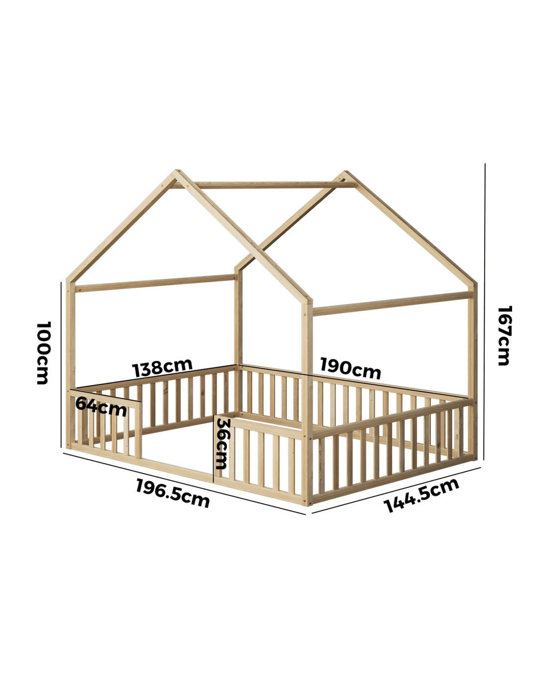 Sold by Kamprad's Oikos 1943Oikiture Double House Bed Kids Wooden Bed Frame - Natural