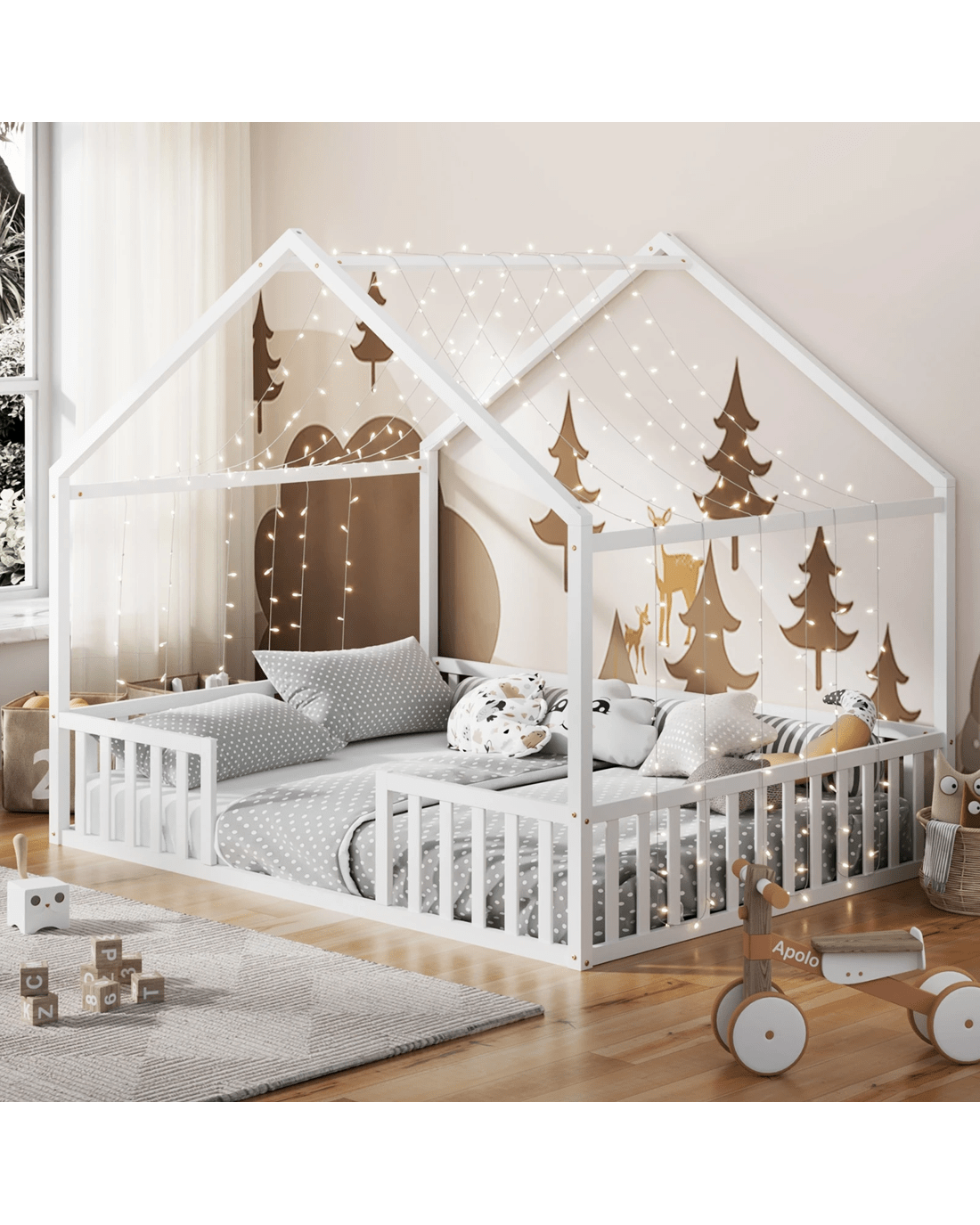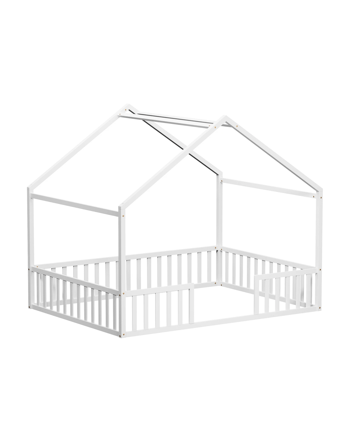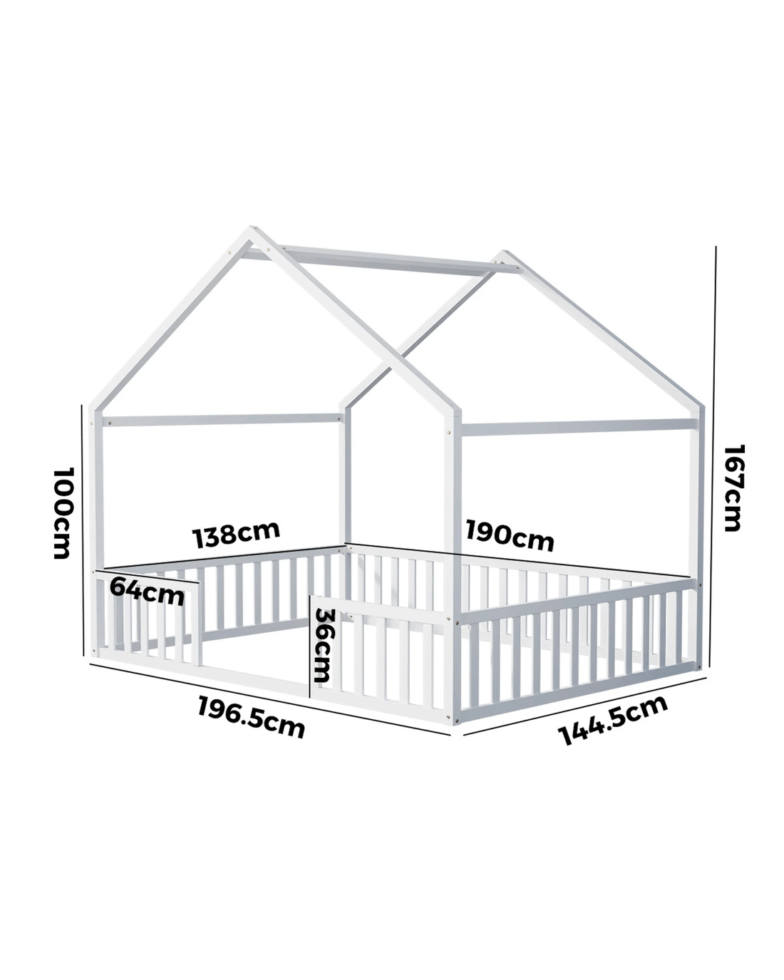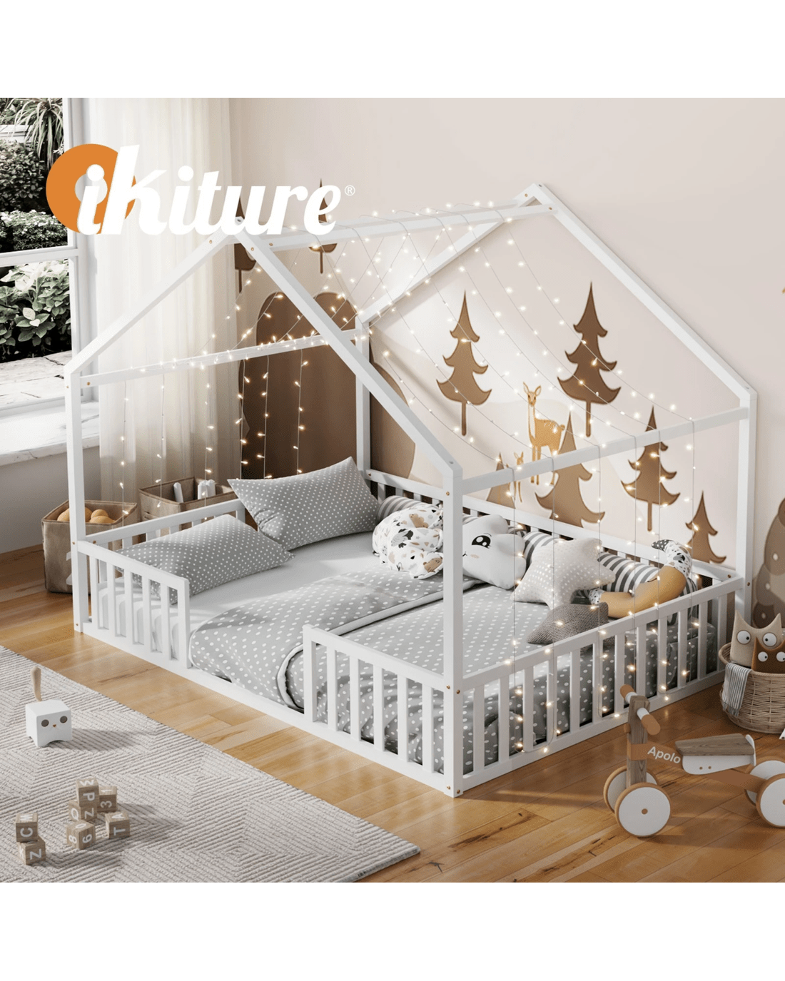 Sold by Kamprad's Oikos 1943Oikiture Double House Bed Kids Wooden Bed Frame - White