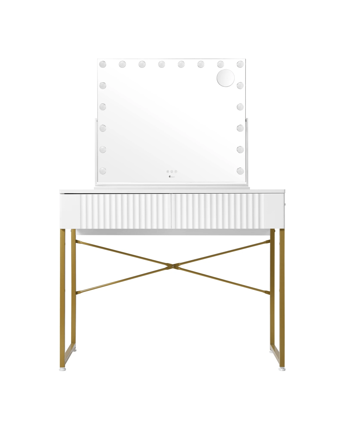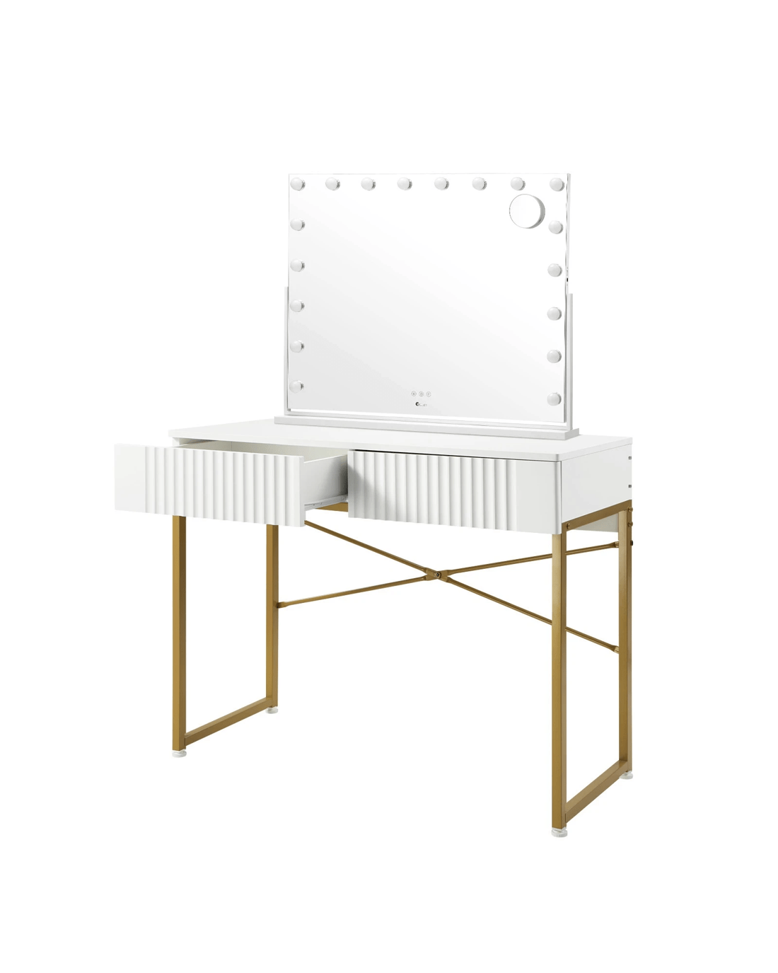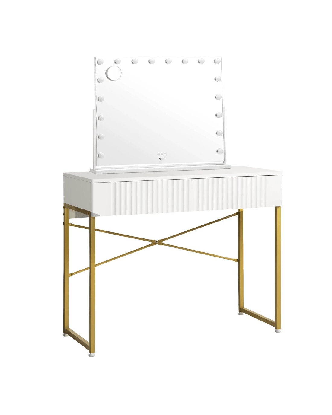 Oikiture Dressing Table Bluetooth Hollywood Rotatable Makeup Mirror Vanity Desk - White