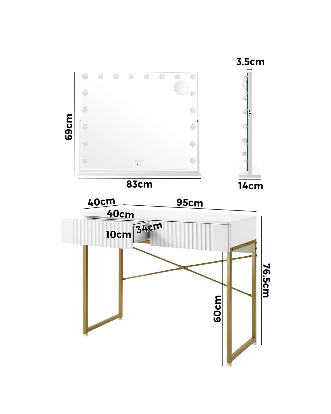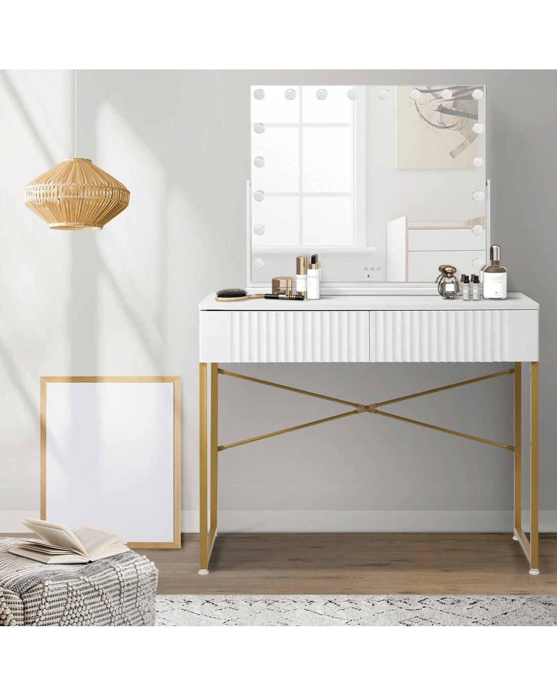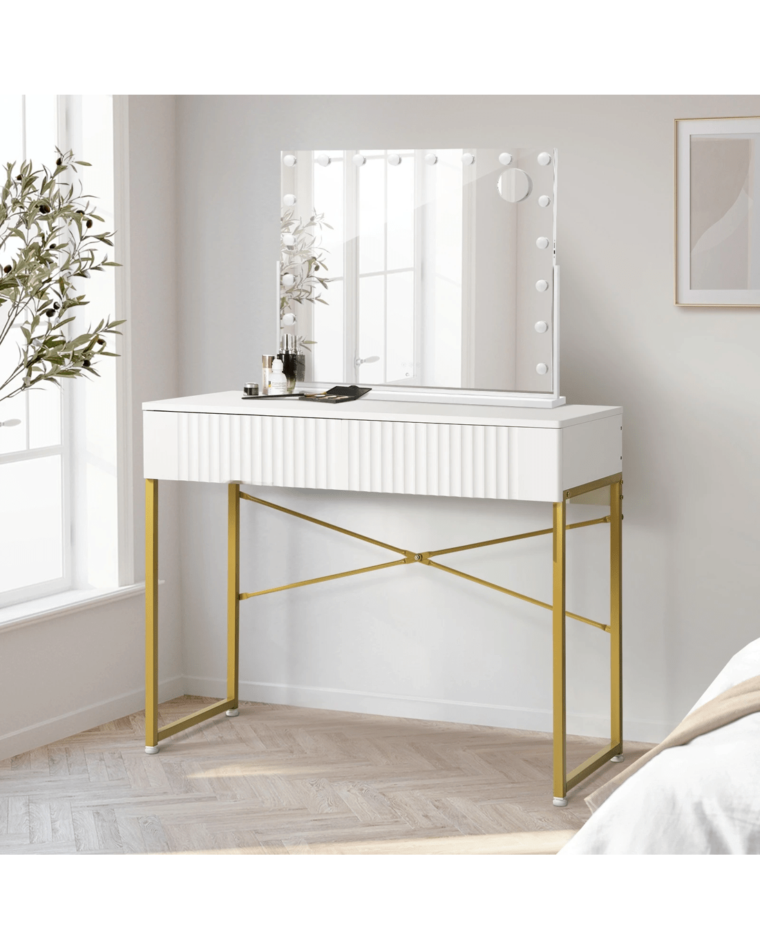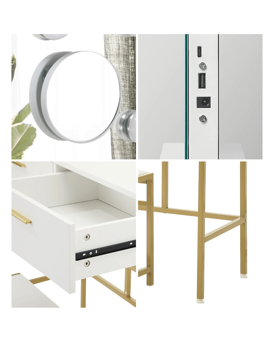 Oikiture Dressing Table Bluetooth Hollywood Rotatable Makeup Mirror Vanity Desk - White