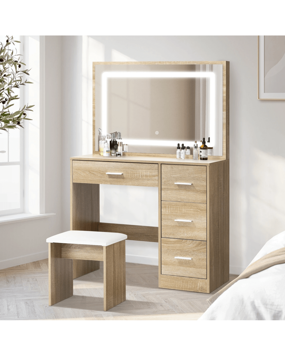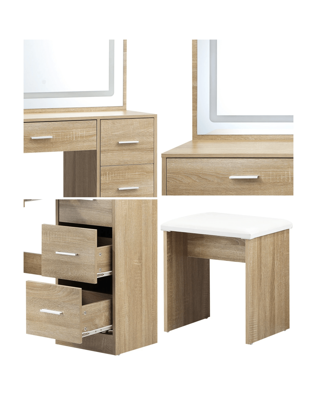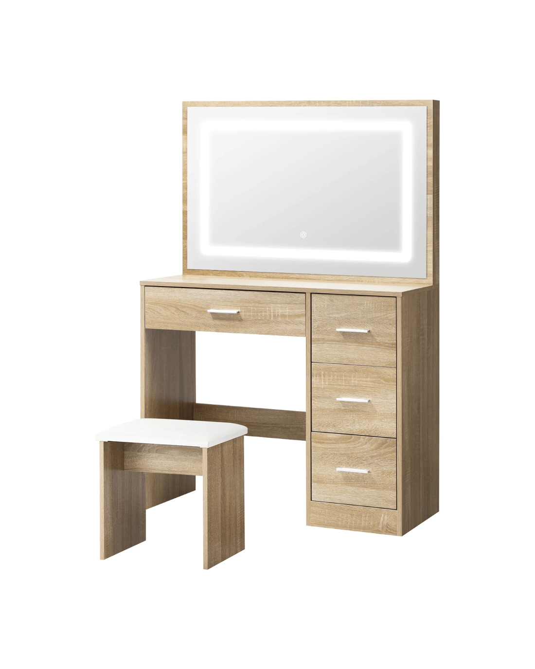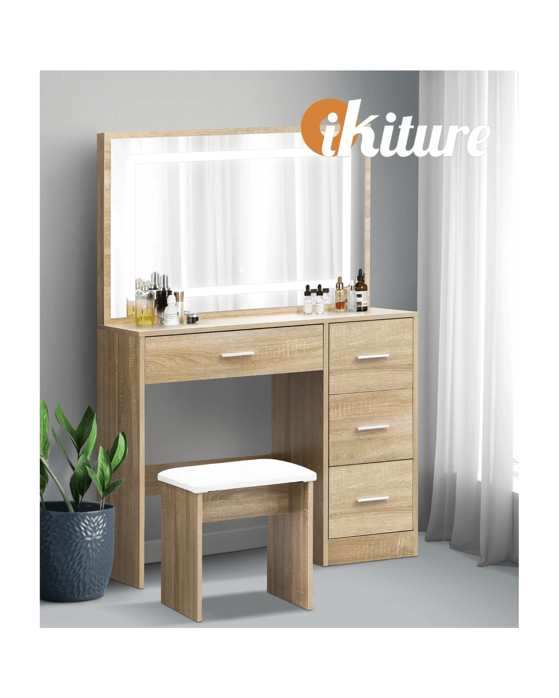 Sold by Kamprad's Oikos 1943Oikiture Dressing Table Stool Set Large Makeup Mirror Led Light Vanity - Natural