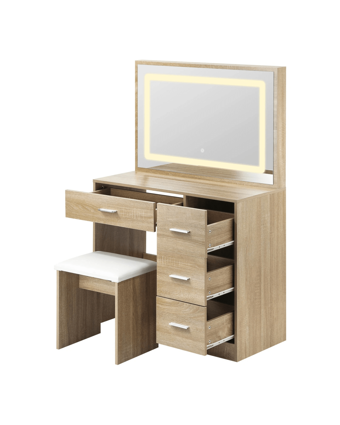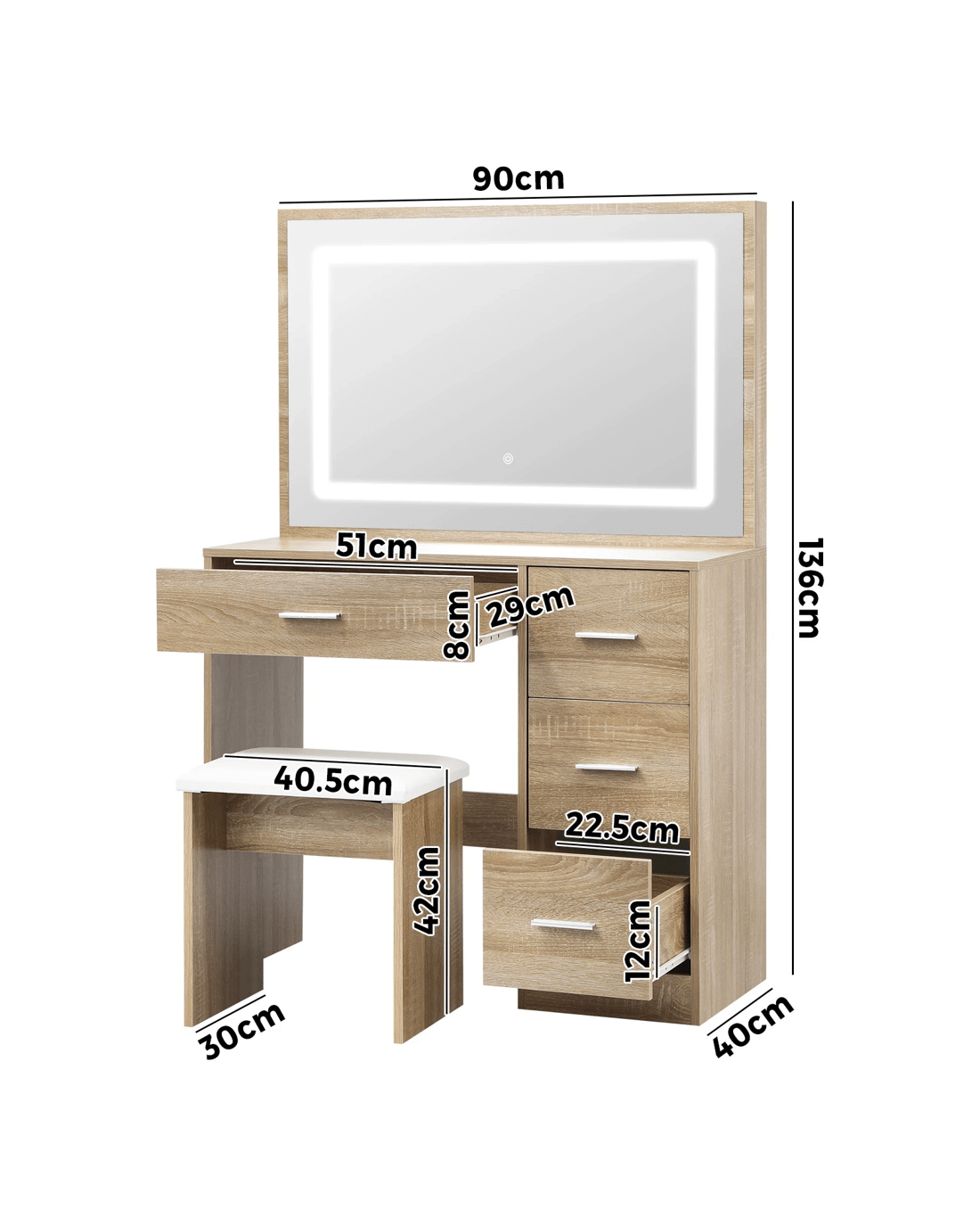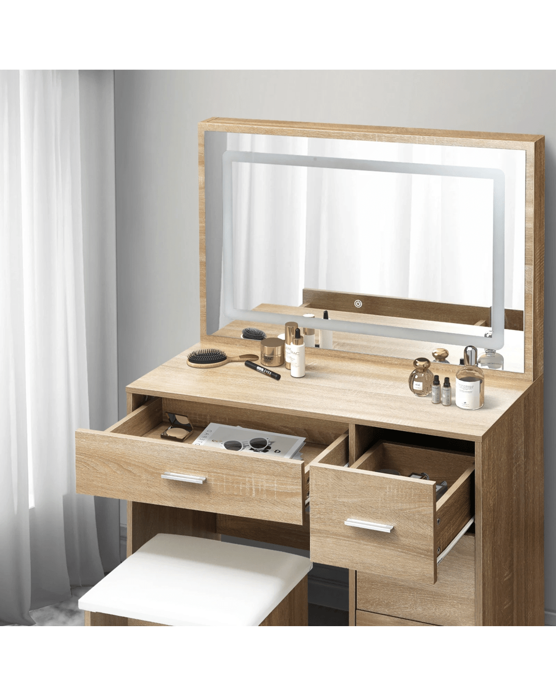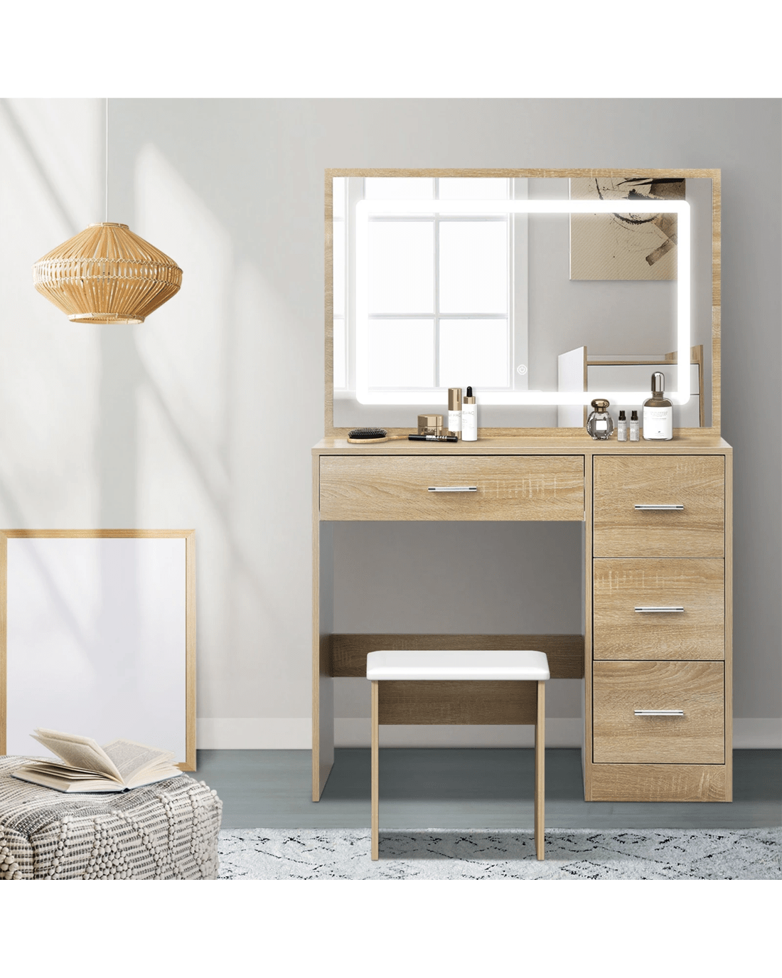 Sold by Kamprad's Oikos 1943Oikiture Dressing Table Stool Set Large Makeup Mirror Led Light Vanity - Natural