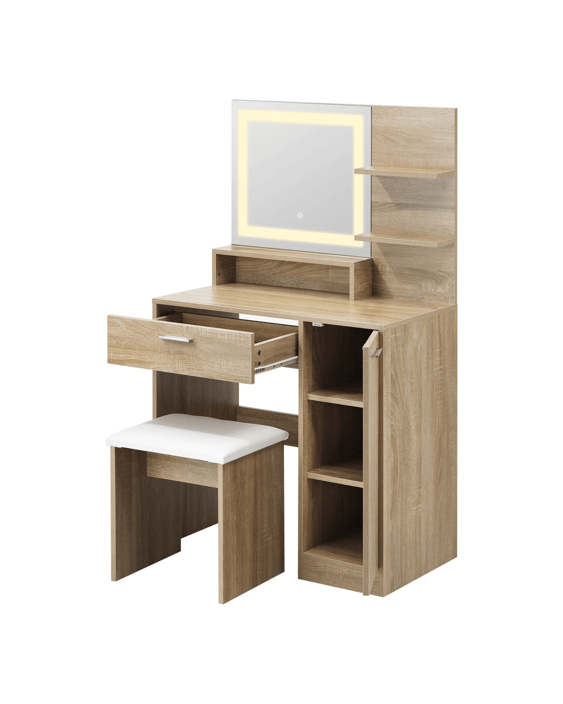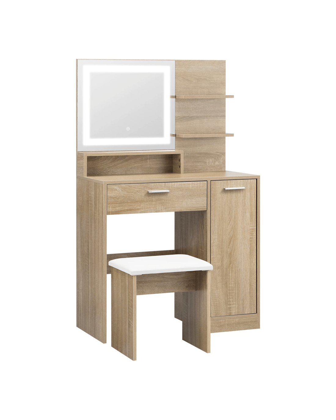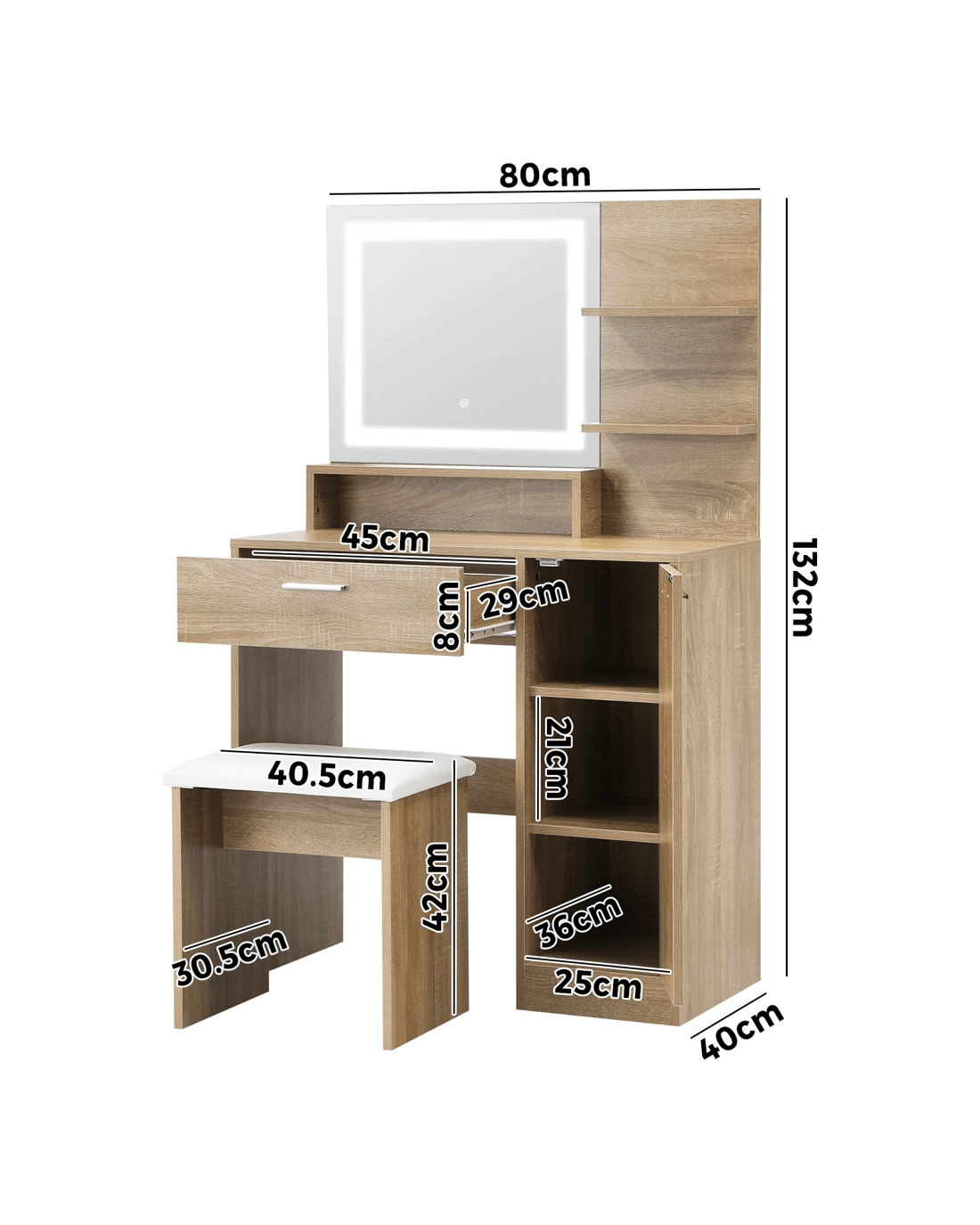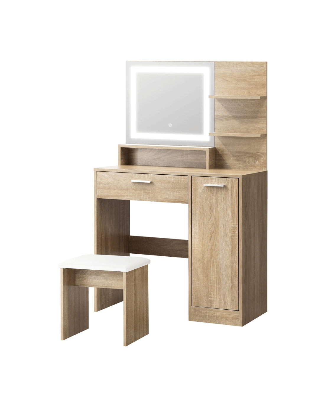Sold by Kamprad's Oikos 1943Oikiture Dressing Table Stool Set Makeup Mirror Led Light Large Cabinet - Natural