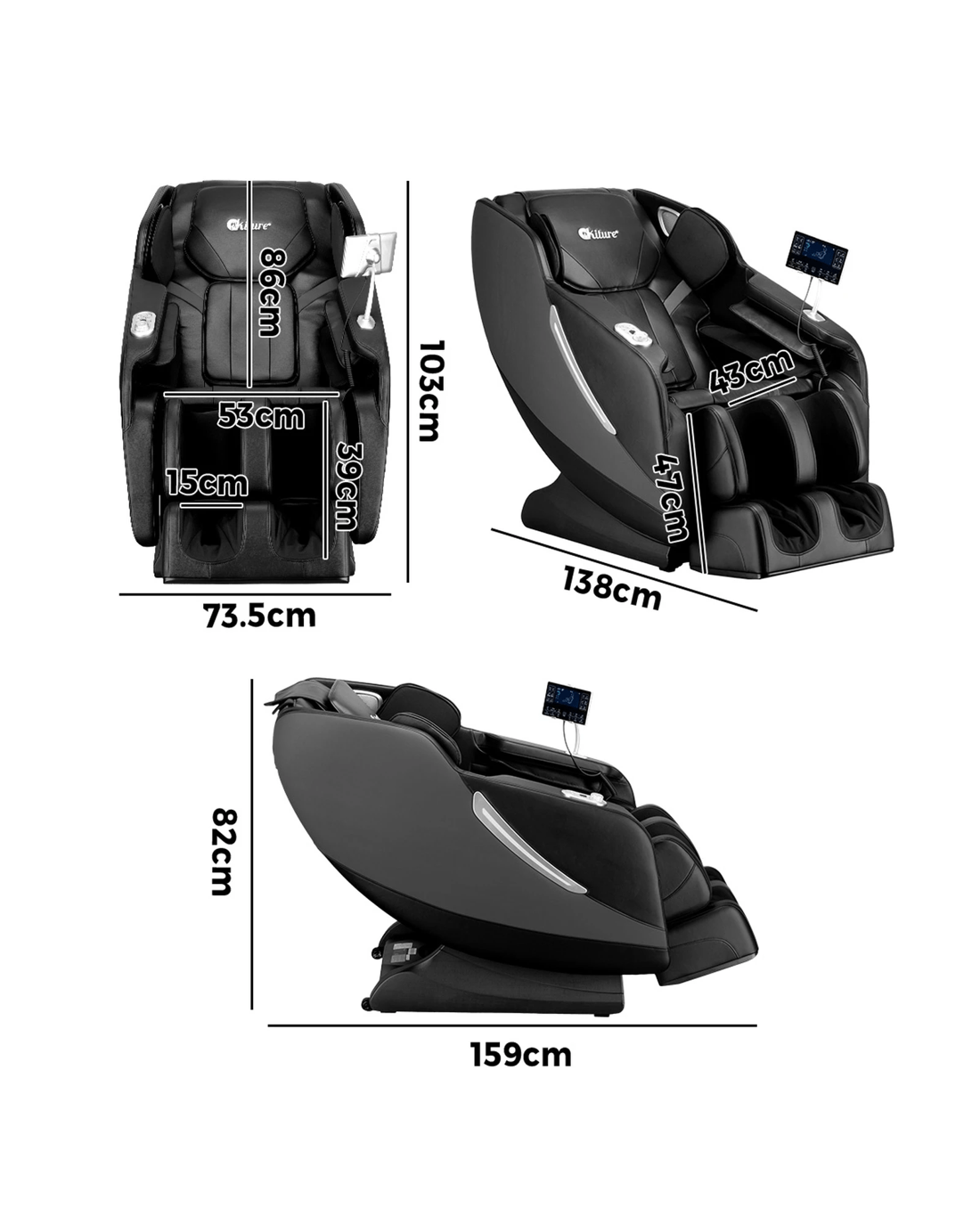 Oikiture Electric Massage Chair Full Body Zero Gravity Heating Massager - Black