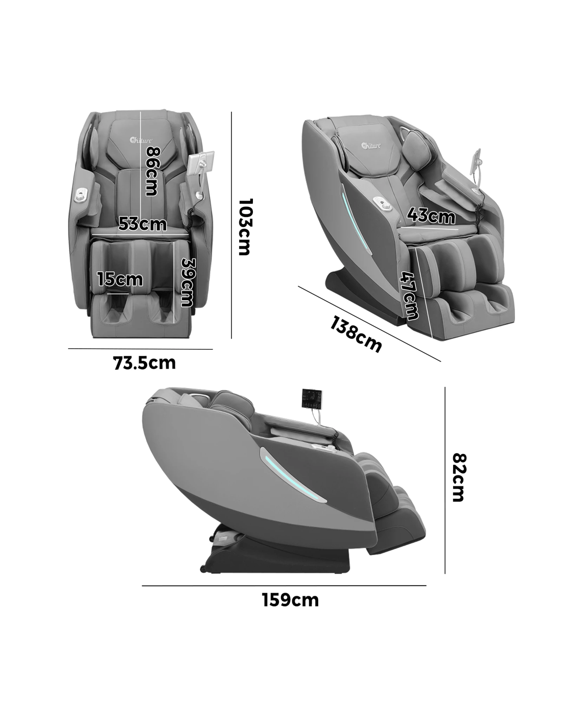Oikiture Electric Massage Chair Heated Recliner Zero Gravity Full Body Massager - Grey