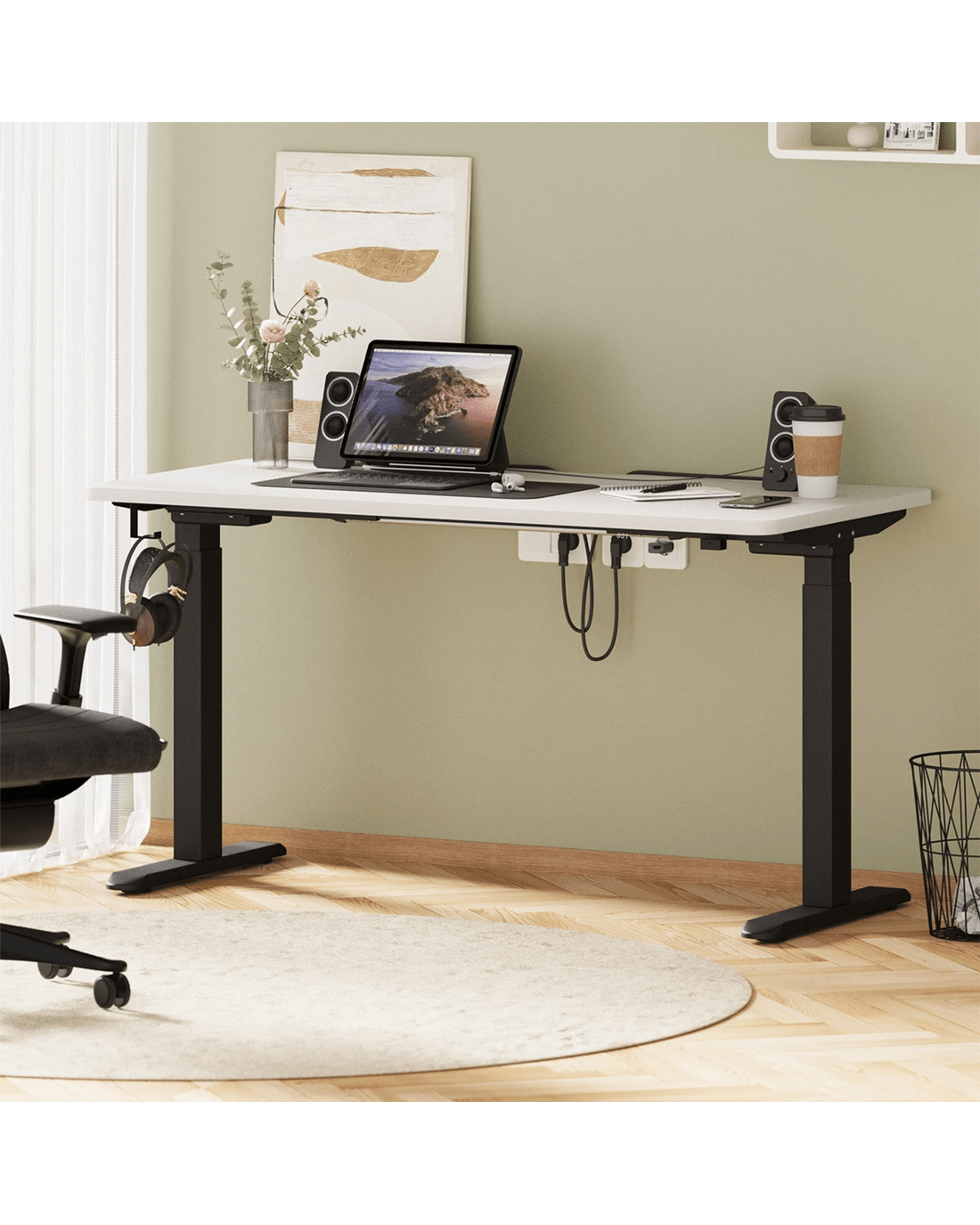 Our sit-stand desk frame features an all-metal construction and a smooth and powerful lifting system that works with incredible stability. No worries about equipment or stationery falling off your desk for sure. The 3-button control panel is easy to use with hassle-free switching between sitting and standing at your fingertips. Convenient USB-A and USB-C ports are also integrated into the control panel. Standard handy add-ons include a headphones hook, power adaptor holder and cable management holders to streamline all cable connections for a neat and tidy integrated look.