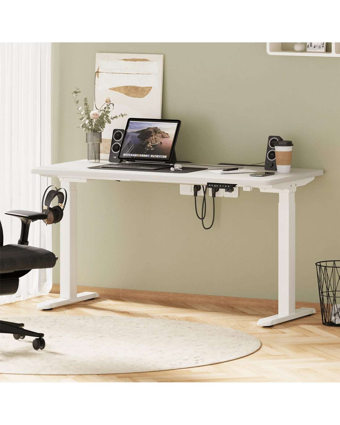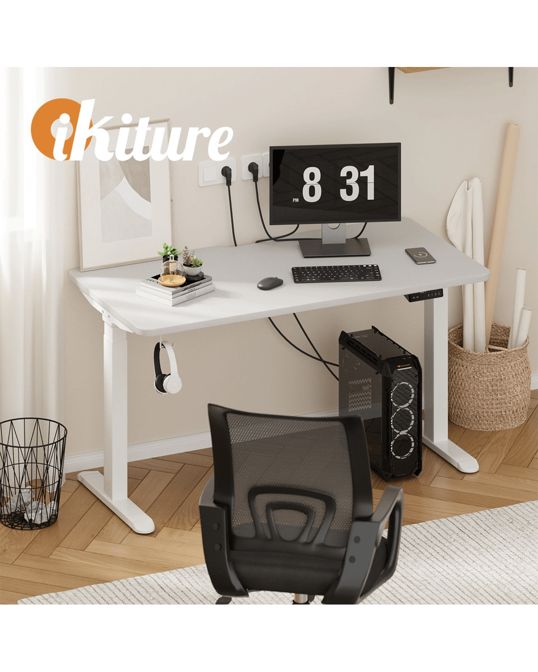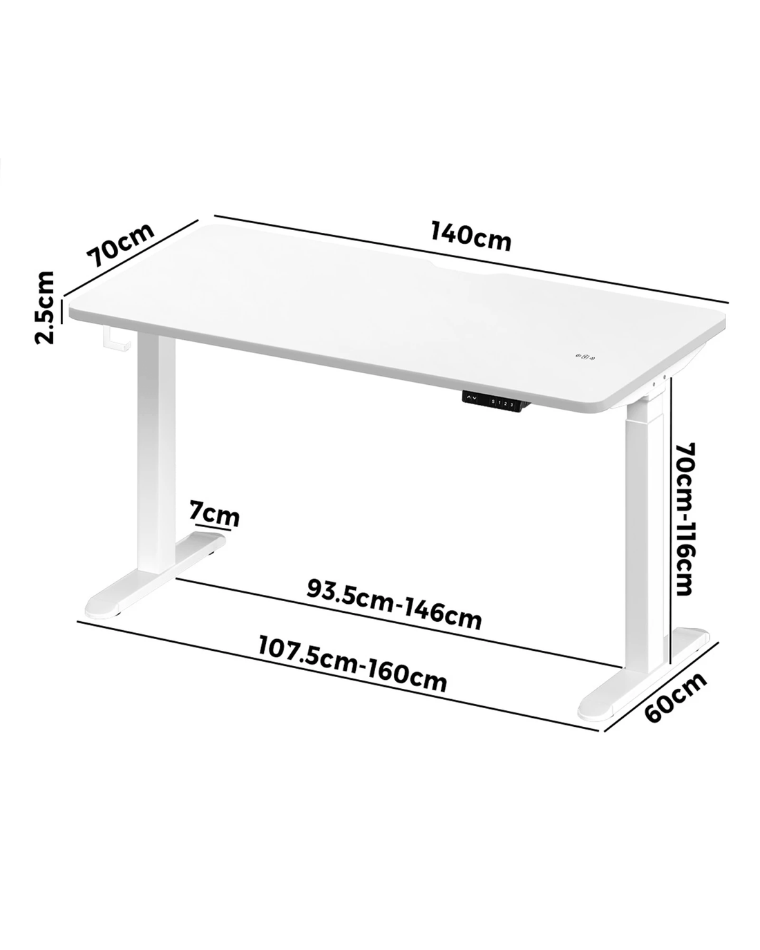 Sold by Kamprad's Oikos 1943Oikiture Electric Standing Desk With Wireless Charging Dual Motor 140cm - White