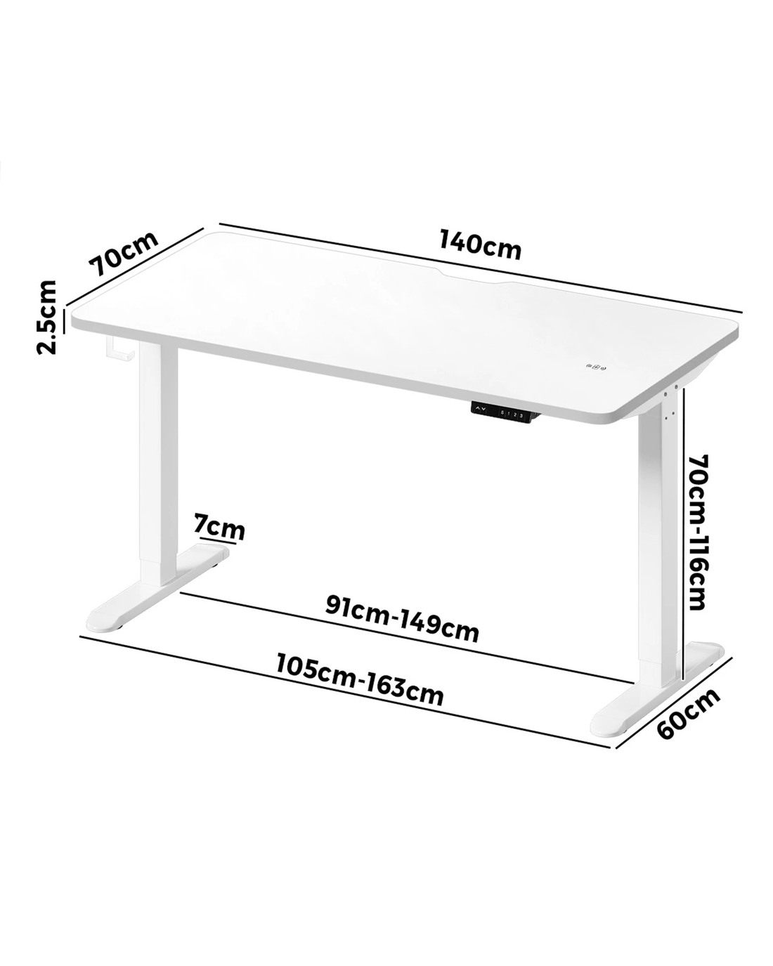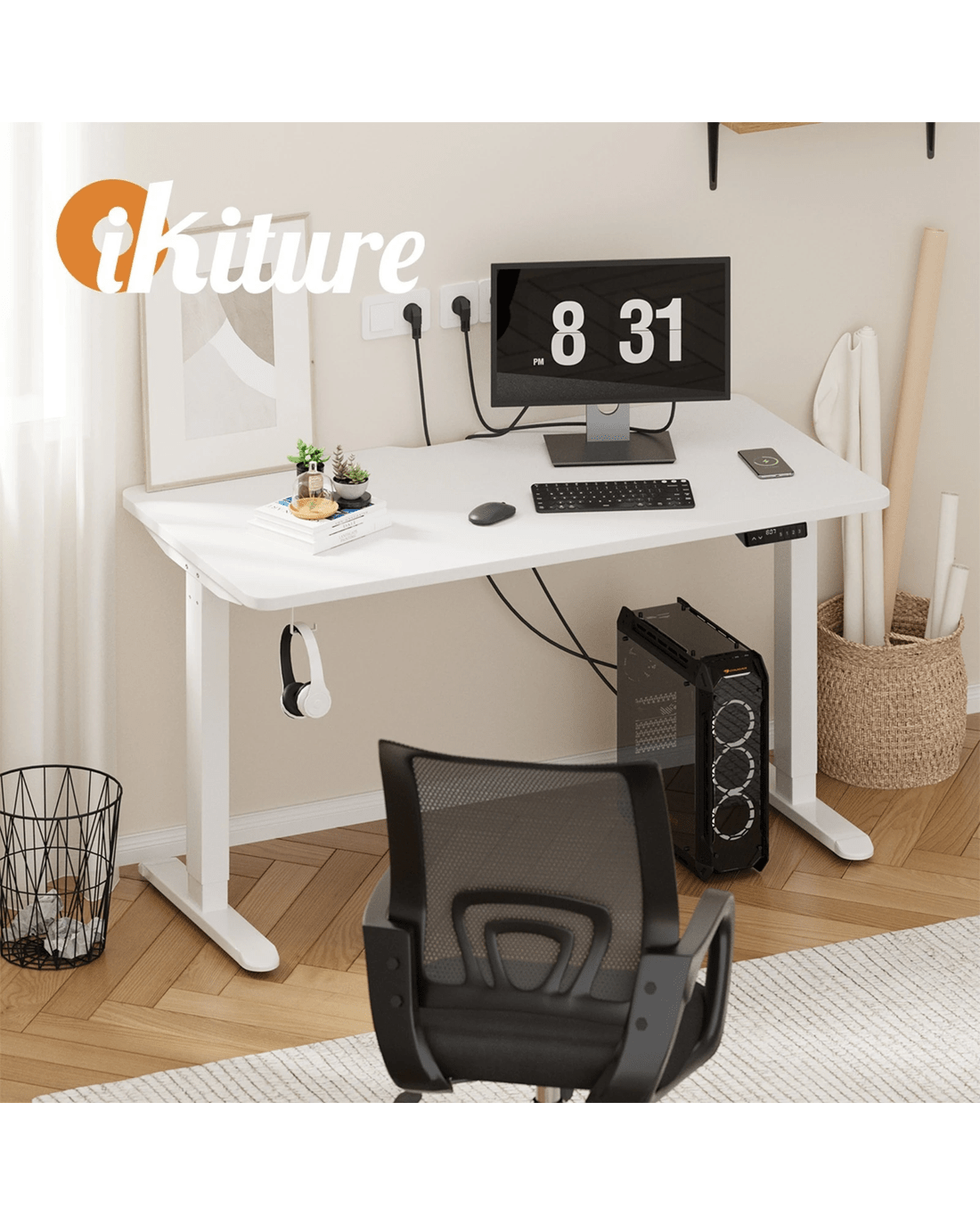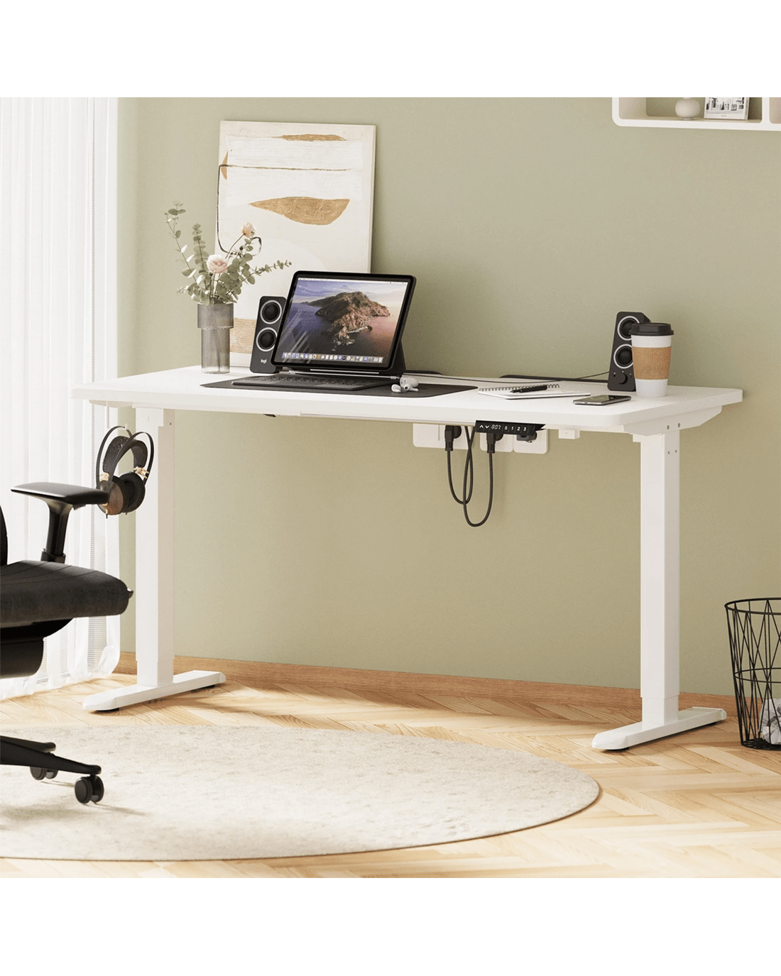 Sold by Kamprad's Oikos 1943Oikiture Electric Standing Desk With Wireless Charging Single Motor 140cm - White