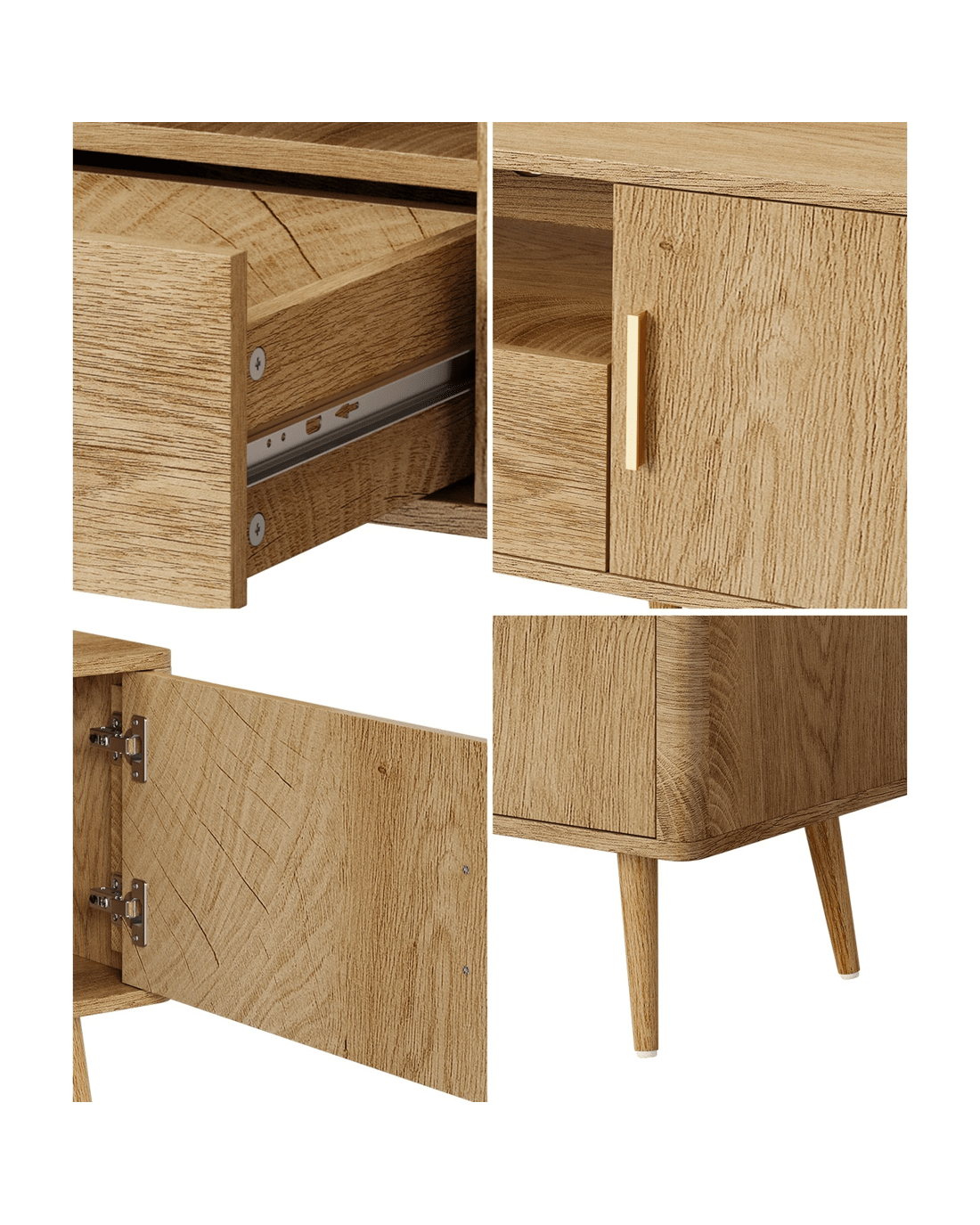 Overall, the finishing is meticulous as it is reassuring with a 15mm particle board construction that features quality components and sturdy solid wood splayed legs to provide a balanced and durable support that allow you to showcase your smart TV (up to 60-inch) and assorted display accessories with confidence and style that reflect your lifestyle disposition.