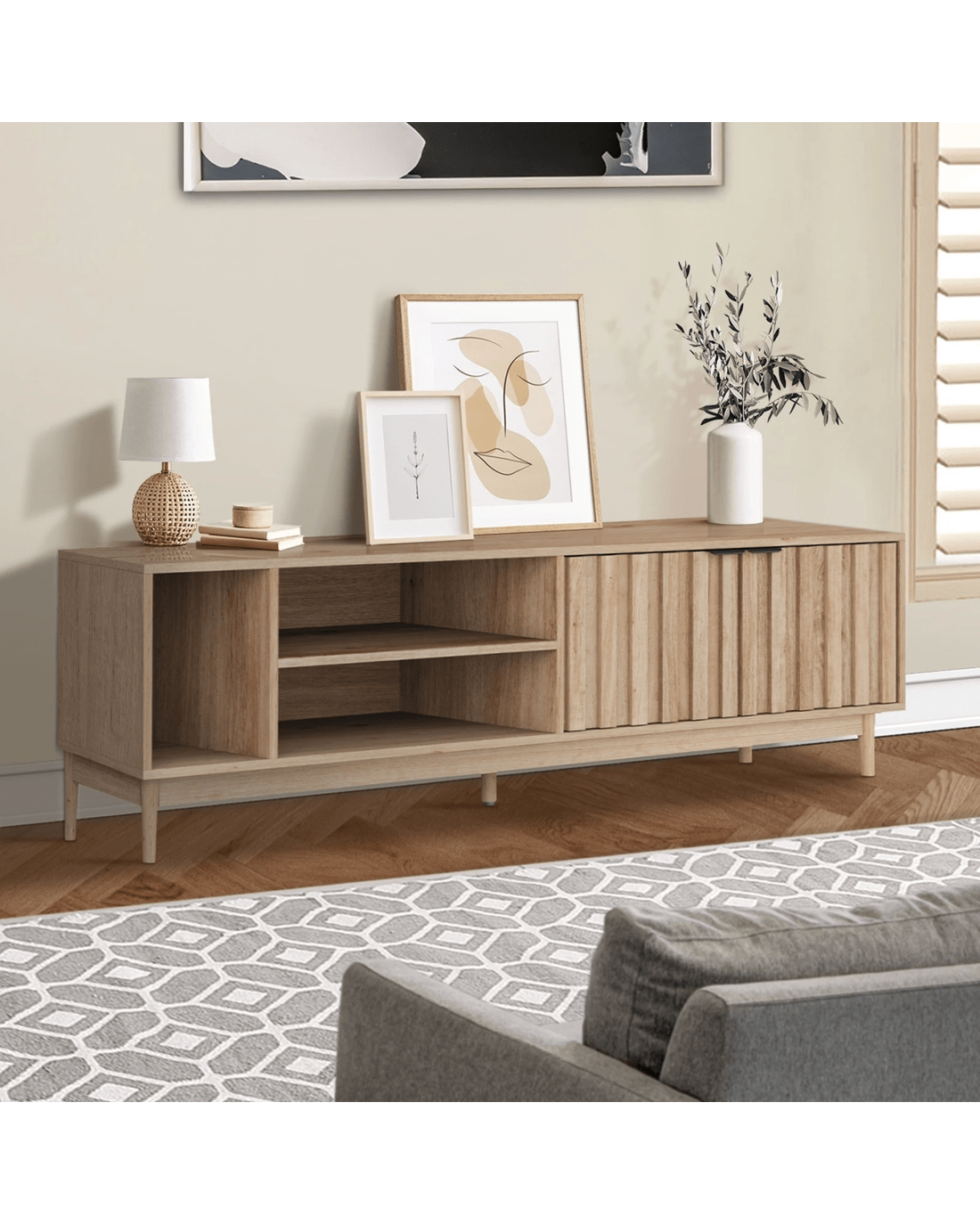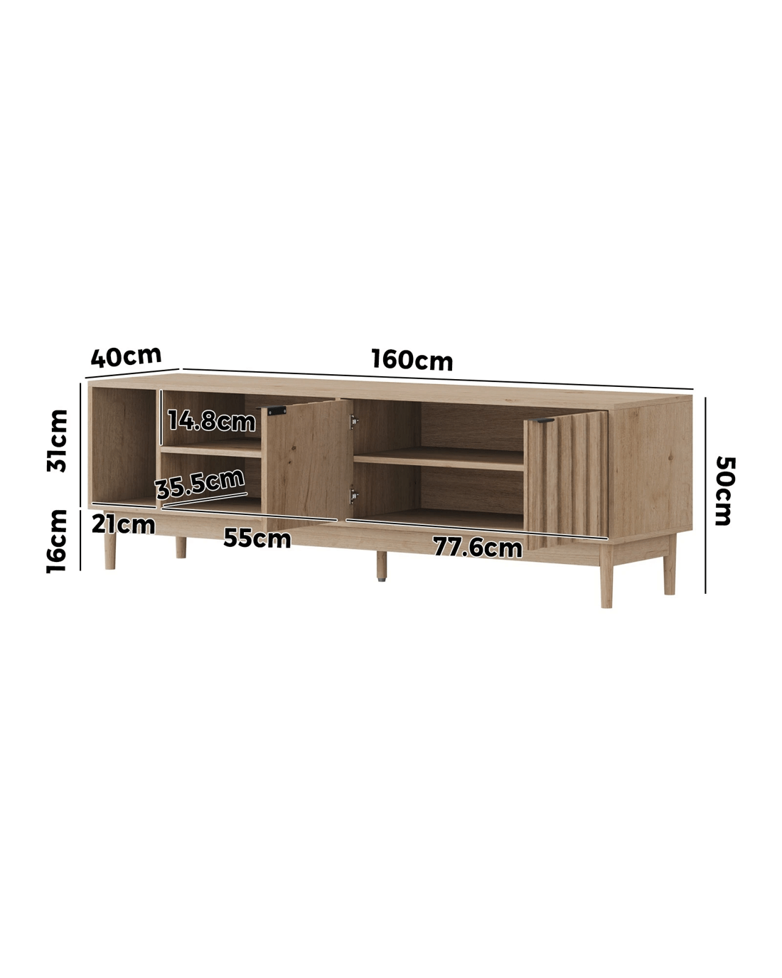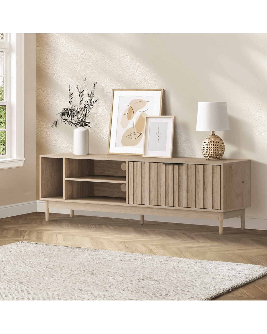 Sold by Kamprad's Oikos 1943Oikiture Entertainment Unit Curved Ripple Door 160cm - Natural