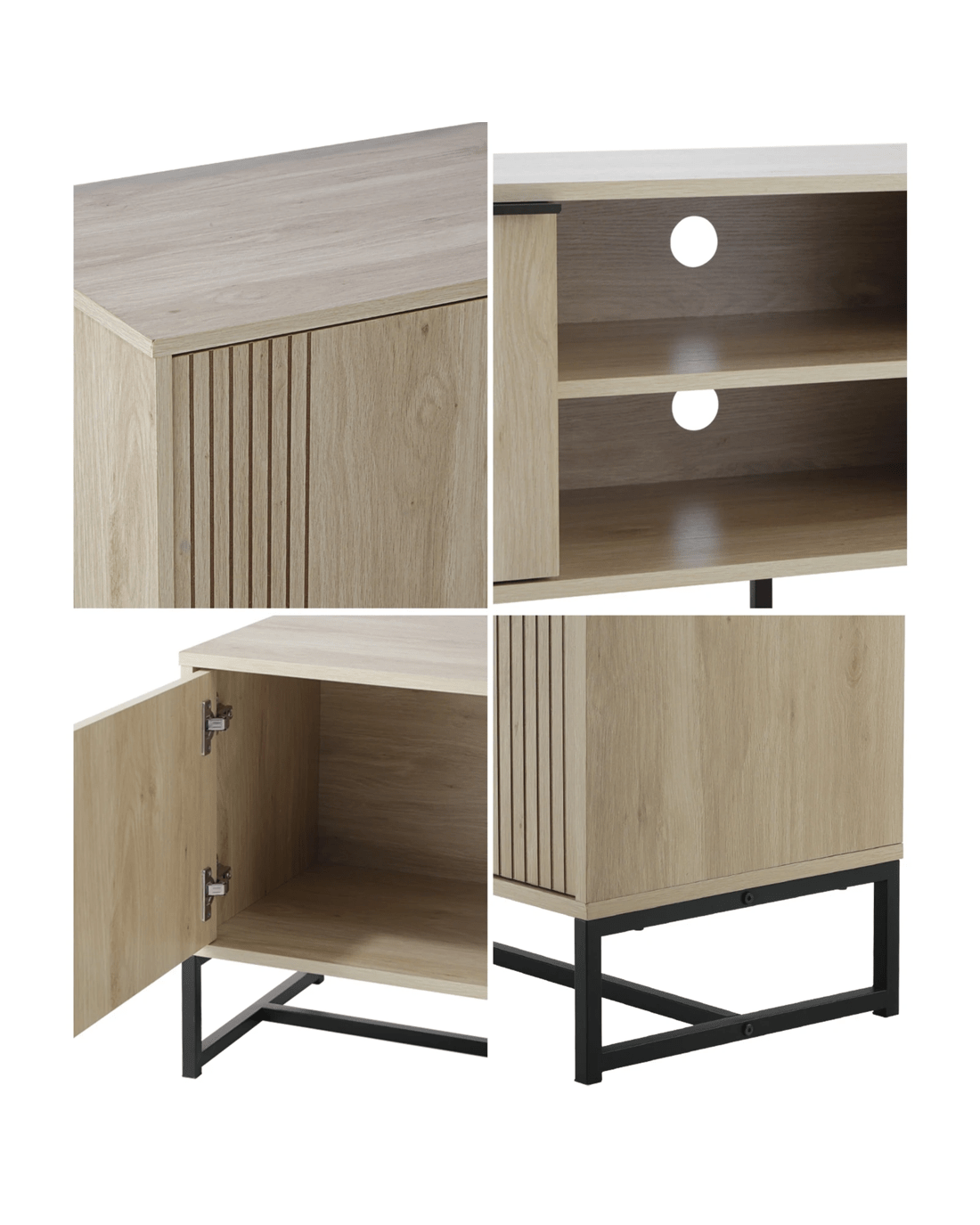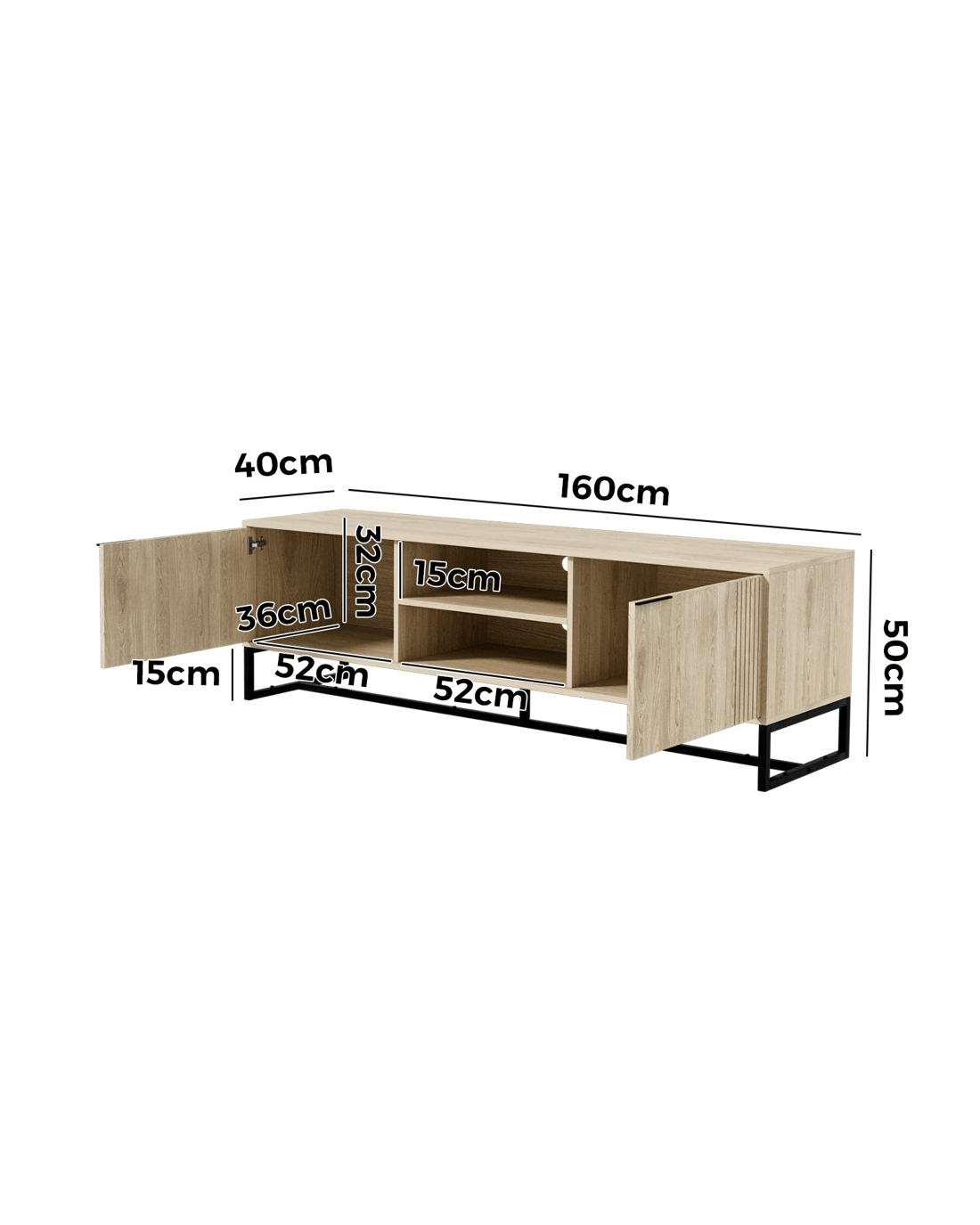 The two closed interior spaces with large cabinet doors at both ends of the unit are cavernous and offer plenty of room for all your entertainment paraphernalia while the central two open shelves add complementary storage with equally spacious offerings. Better still, built-in cable openings behind the two central open shelves allow for easy connection of your media devices as well as ensuring neat and tidy cable management.