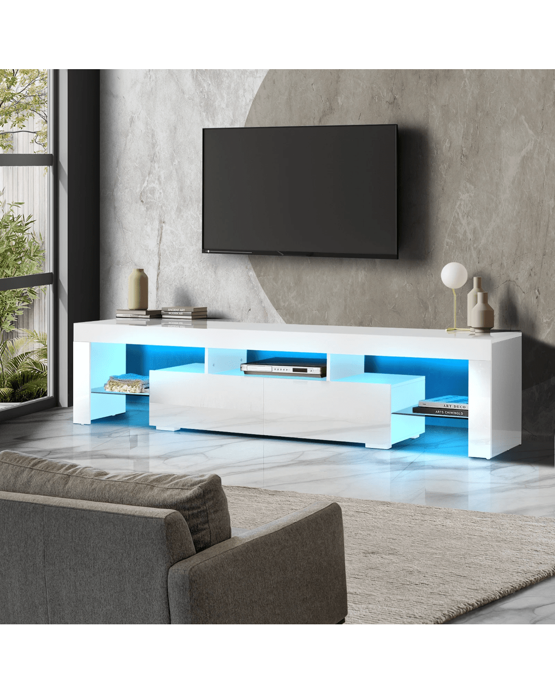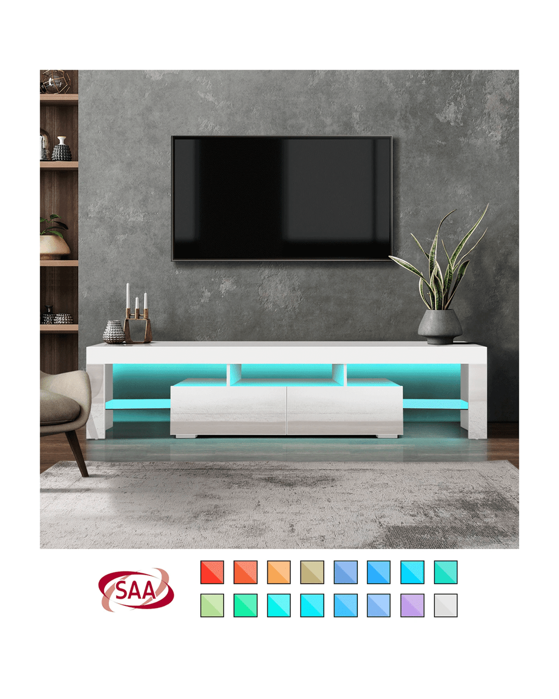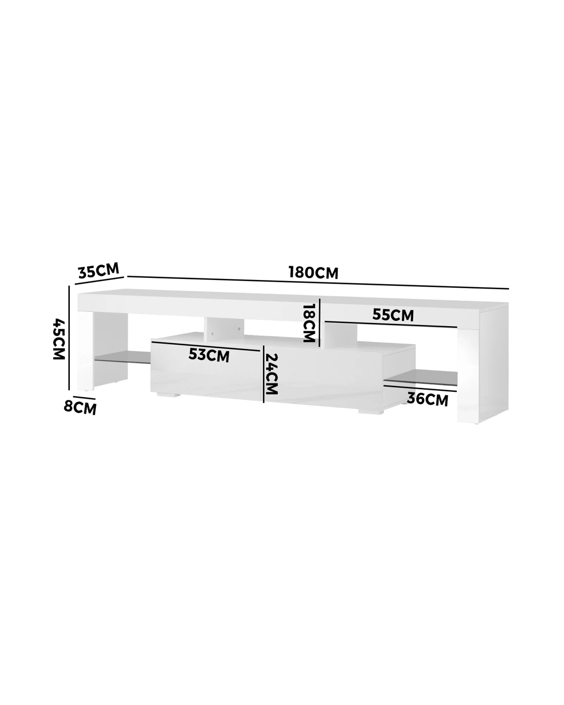 Sold by Kamprad's Oikos 1943Oikiture Entertainment Unit Tv Cabinet Led Rgb Gloss 180cm - White