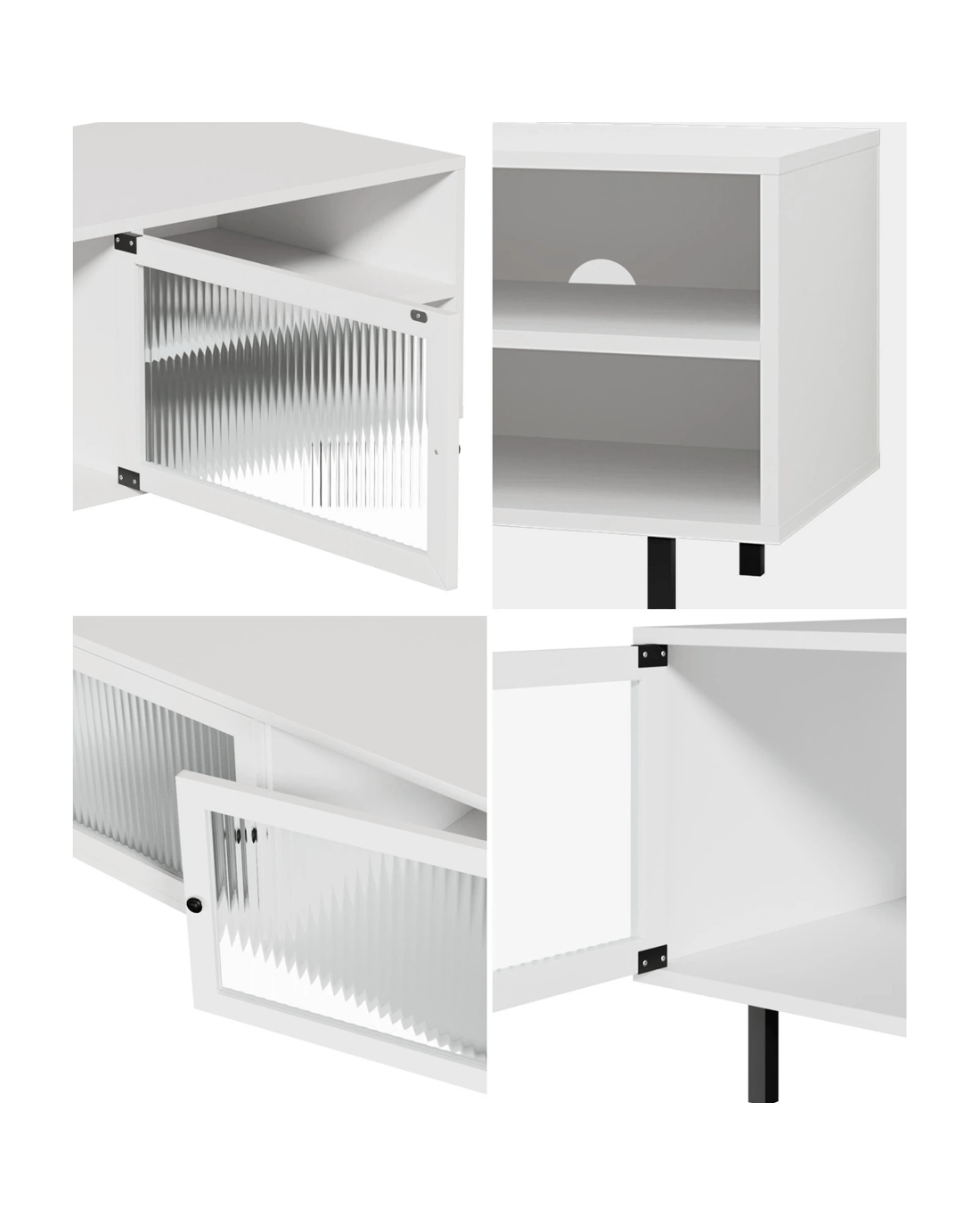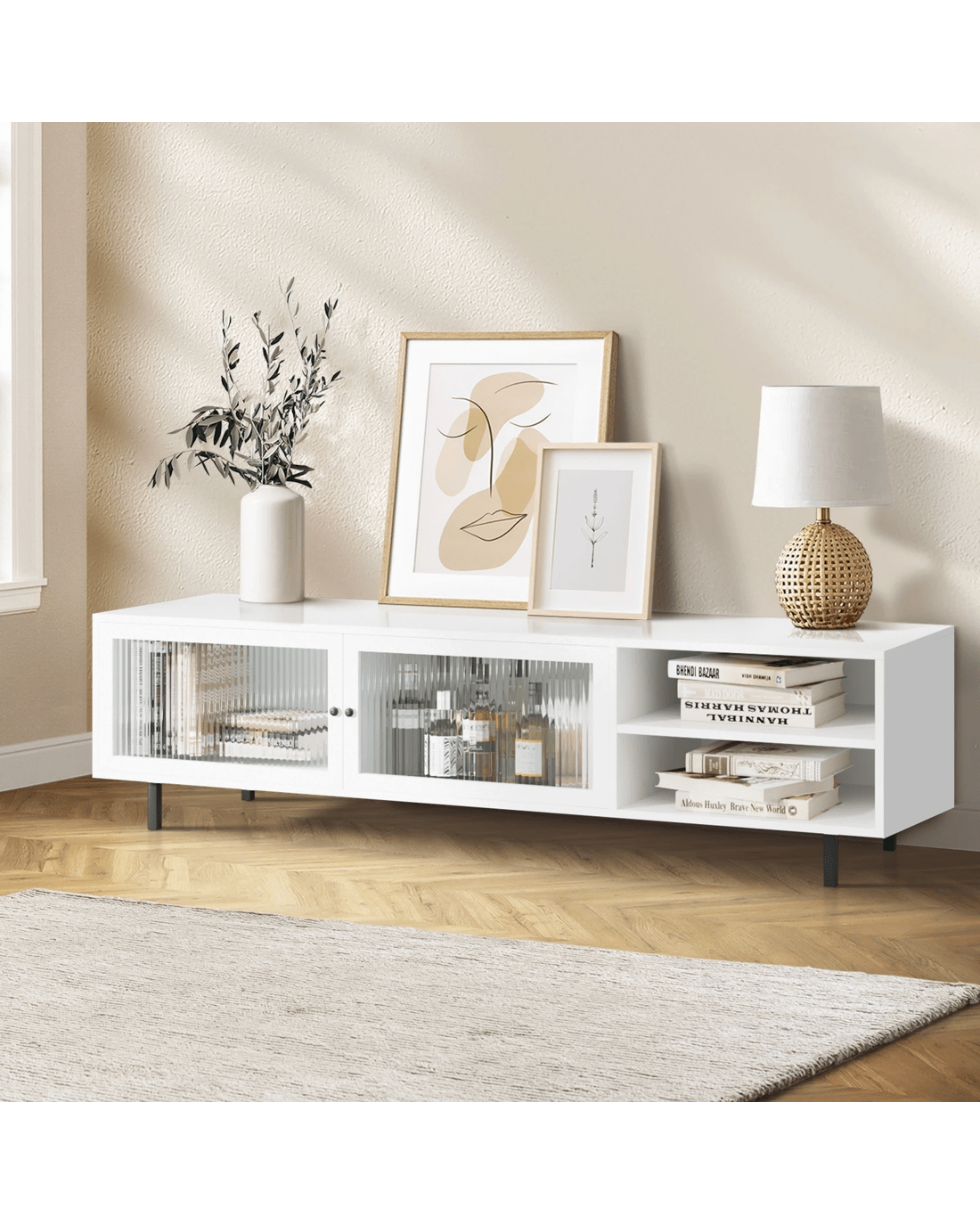 Oikiture Entertainment Unit Tv Cabinet Tempered-glass Doors - White