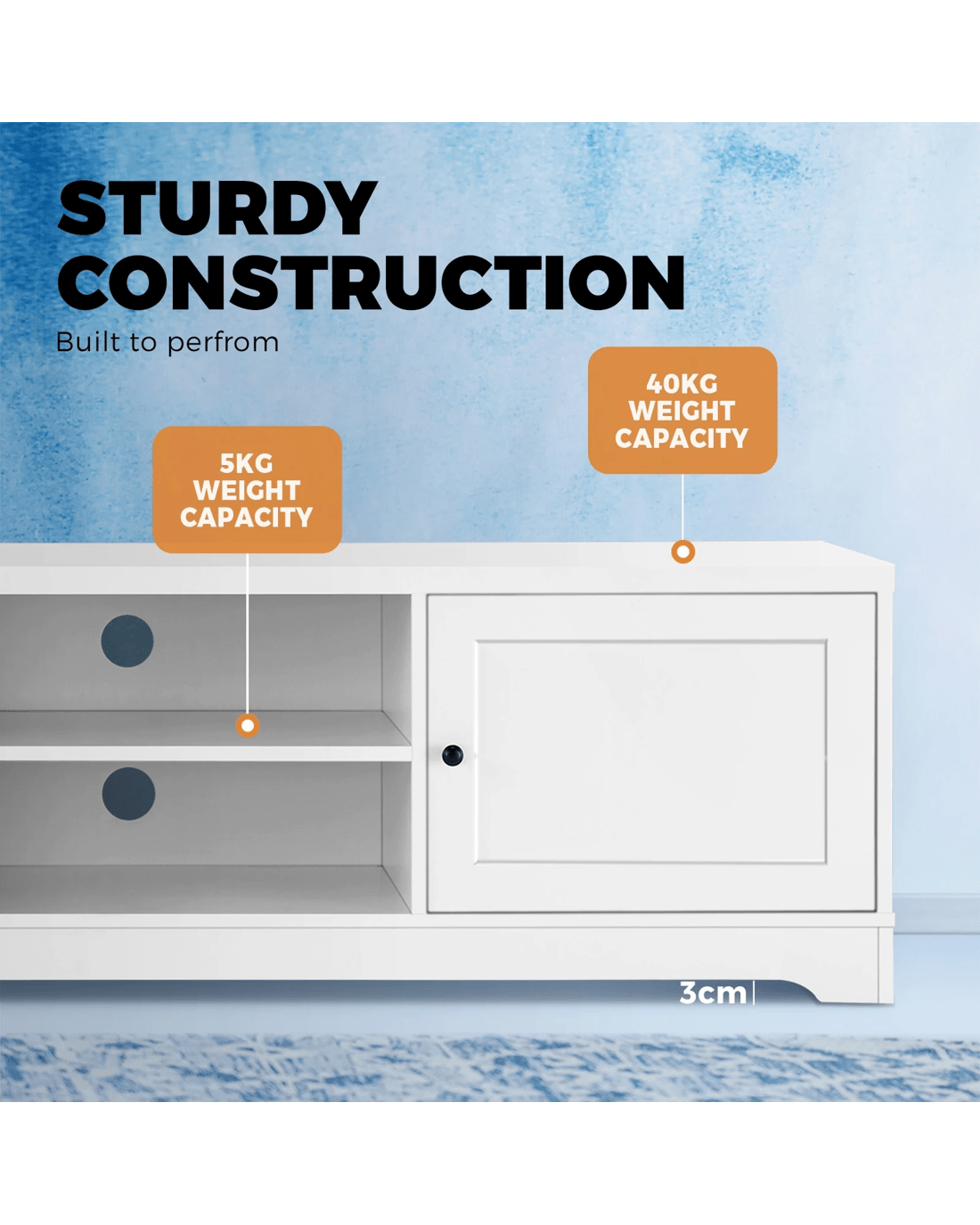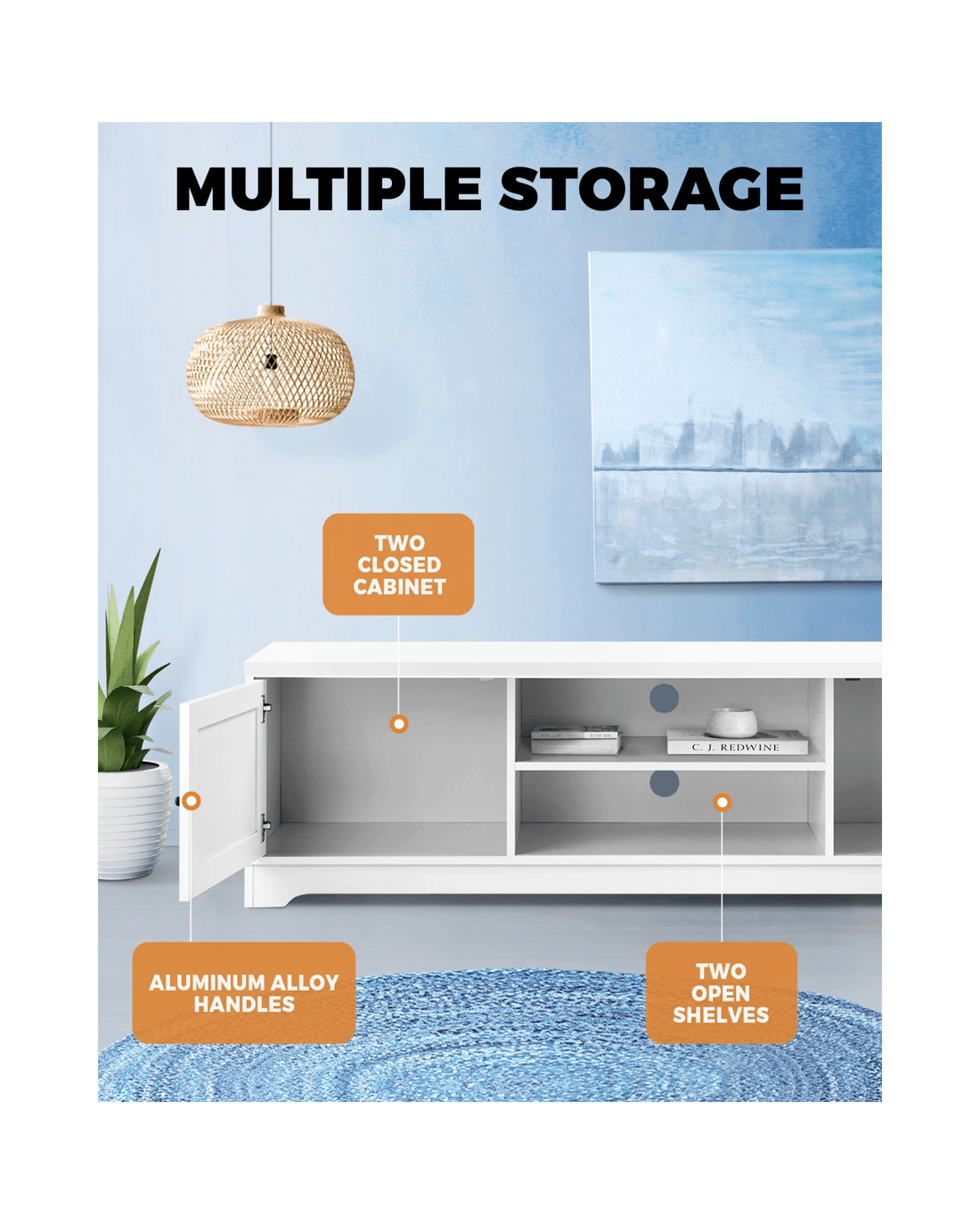 If you desire a stunning centrepiece for your entertainment paraphernalia, then the Oikiture Entertainment Unit is truly captivating eye-candy. Designed with thoughtful considerations, the entertainment unit is utilitarian as it is stylish and outstanding. Crafted with meticulous workmanship and incorporating quality materials, the entertainment is also embellished with ample storage and display areas, both closed and opened, to showcase your smart TV, entertainment equipment and accessories as well as household essentials. Attention to details is also clearly evident with durable hardware and flawless finishing all around. And, not least, with its classic Hamptons style design, our Oikiture Entertainment Unit is all about country sophistication right in front of you.