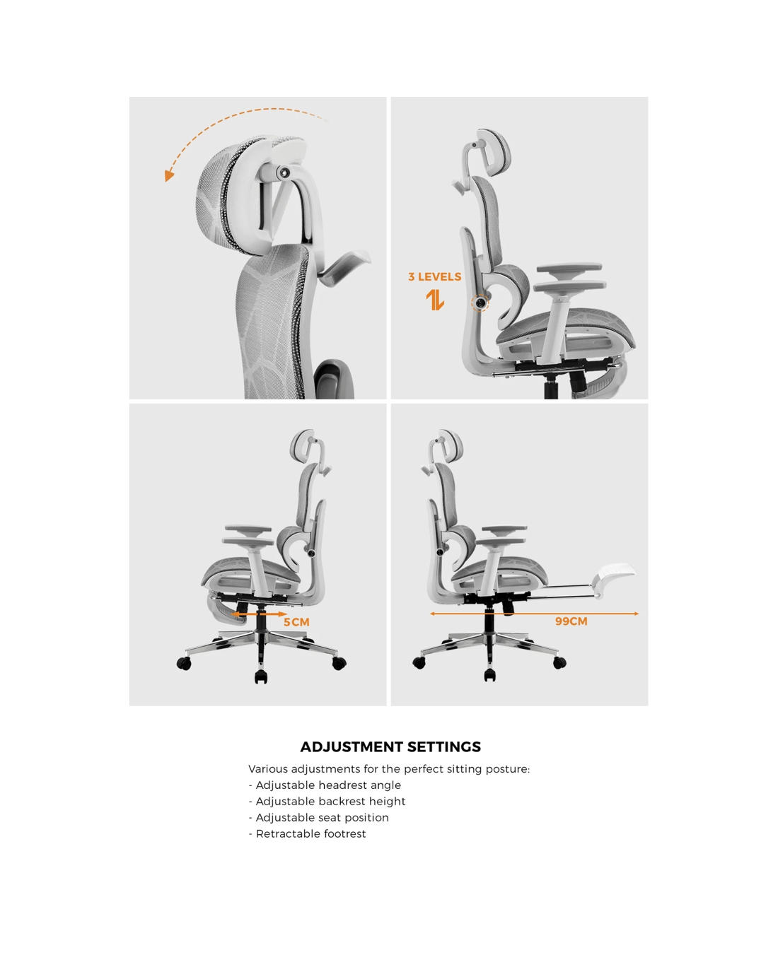 3-step height adjustable backrest