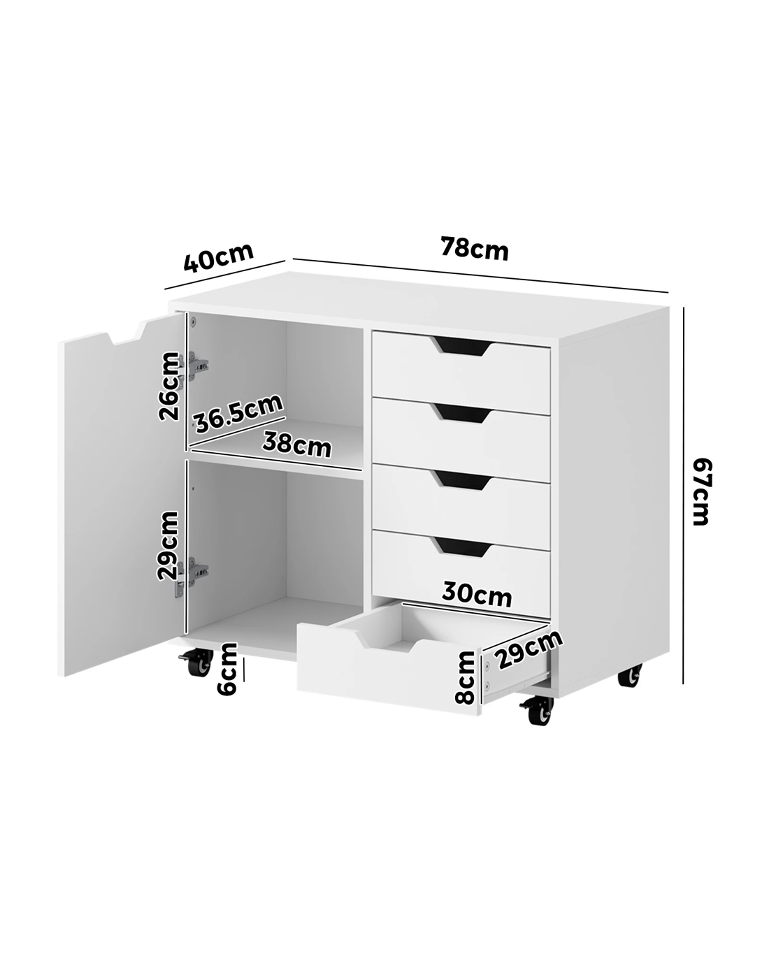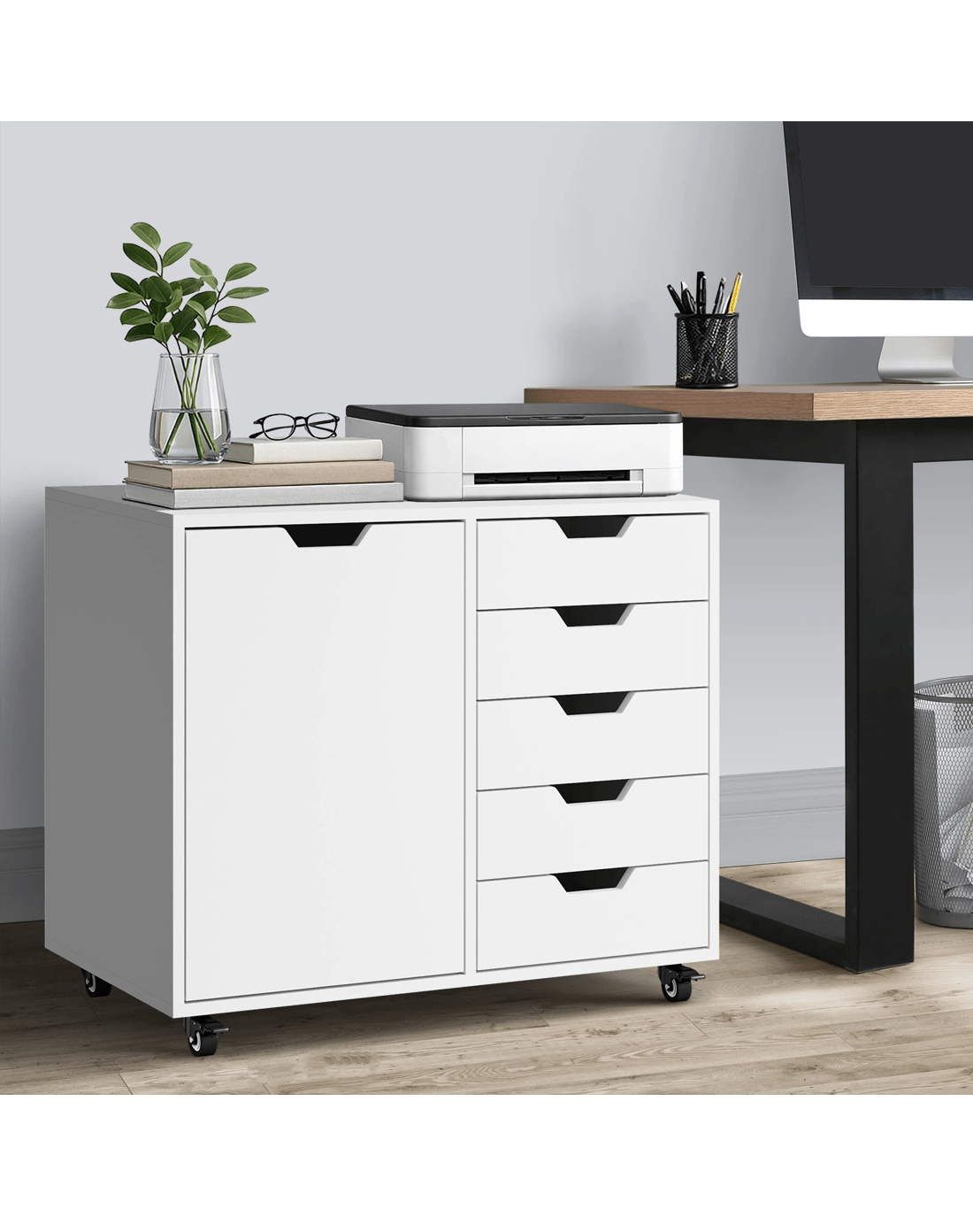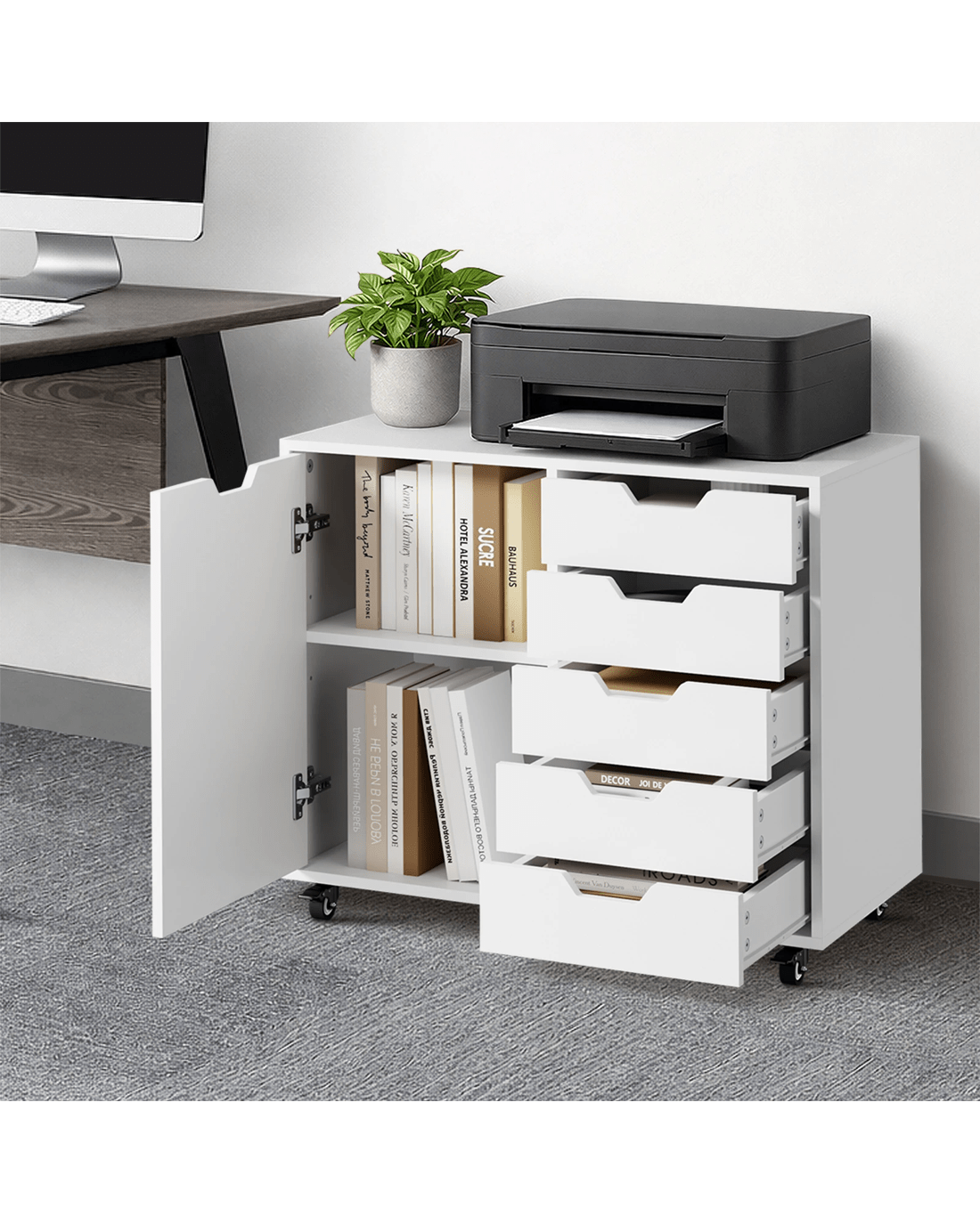 Sold by Kamprad's Oikos 1943Oikiture Filing Cabinet 1 Door 5 Drawer Mobile Office Storage Cabinet - White