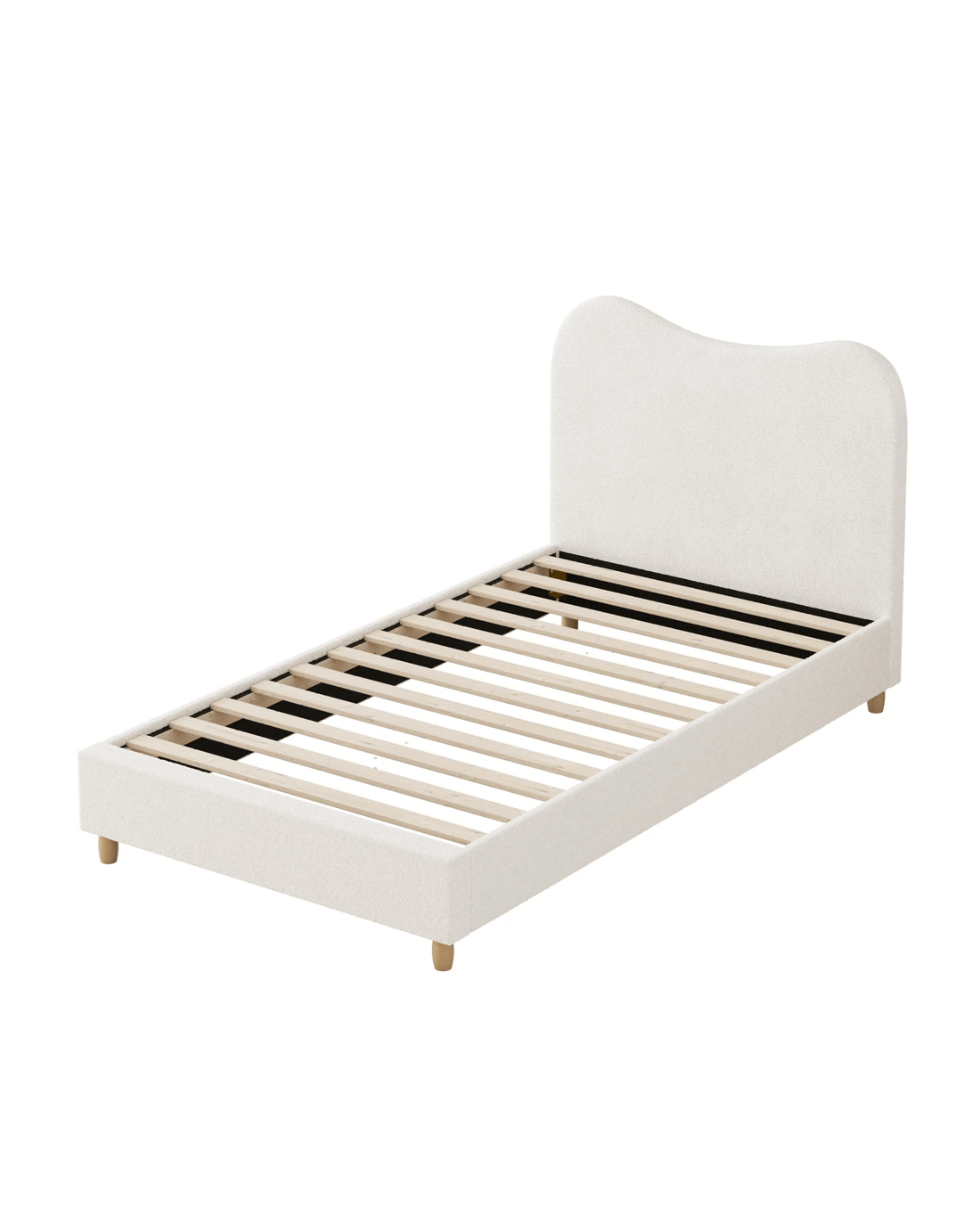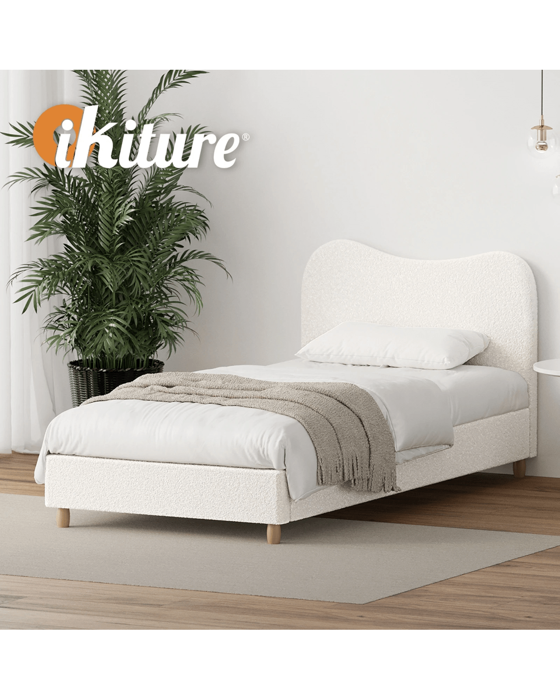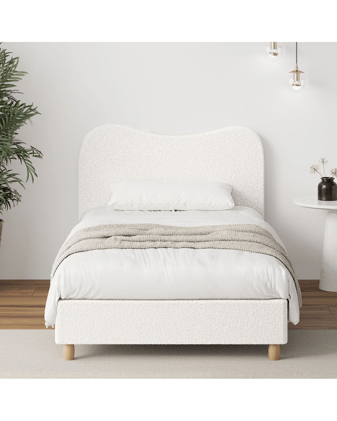 Sold by Kamprad's Oikos 1943Oikiture Bed Frame Single Size Boucle Cloud Shape Headboard - White