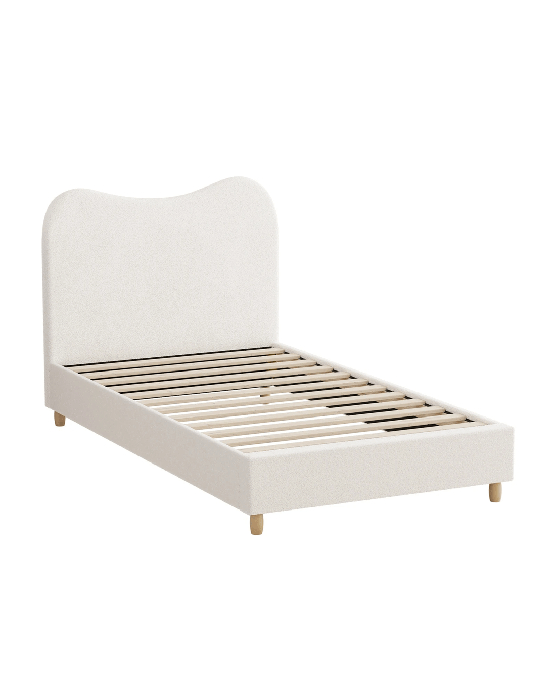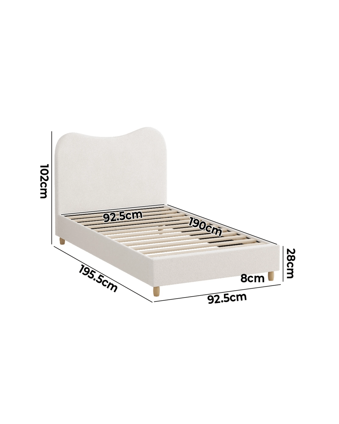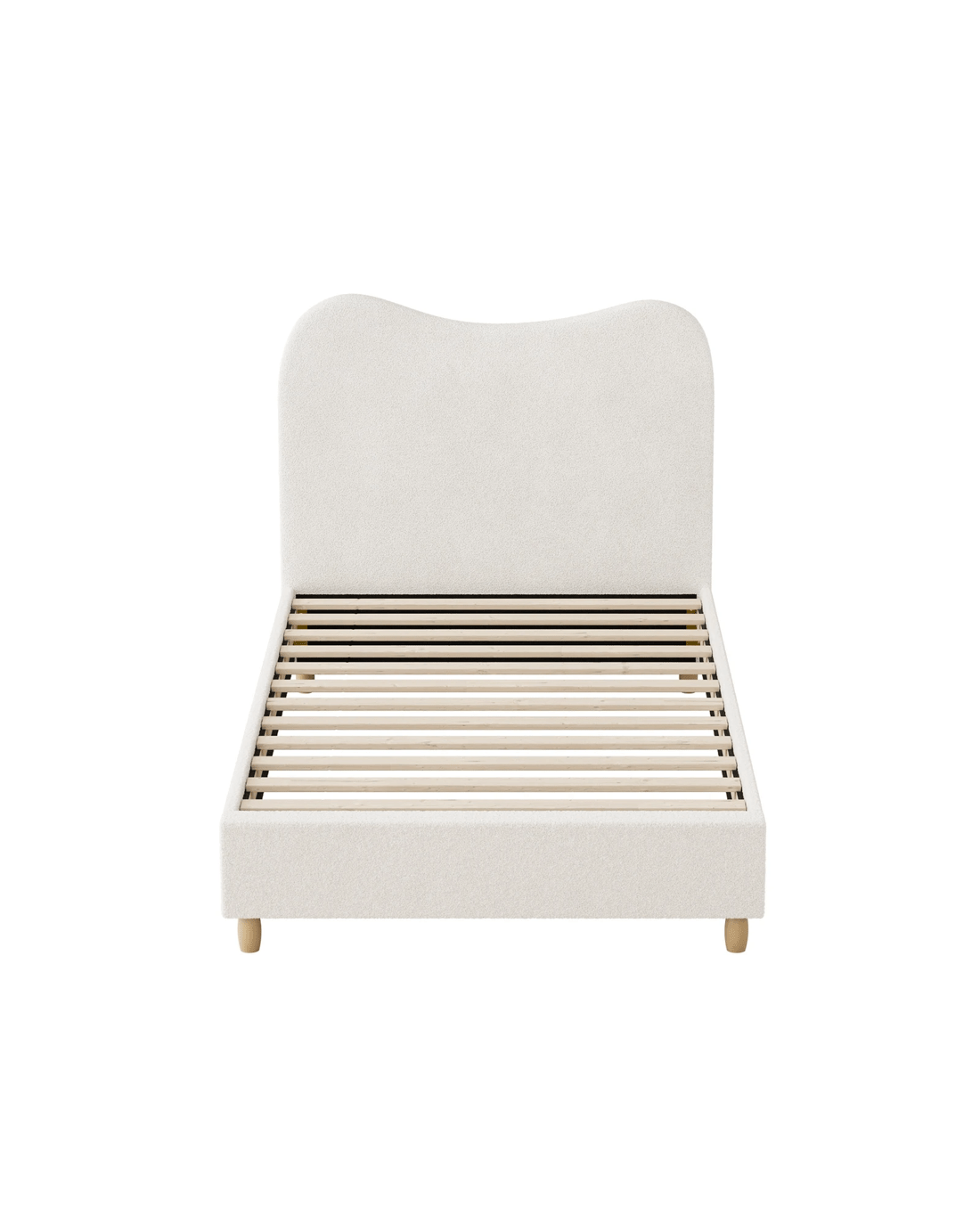 Sold by Kamprad's Oikos 1943Oikiture Bed Frame Single Size Boucle Cloud Shape Headboard - White