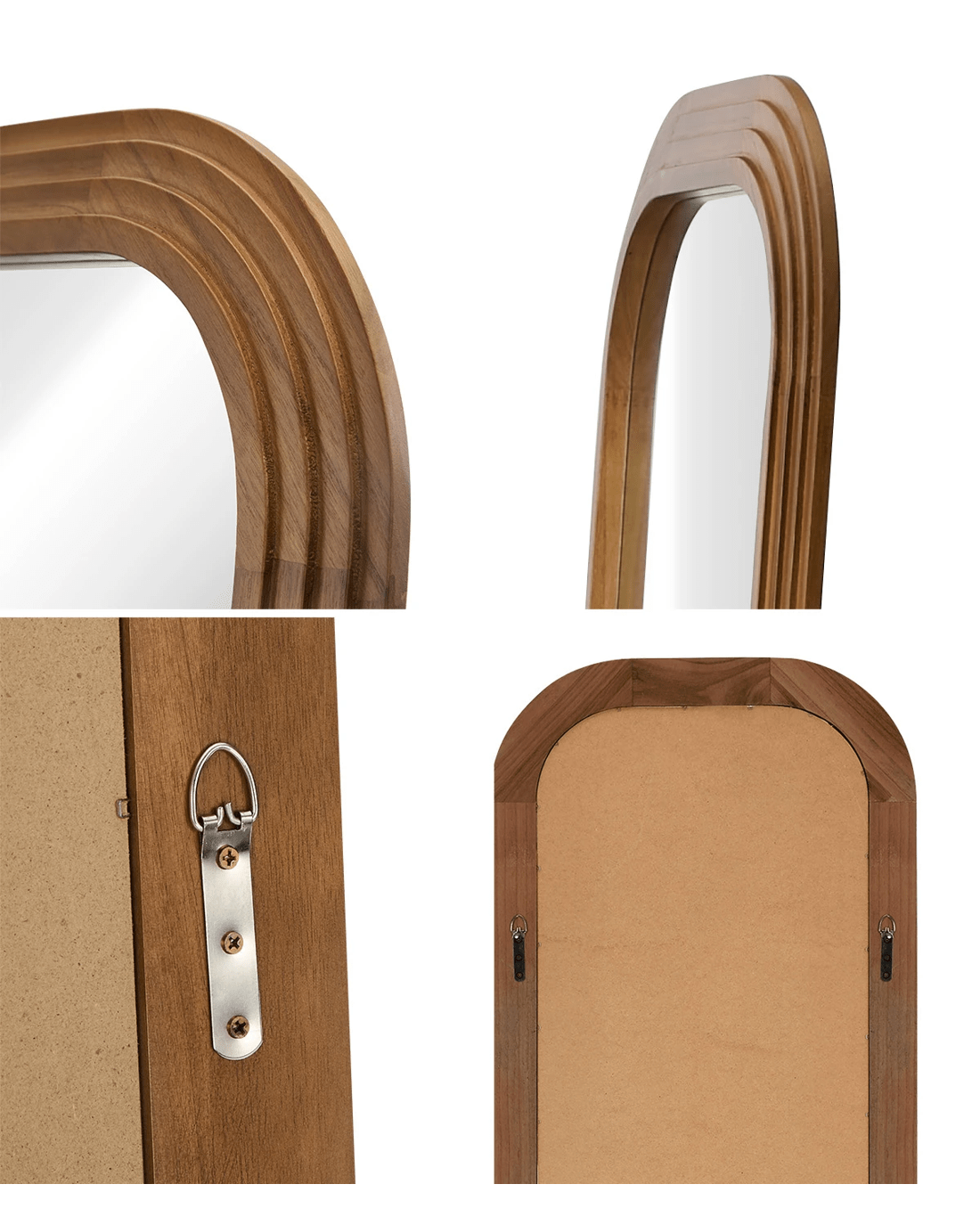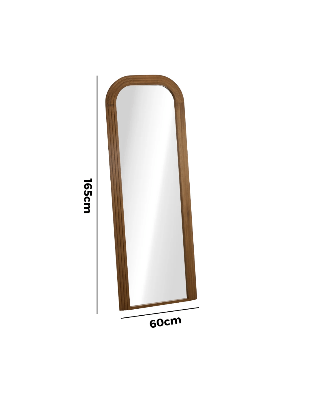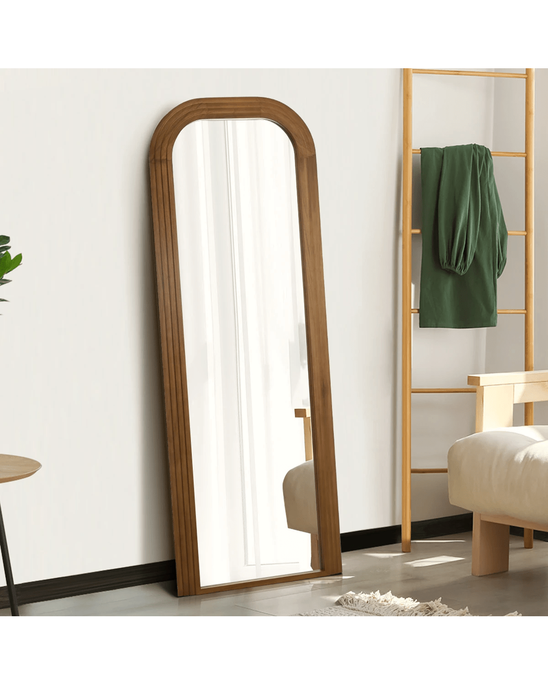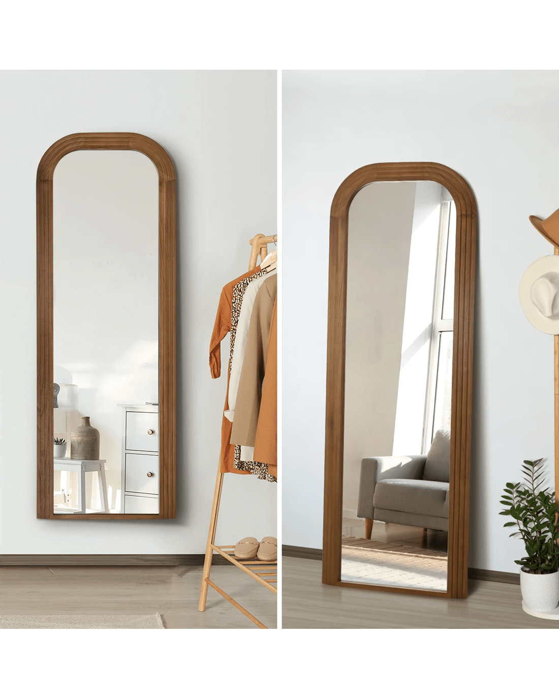 Oikiture Full Length Arch Mirror 165x60cm Wood Top Rounded Corner Bedroom - Brown
