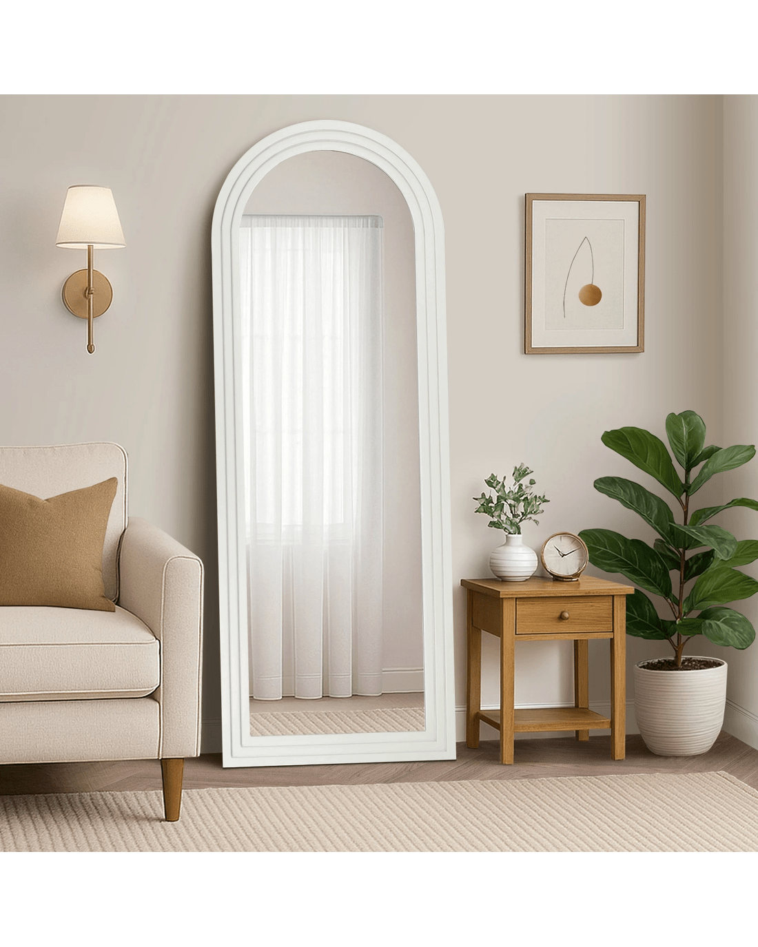 Sold by Kamprad's Oikos 1943Oikiture Full Length Arch Mirror 165x60cm Wood Wall Mounted Home Decor - White