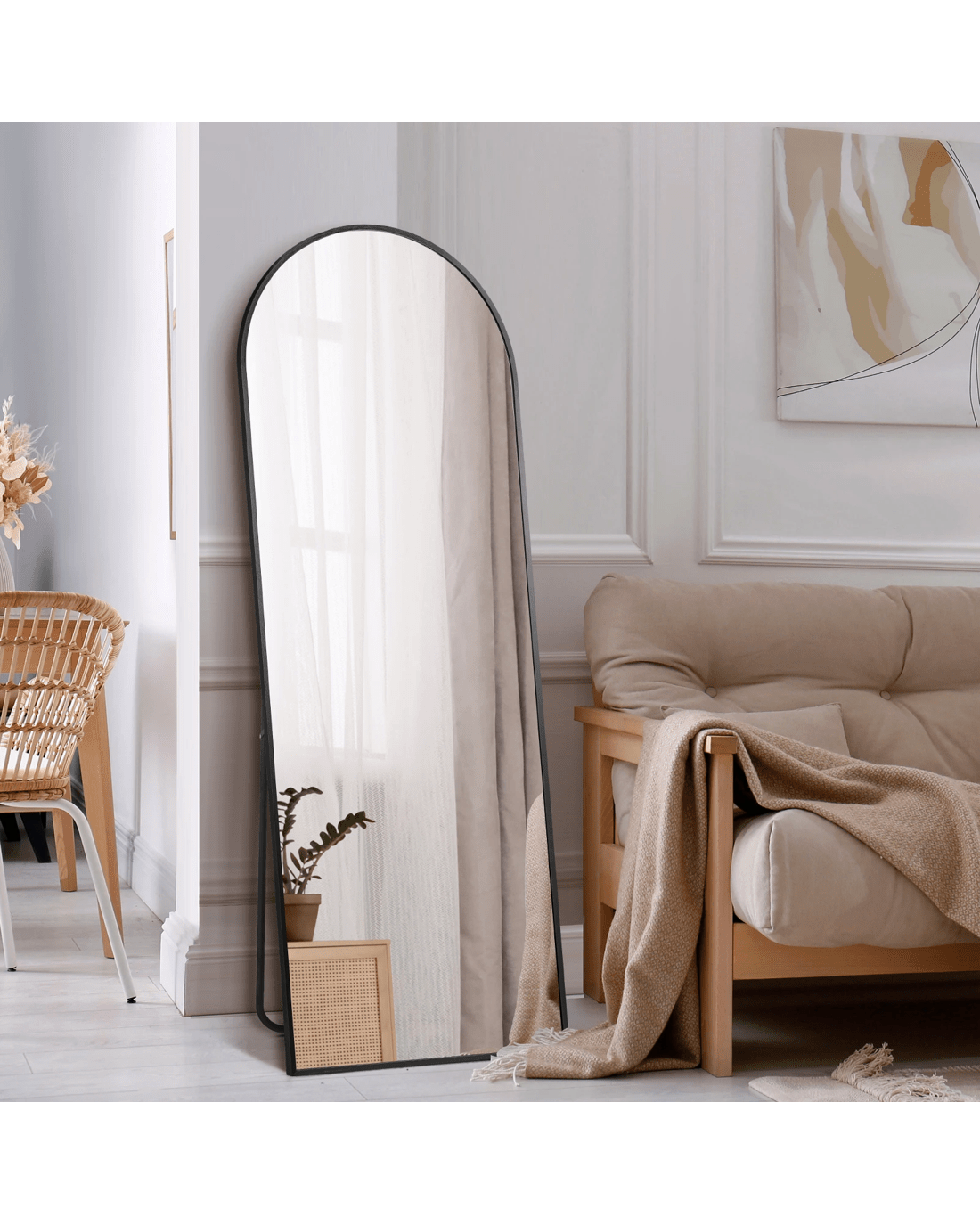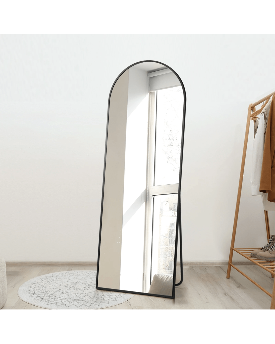 Sold by Kamprad's Oikos 1943Oikiture Full Length Mirror 166x60cm Arched Dressing Floor Mirrors Free Standing - Black