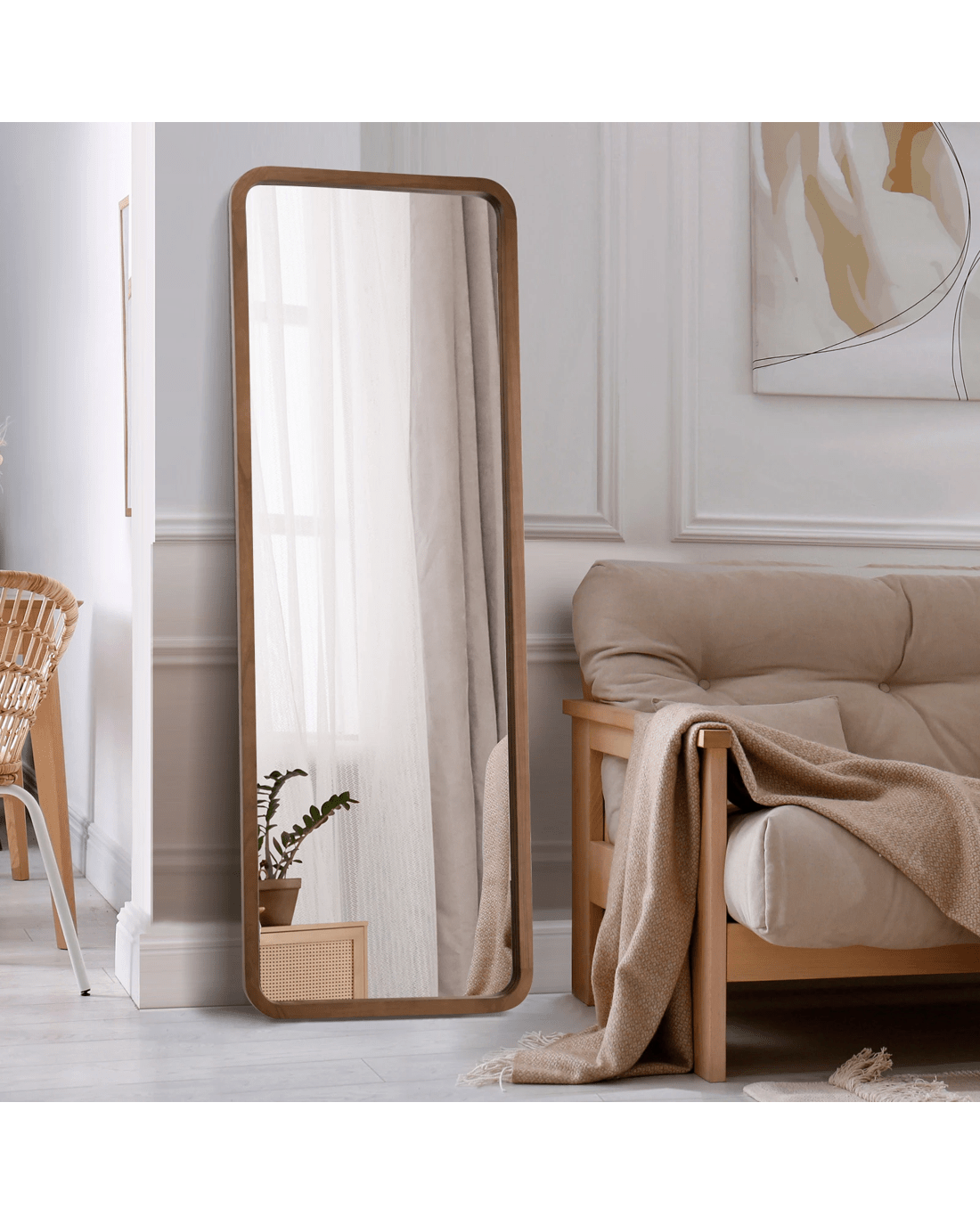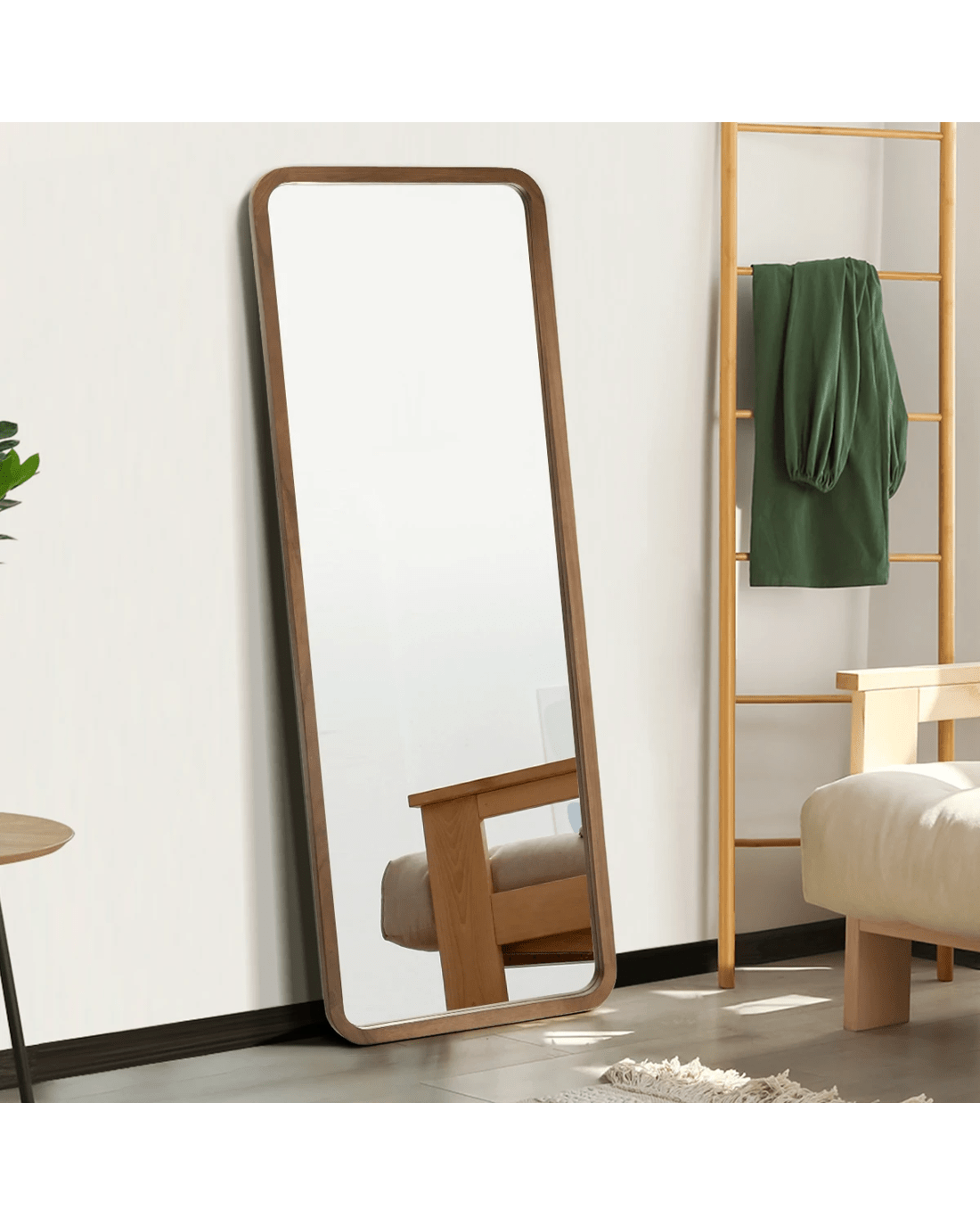 Wood-frame full length mirror