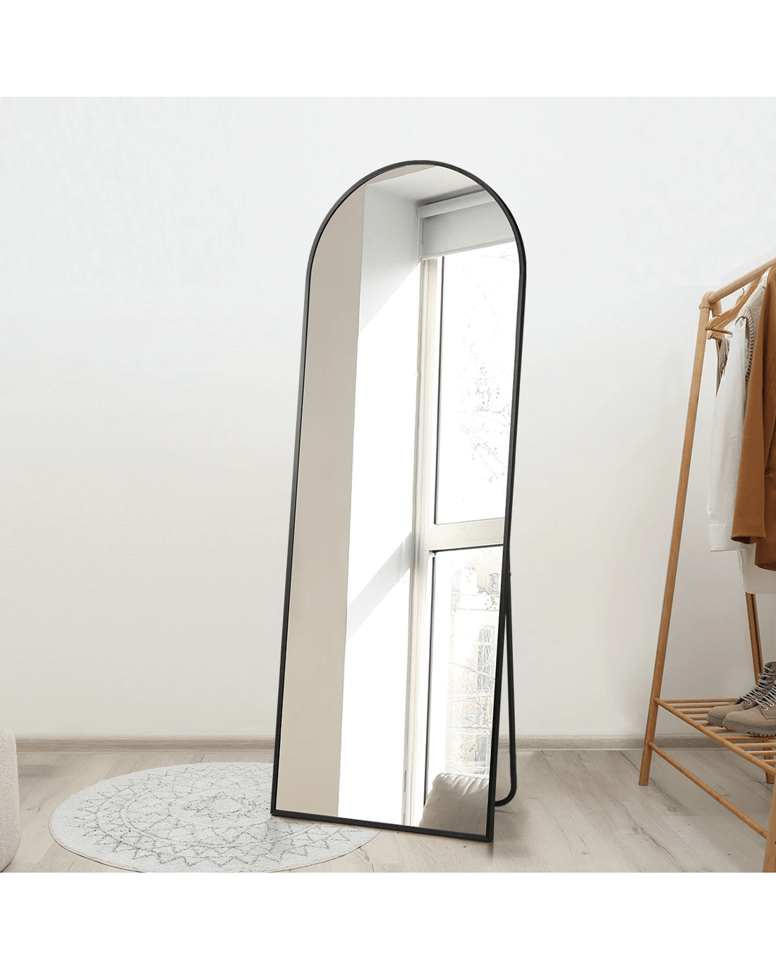 Set it on the floor with the built-in support, or lean it on the wall, our versatile full-length mirror will certainly captivate you with its exceptional presence. The Oikiture Full-Length Mirror is never short on inspiring stunning beauty in its fullest measure.