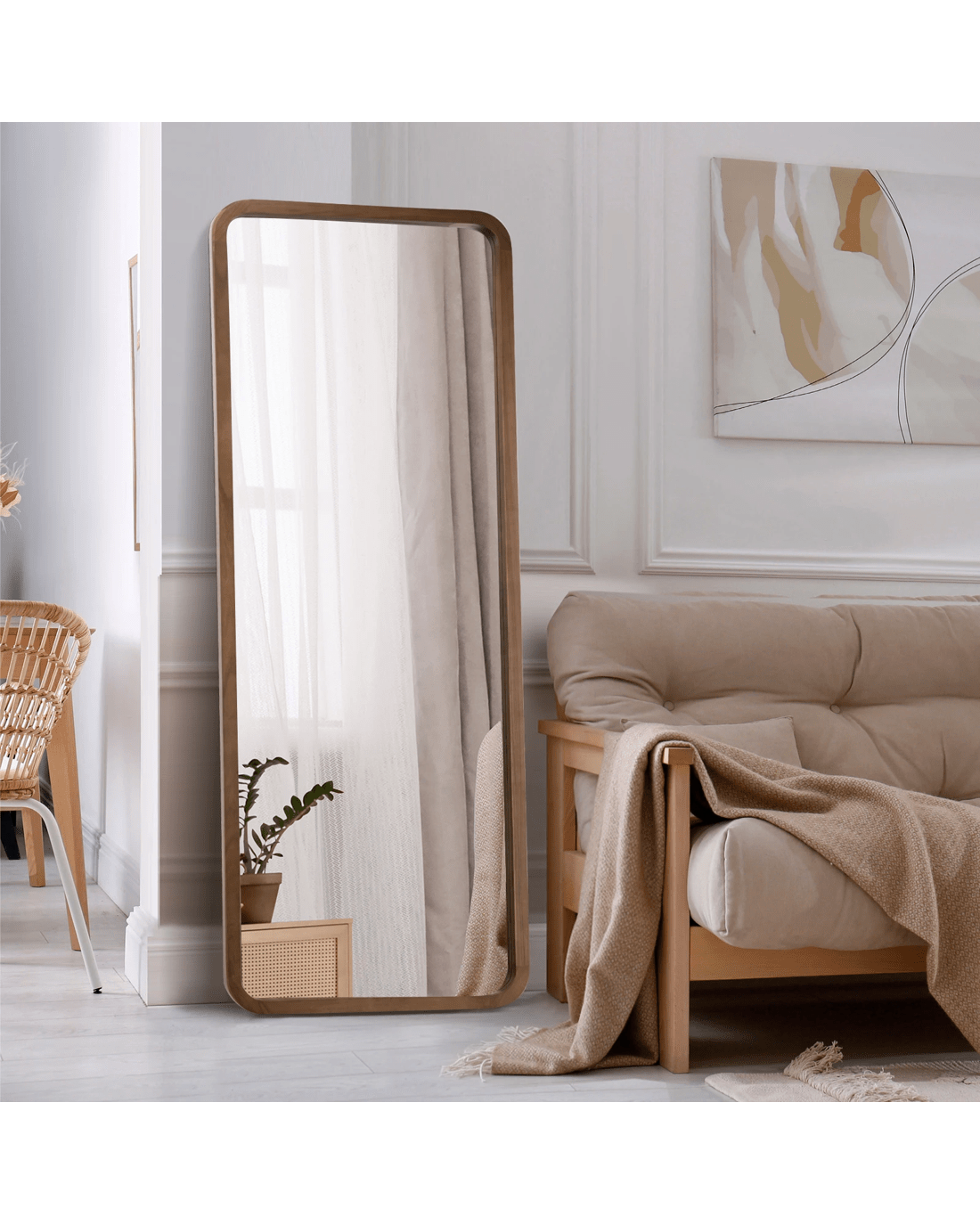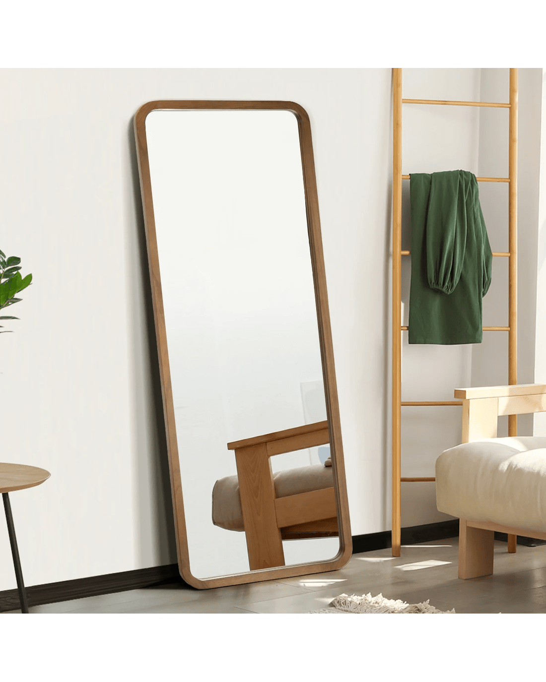 Wood-frame full length mirror