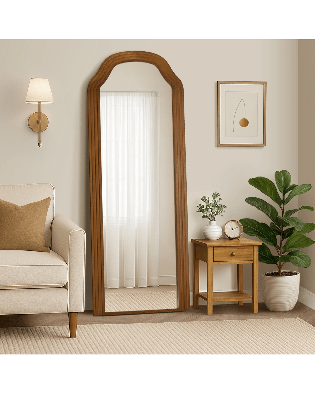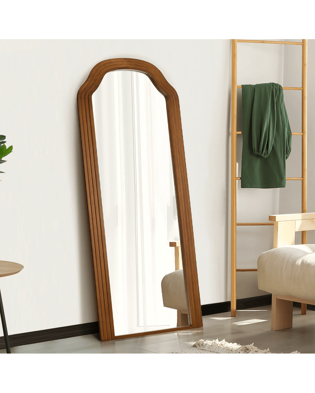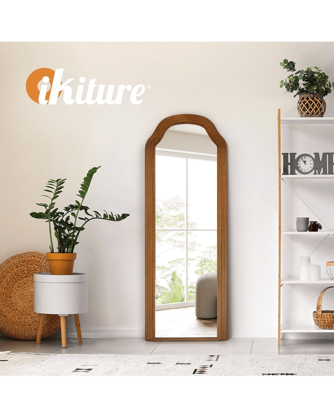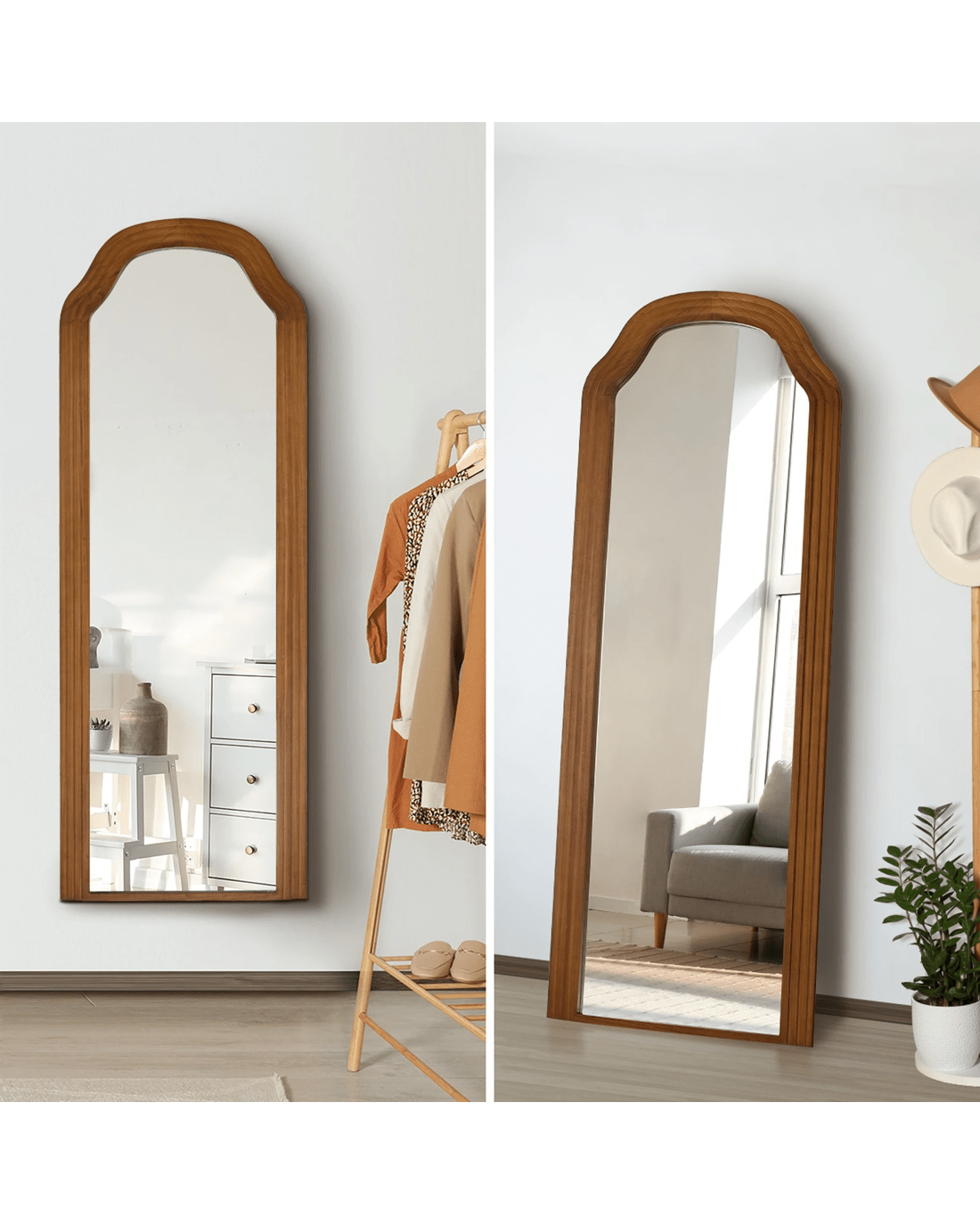 Oikiture Full Length Mirror Floor Makeup Mirrors 165x60cm Wood Bedroom - Brown