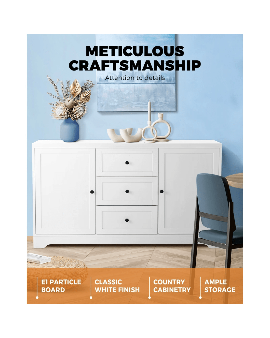 There is something about country-style furniture that appeals to the eyes. And our Oikiture Sideboard is simply gorgeous and captivating in every way. The clean and simple facade makes this Hamptons style sideboard an absolute classic.