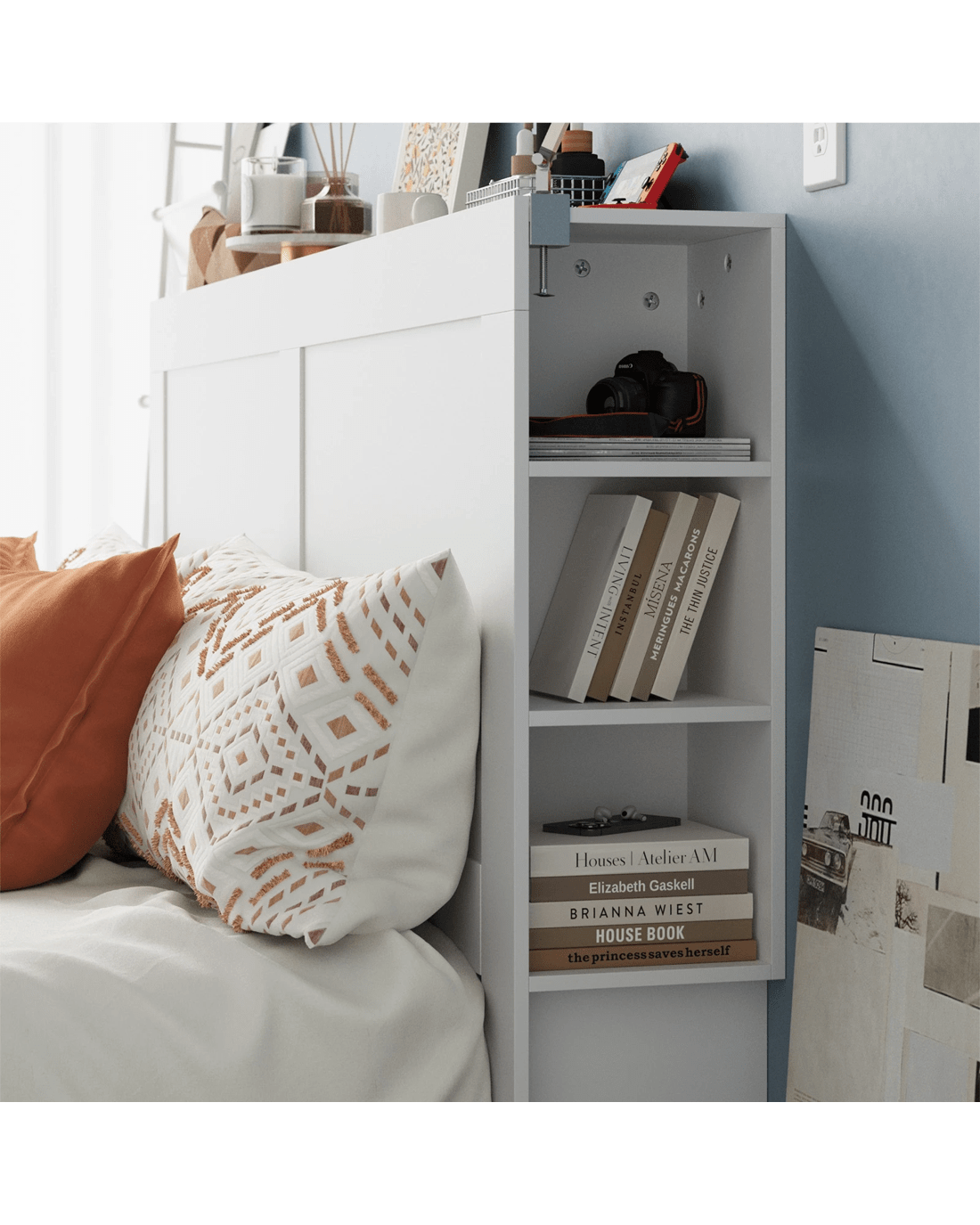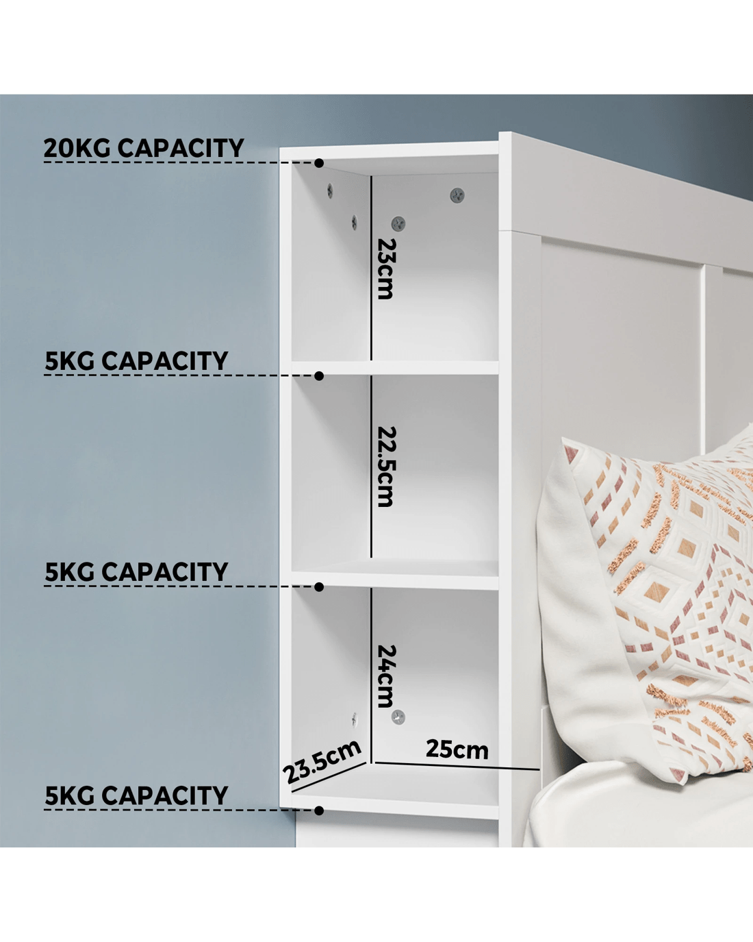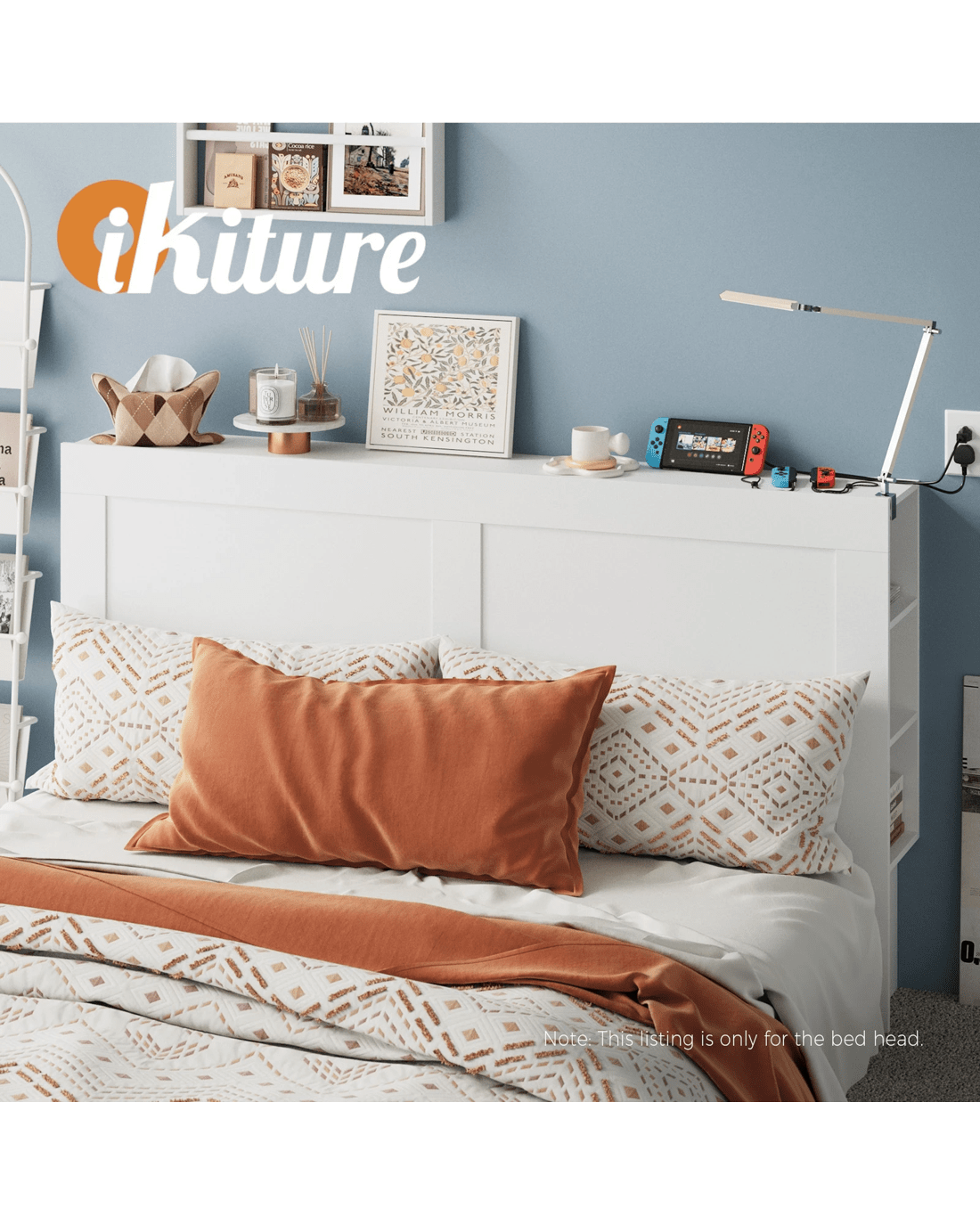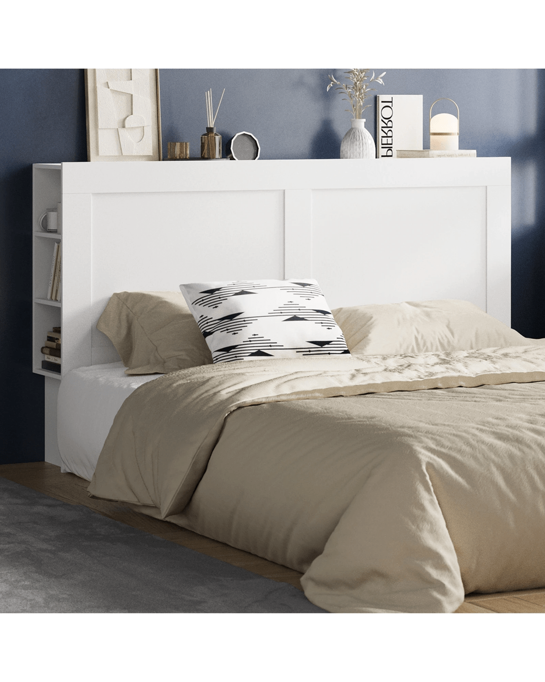 Oikiture Headboard Bed Head King Size Bedhead With Storage Shelves - White