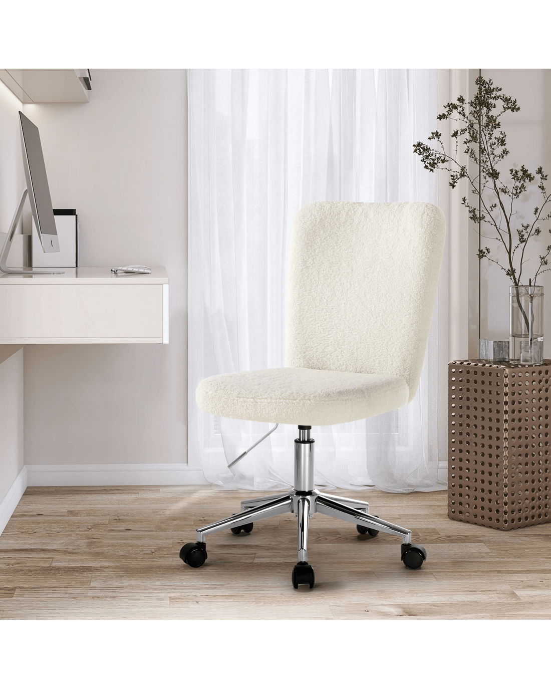 Oikiture High Back Armless Home Office Chair Boucle - Multi