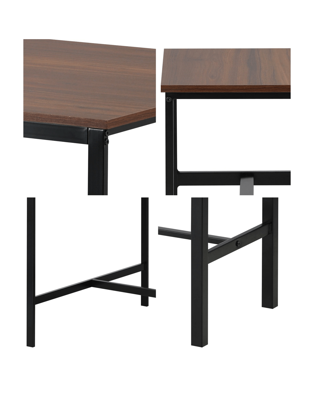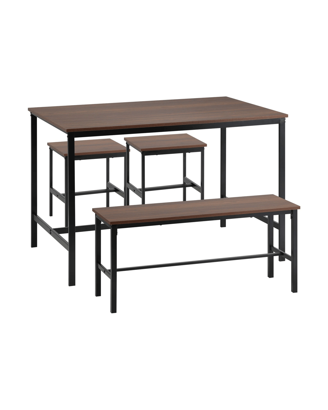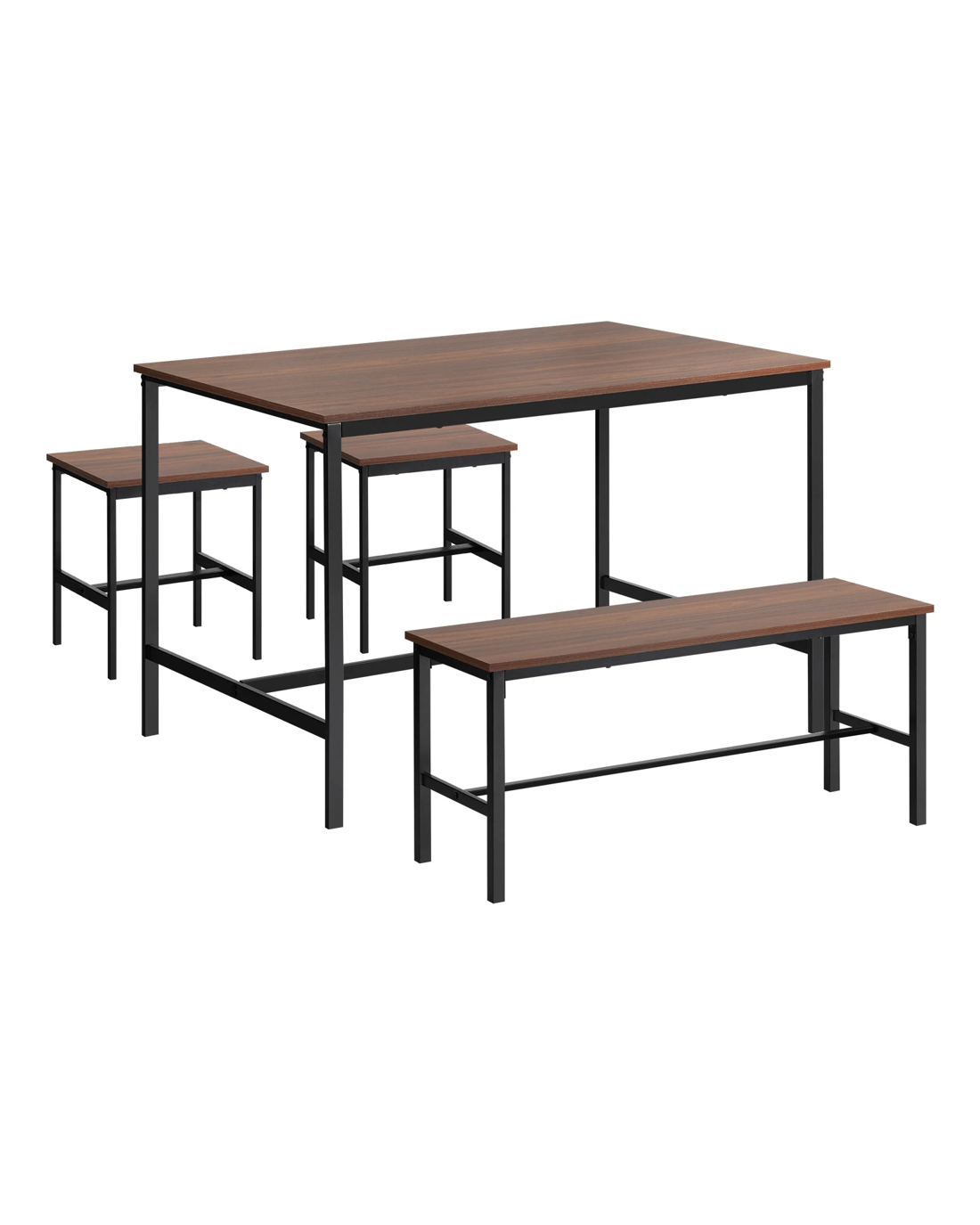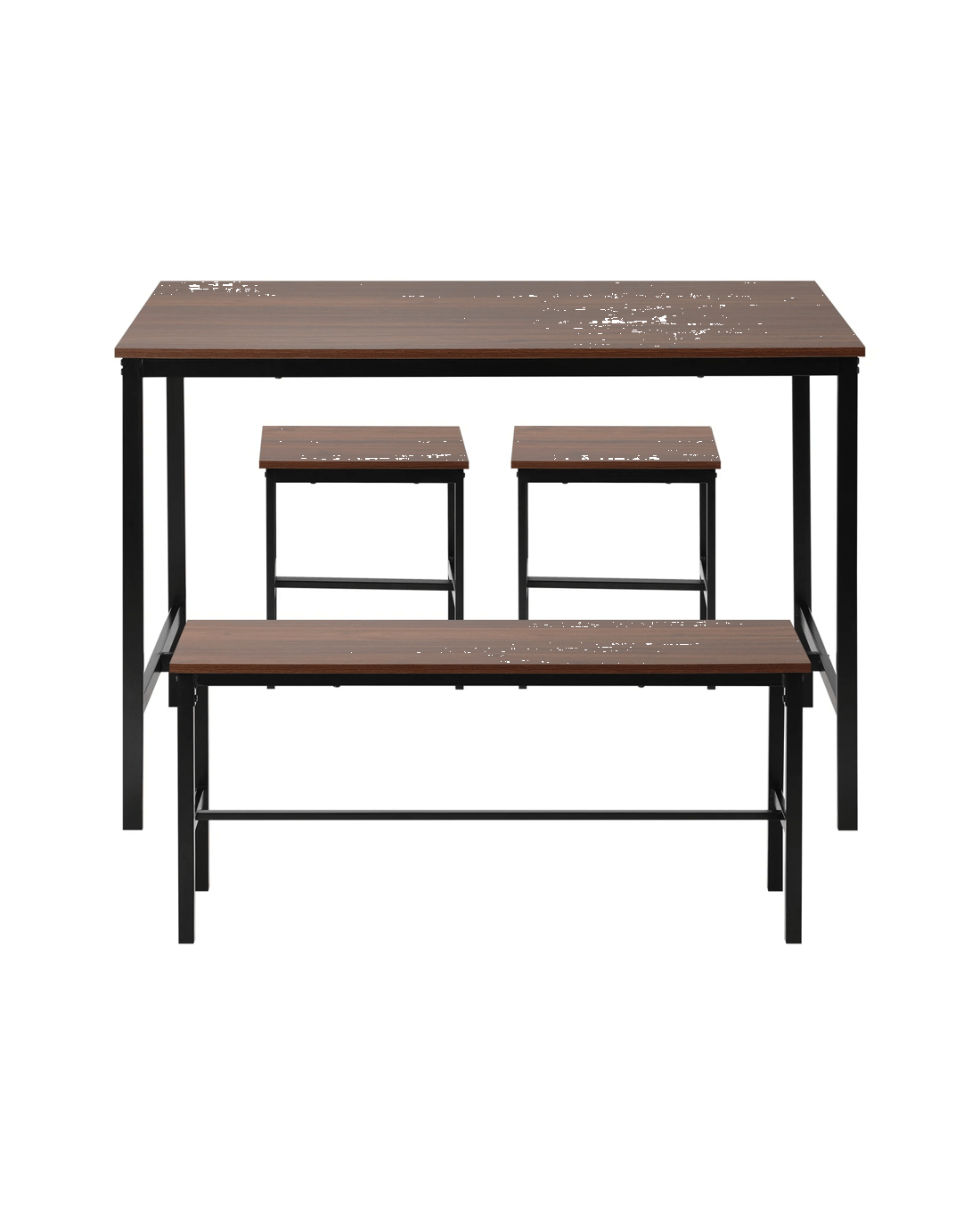 The spacious dining table is crafted with a woodgrain texture tabletop that simply looks and feels amazing. And when matched with the black powder-coated frame and legs, the design stands out with stylish imagery. Likewise, the similarly crafted single and two-seater benches make for a perfect combination of practical functionality and space efficiency.