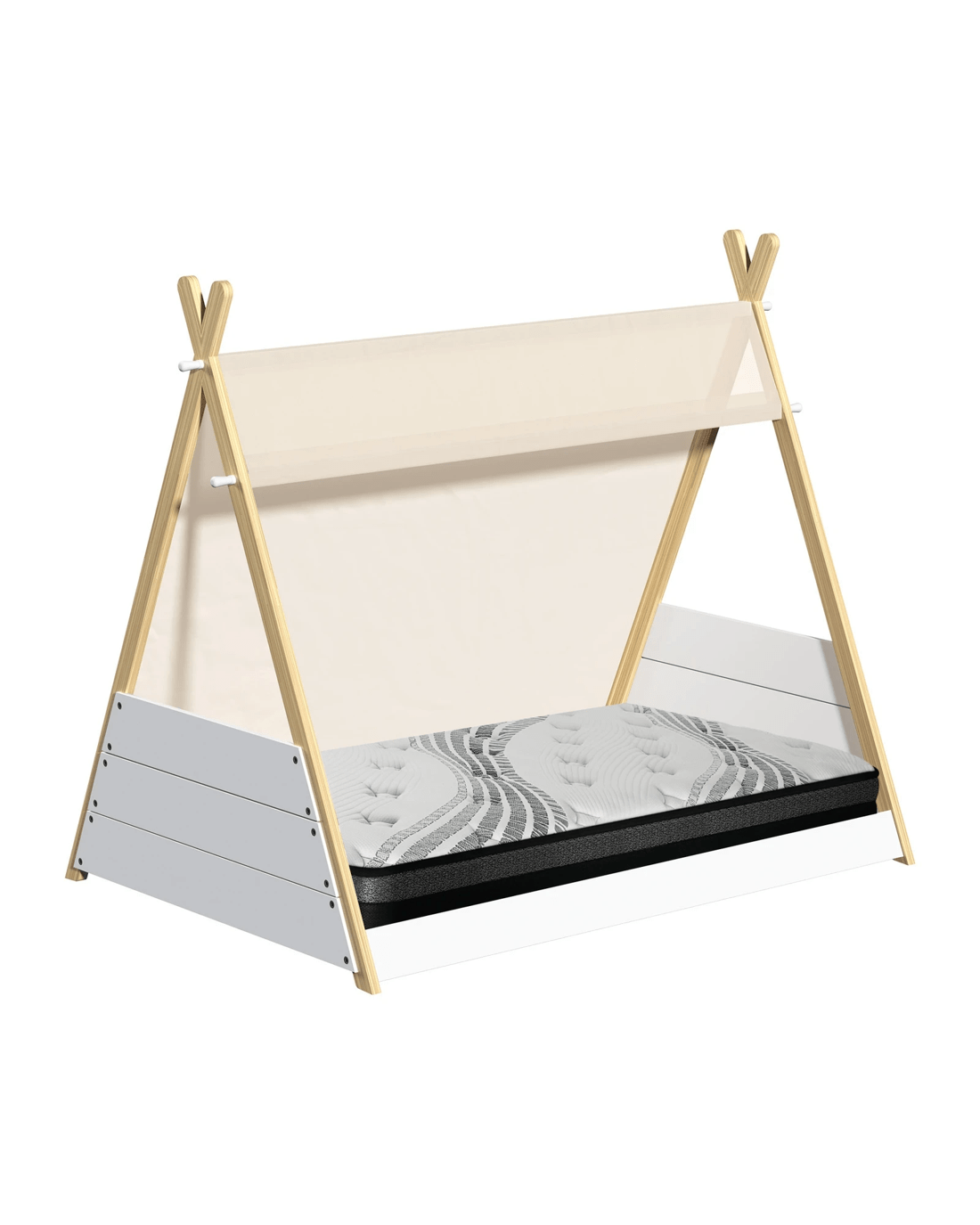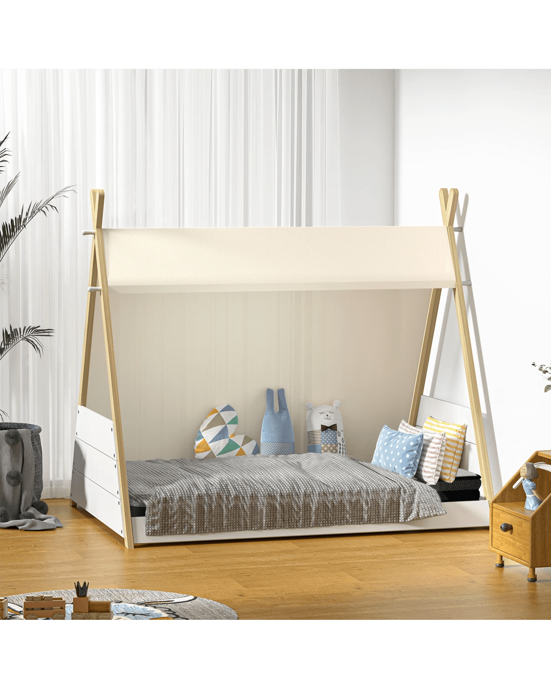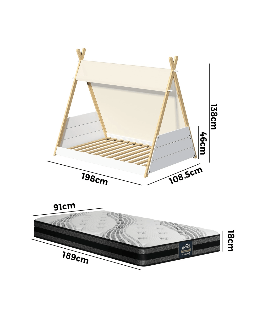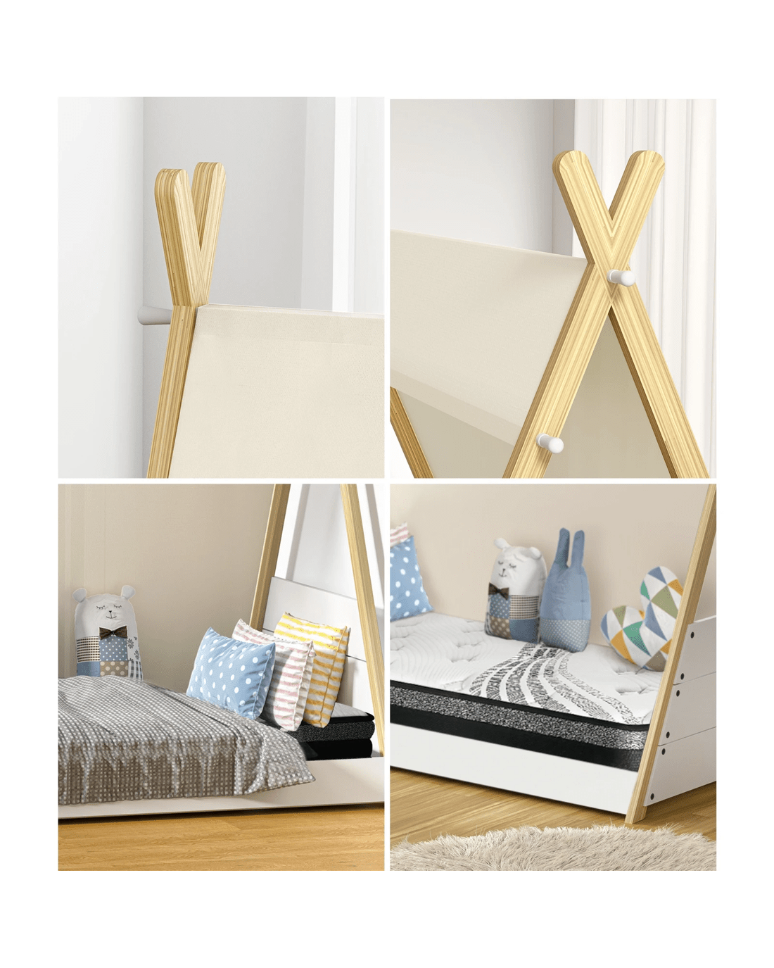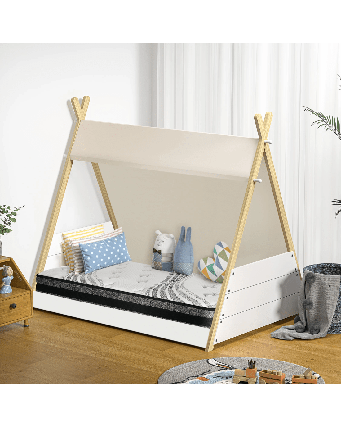 Oikiture Kids Bed Frame And Mattress Timber House Teepee Triangle Beds Single - Multi