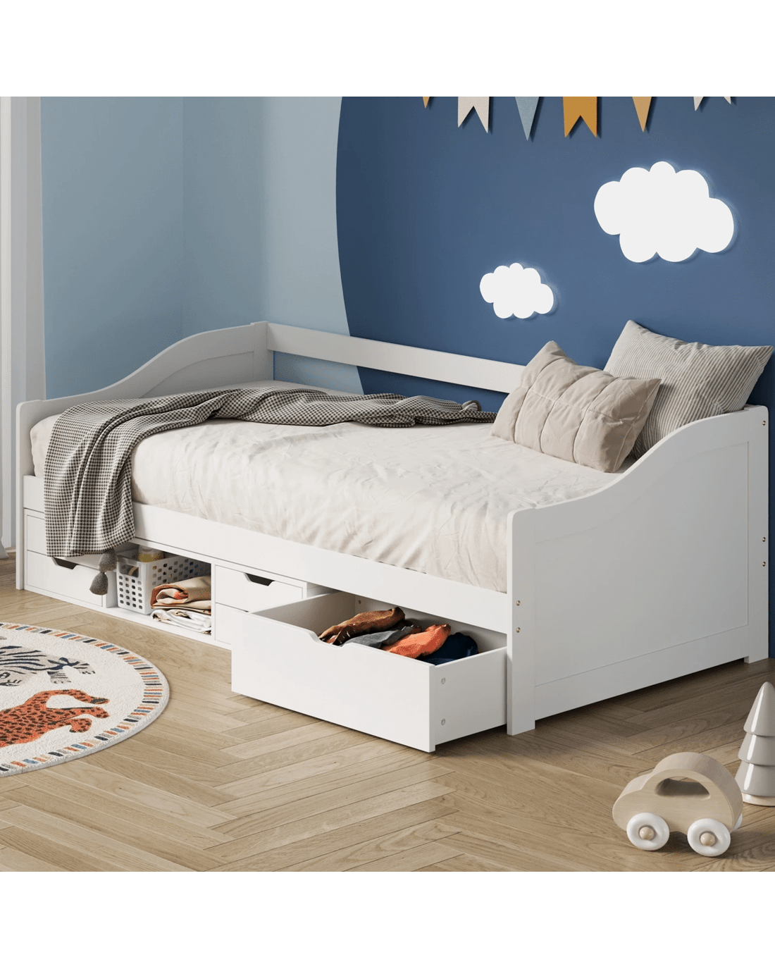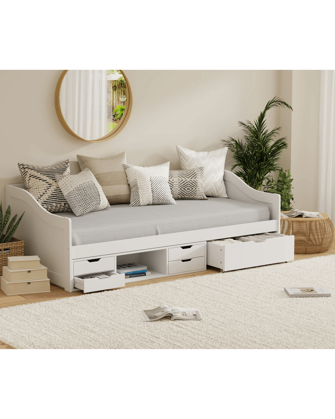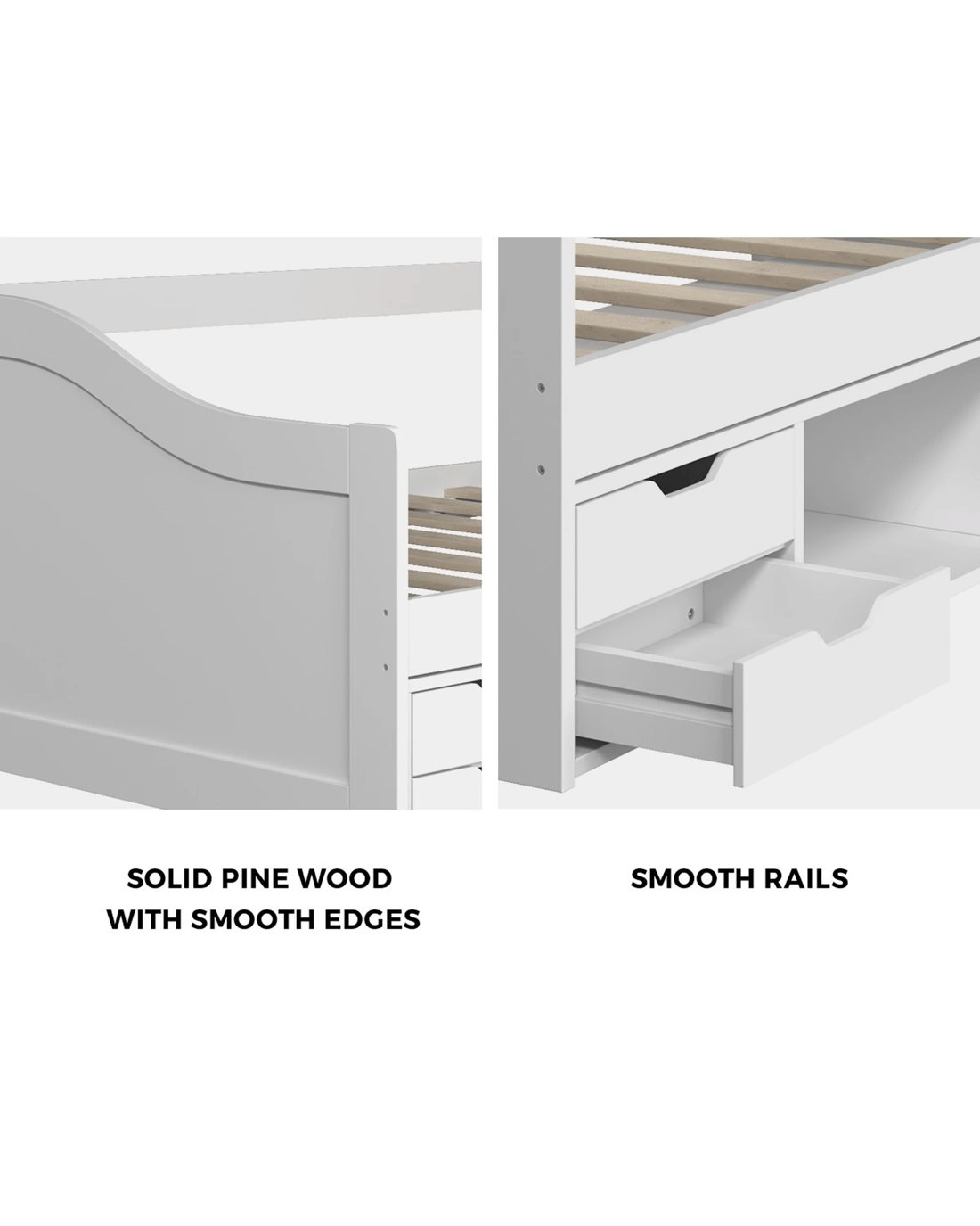 Sold by Kamprad's Oikos 1943Oikiture Kids Bed Frame Single Daybed With Trundle Storage Drawers Timber - White