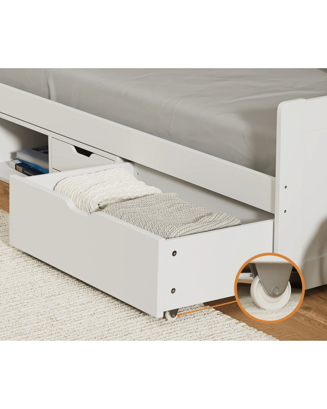 Under-bed drawers and shelf