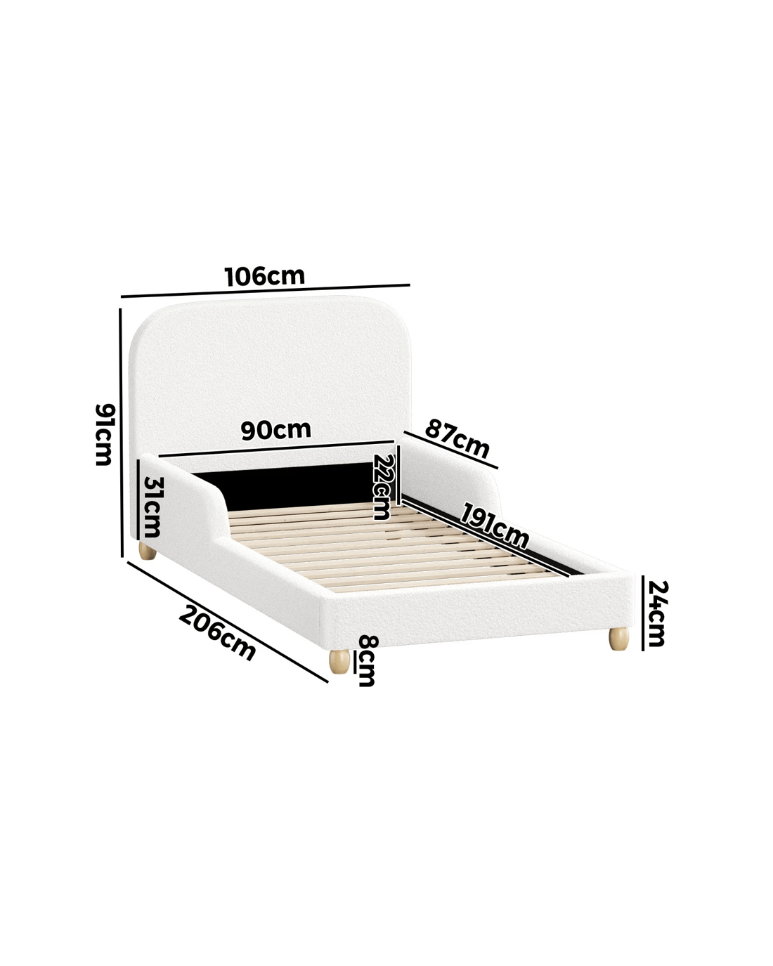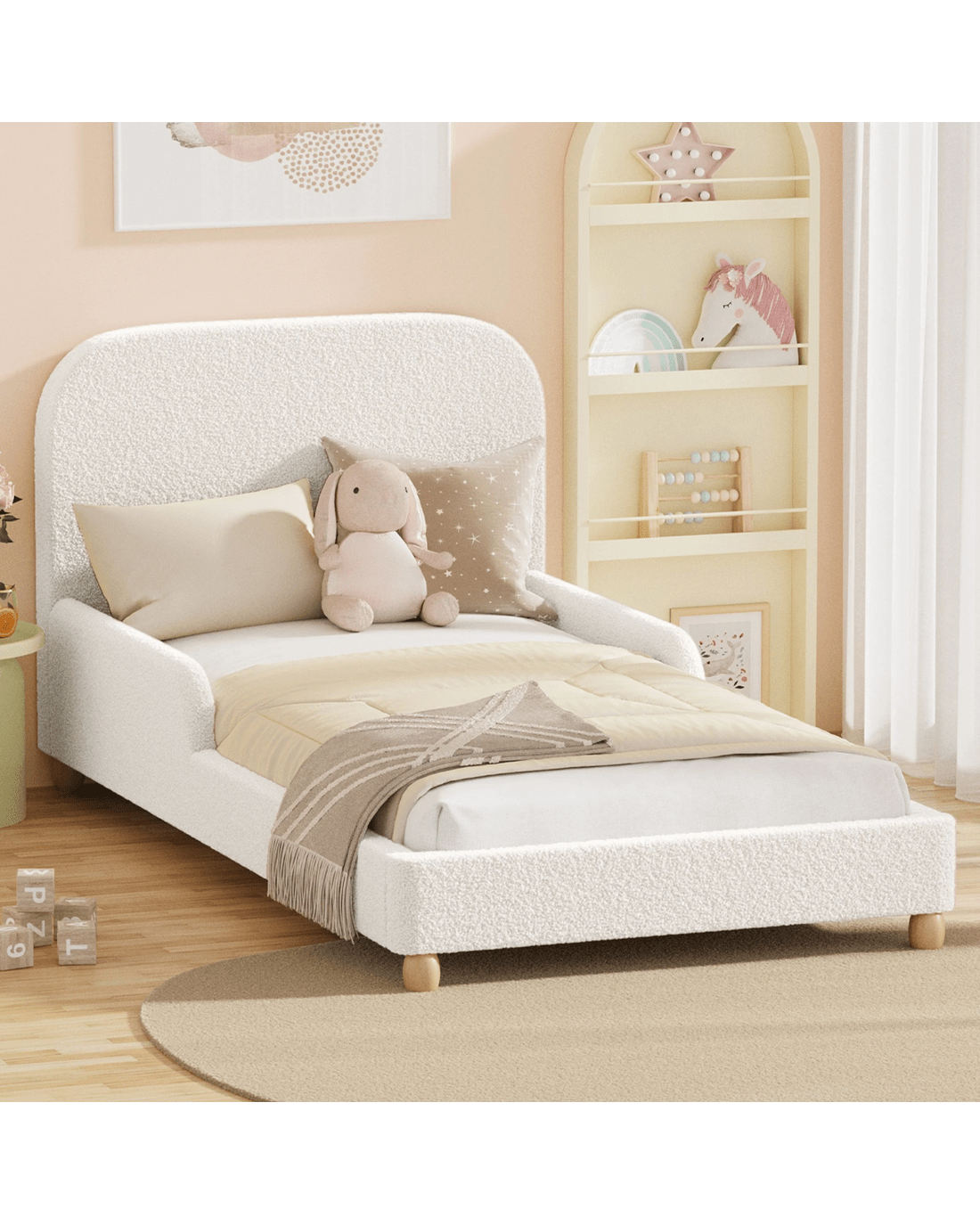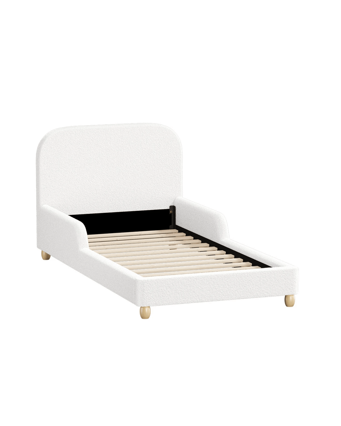 Sold by Kamprad's Oikos 1943Oikiture Kids Bed Frame Single Size with Side Guard Rails Boucle - White