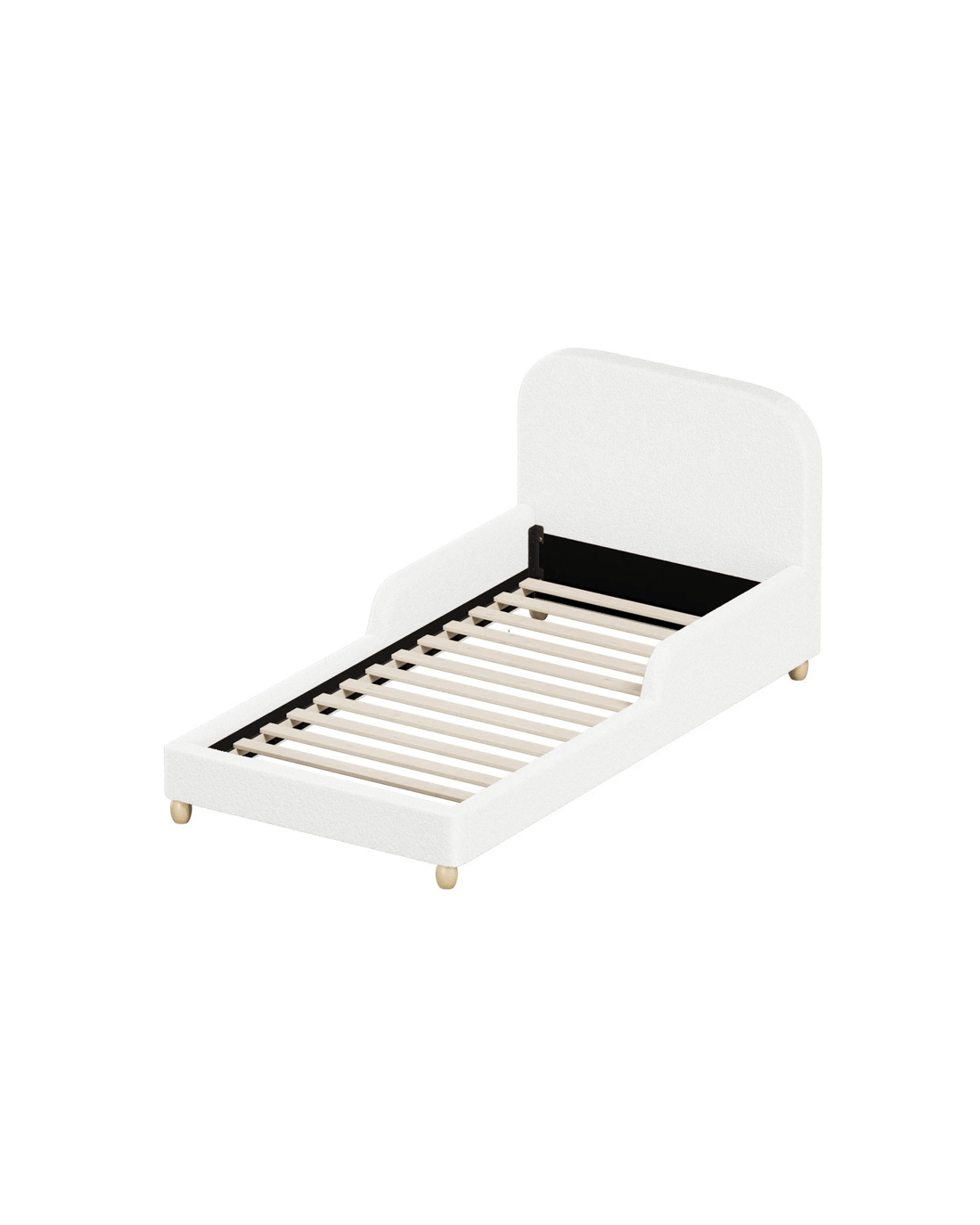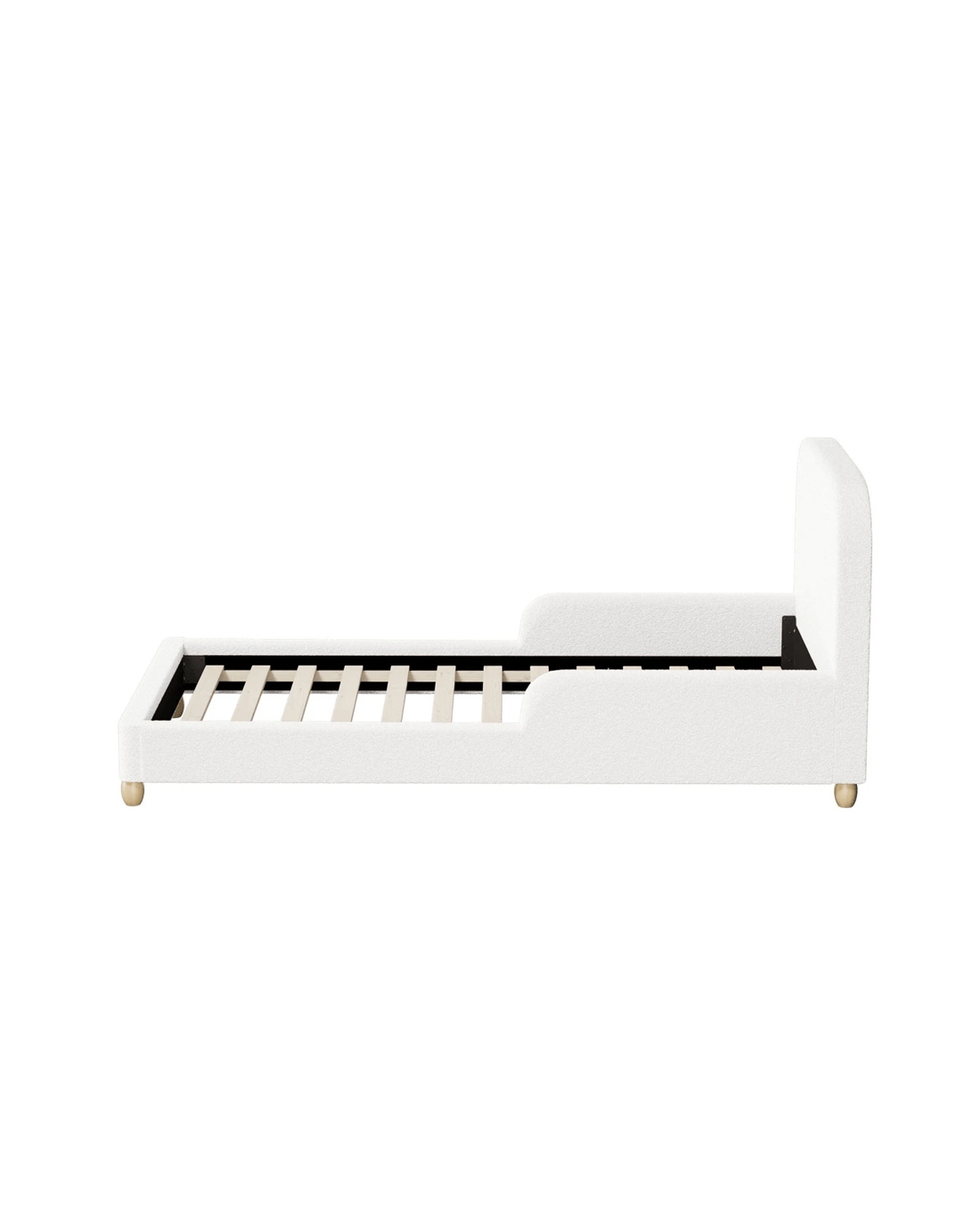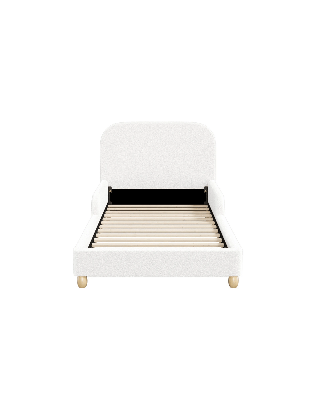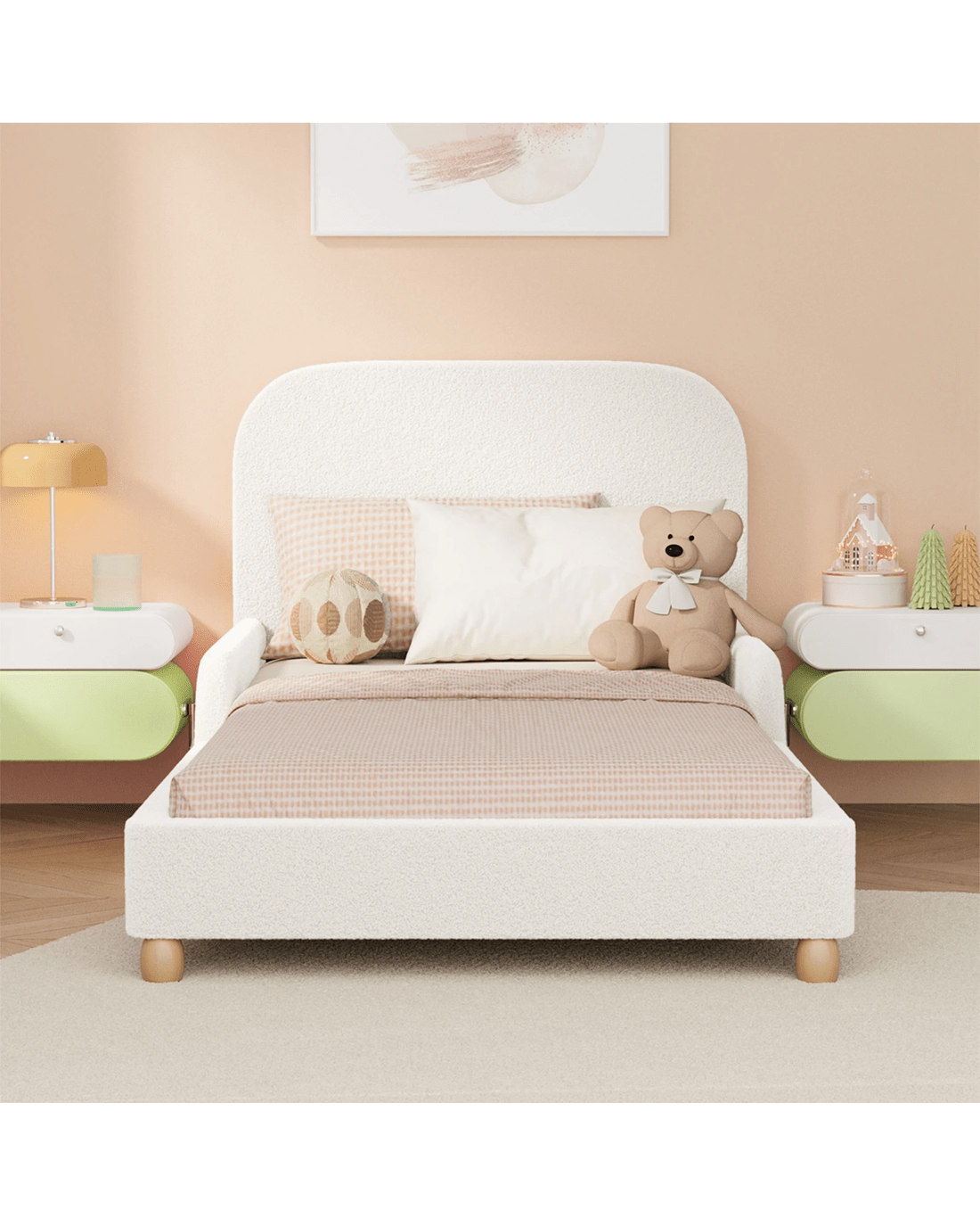 Sold by Kamprad's Oikos 1943Oikiture Kids Bed Frame Single Size with Side Guard Rails Boucle - White