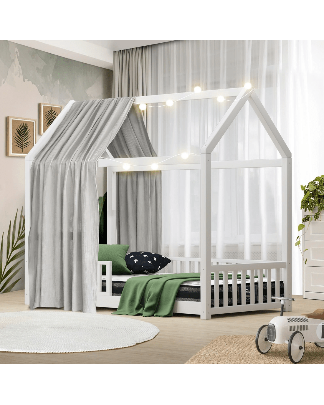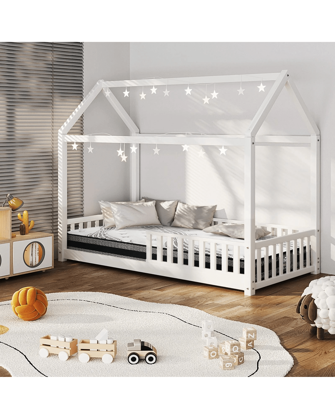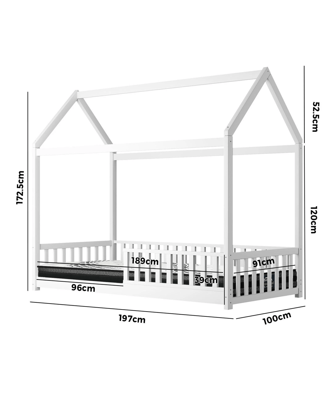 Sold by Kamprad's Oikos 1943Oikiture Kids Bed Frame With Single Mattress Set House Frame - White