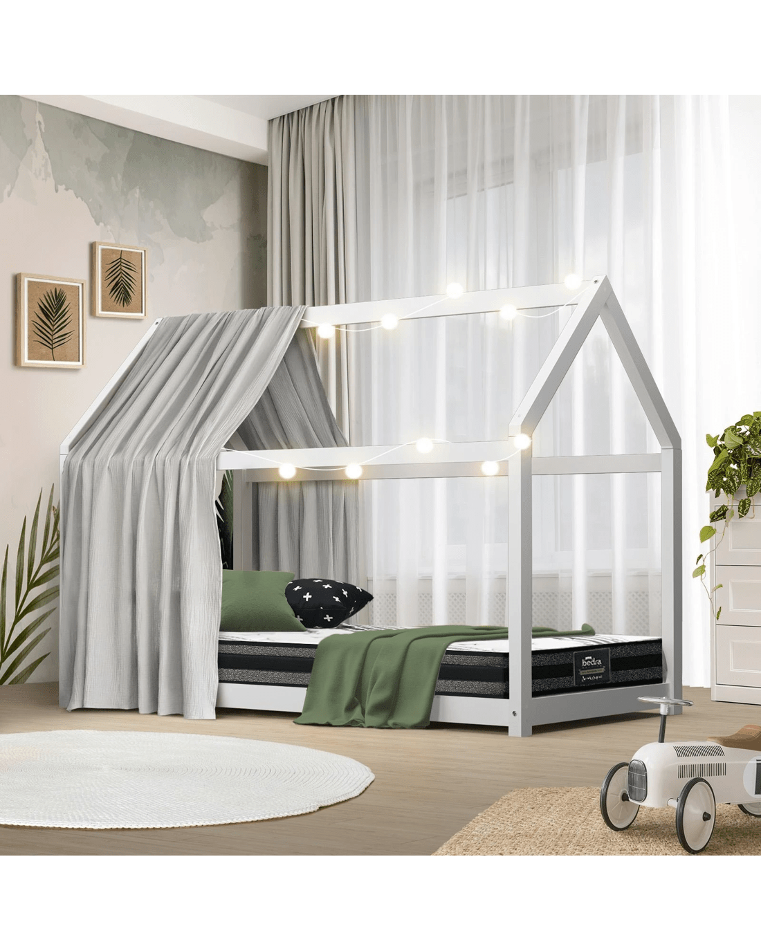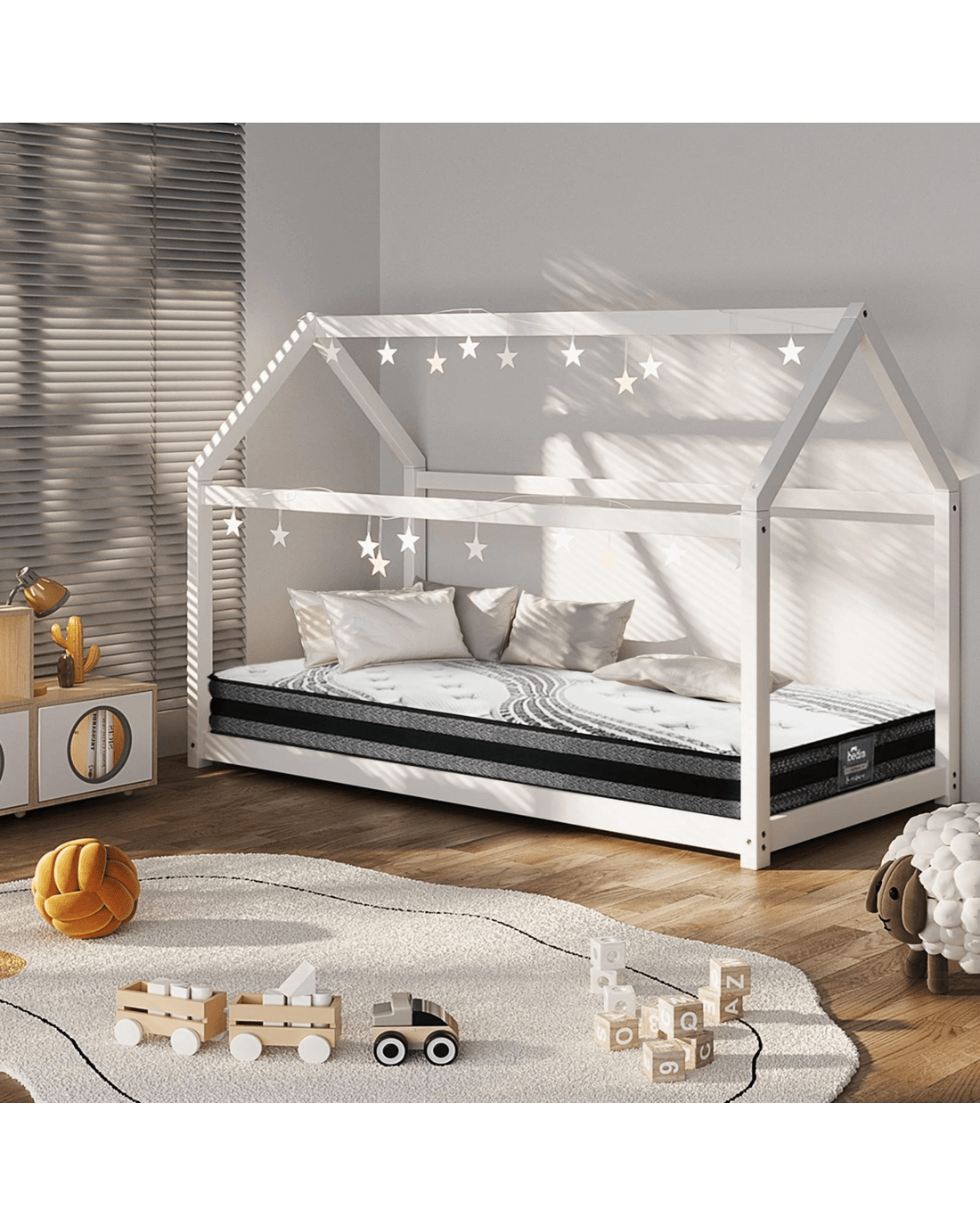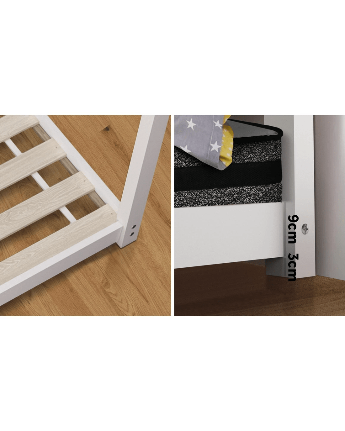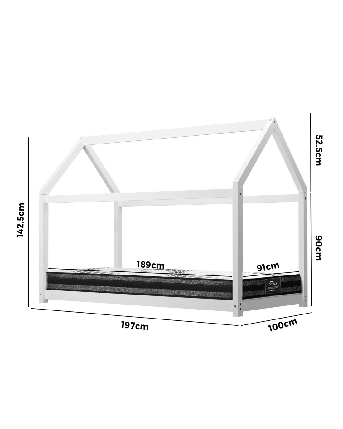 Sold by Kamprad's Oikos 1943Oikiture Kids Bed Frame With Single Mattress Set House Style White - White