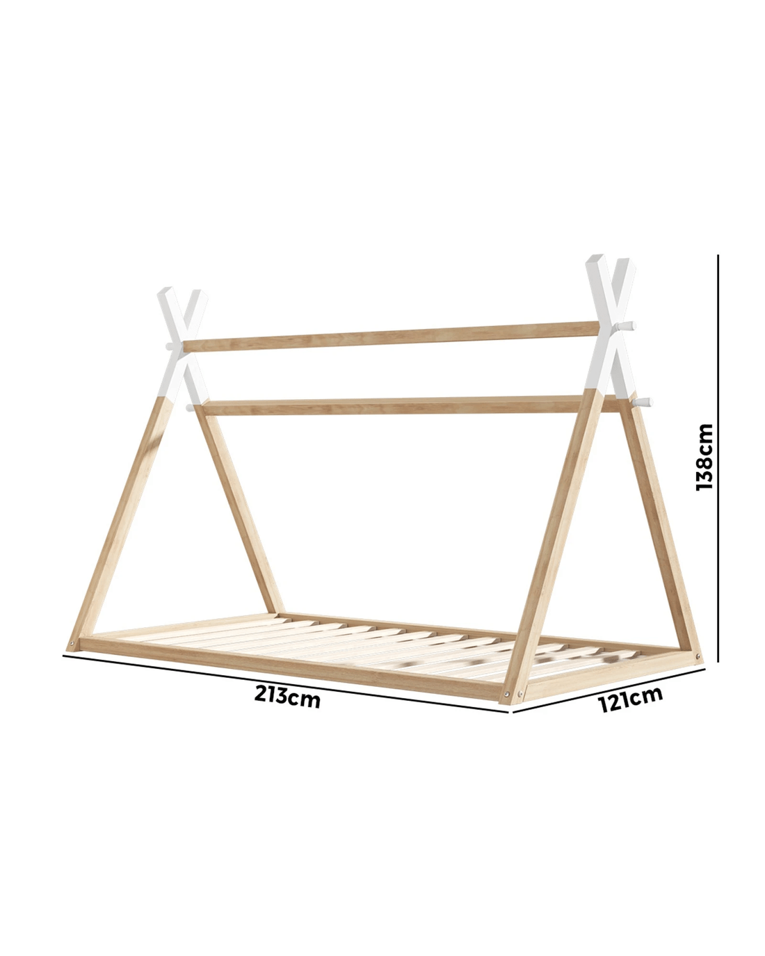 Oikiture Kids Bed Frame Wooden Timber King Single Teepee House Frame Beds - Multi