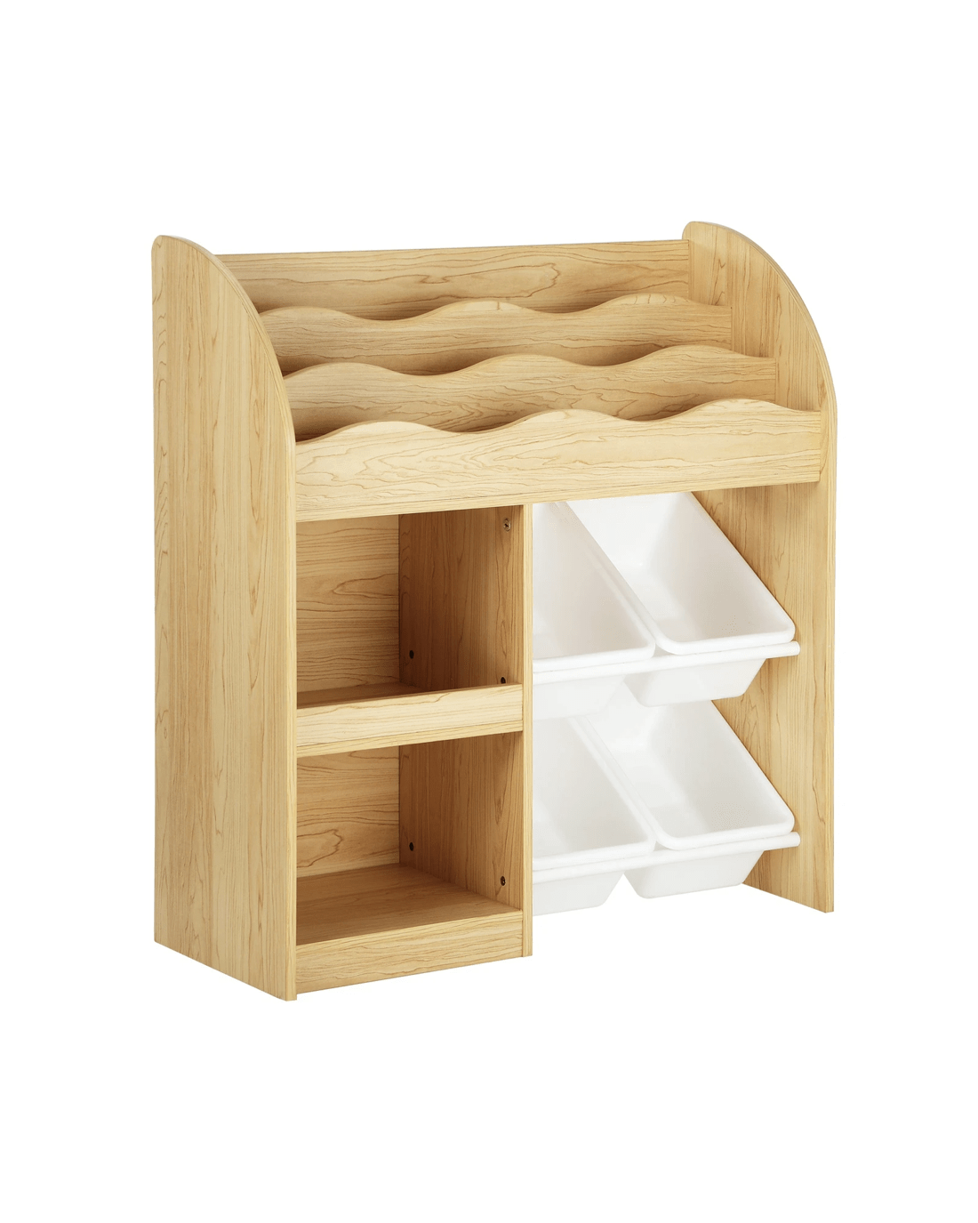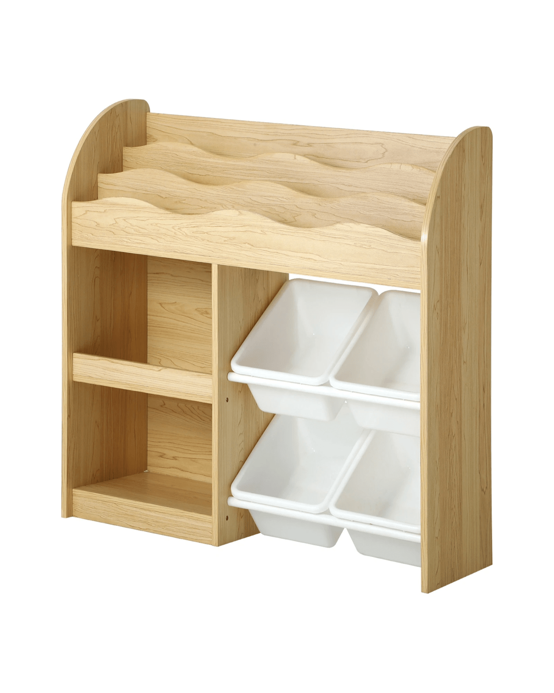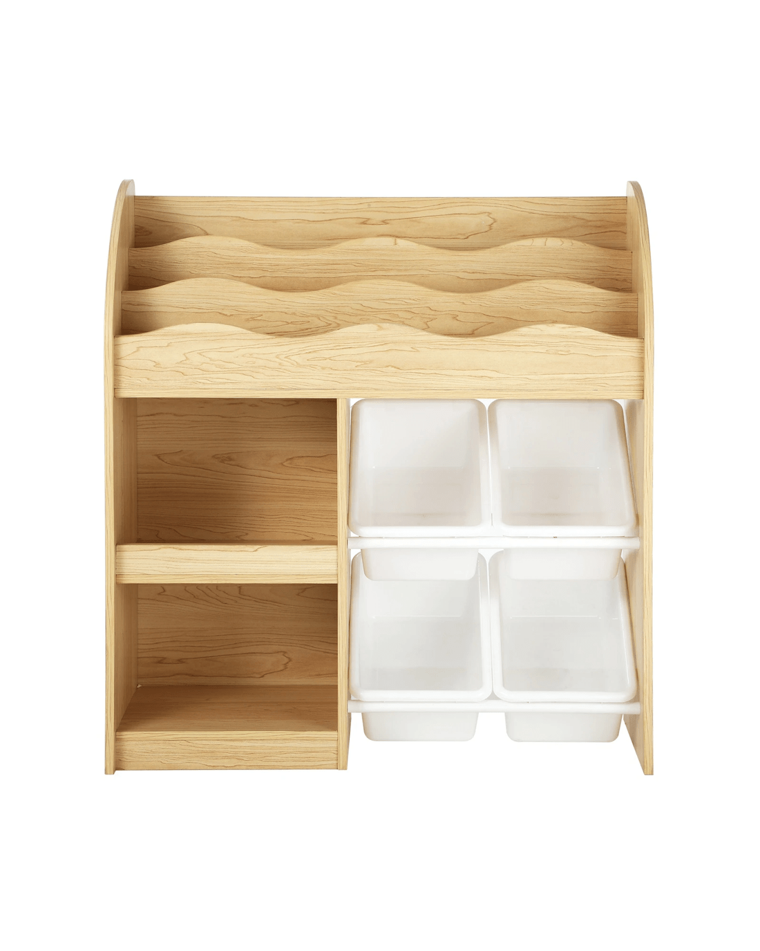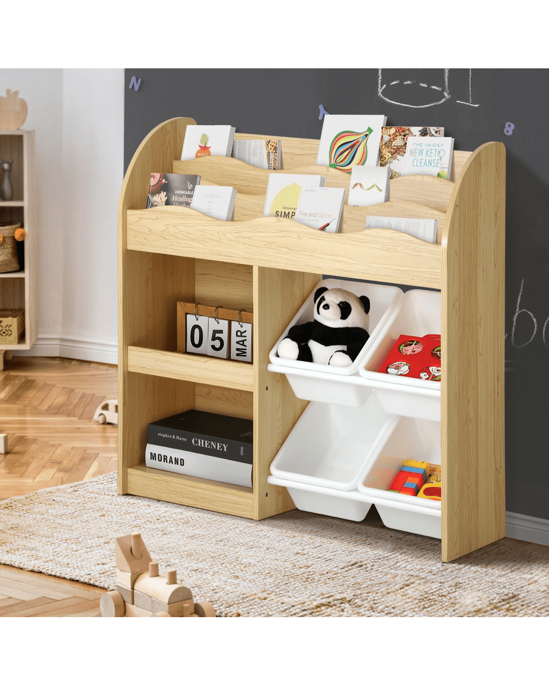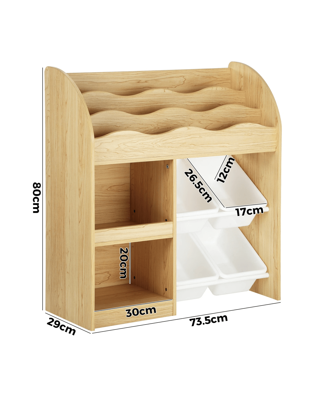 Sold by Kamprad's Oikos 1943Oikiture Kids Bookshelf 4 Bins Toy Box Storage Organiser Display Shelf - Natural