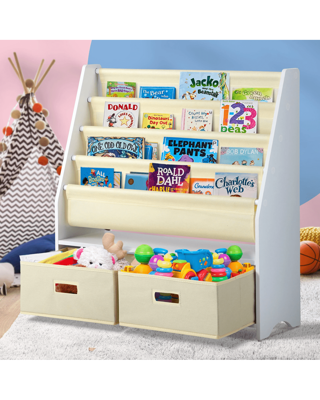 Oikiture Kids Bookshelf Bookcase Children Toys Storage Shelf Rack Diy Organiser - Multi