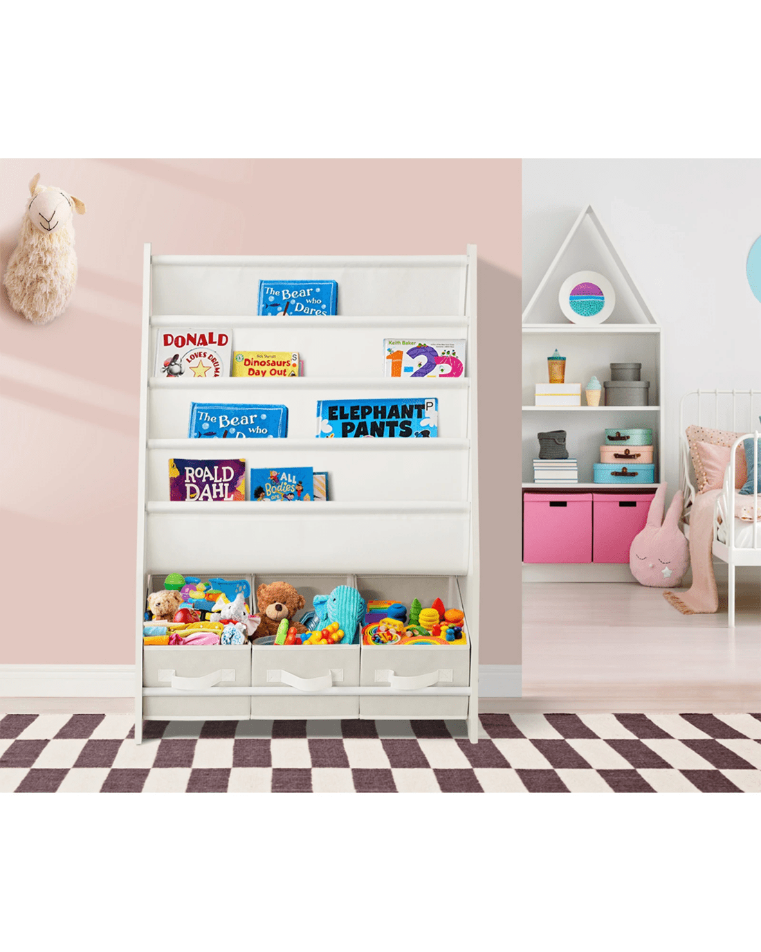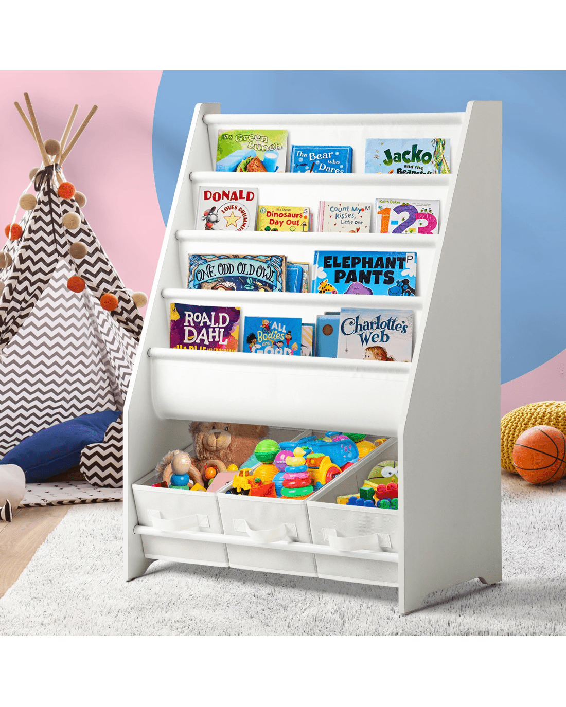 Oikiture Kids Bookshelf Toy Storage Box Organiser Display Shelf Diy Storage Rack - White