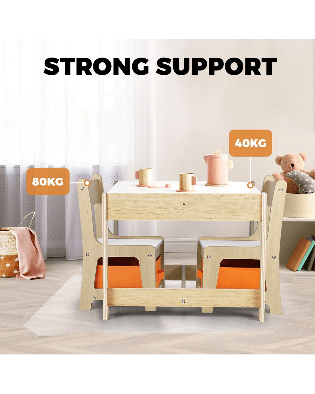 Sold by Kamprad's Oikos 1943Oikiture Kids Table And Chairs Set Activity Play Study Desk Toys Storage Box - Natural