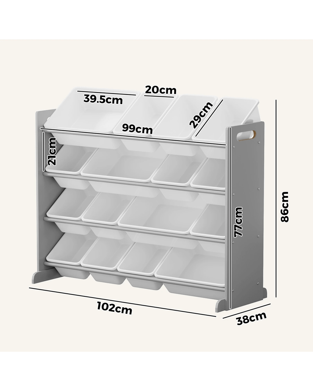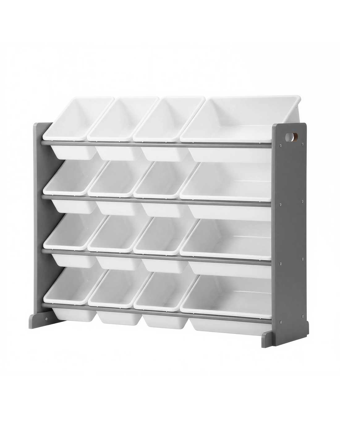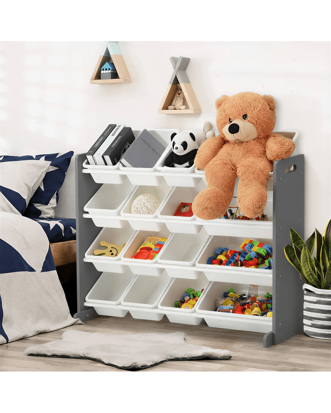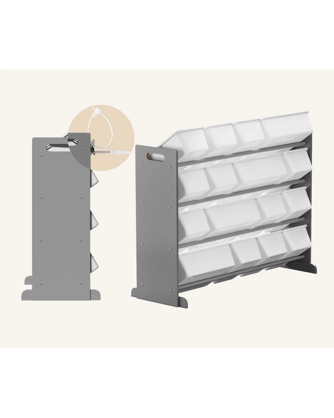 Sold by Kamprad's Oikos 1943Oikiture Kids Toy Box Organiser 16 Bins Display Shelf Removable Drawer - Grey