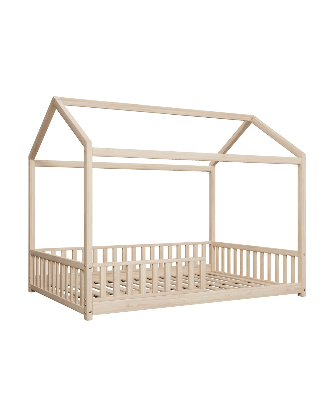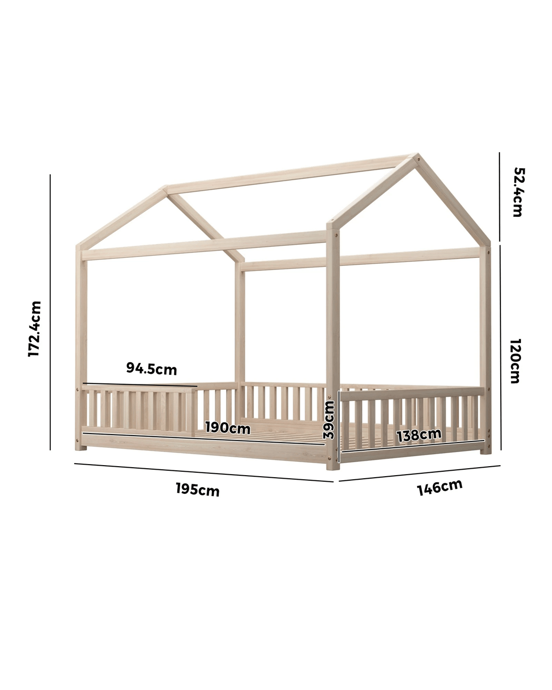 Oikiture Kids Wooden Bed Frame House Beds Platform Double Natural Timber Pine - Natural
