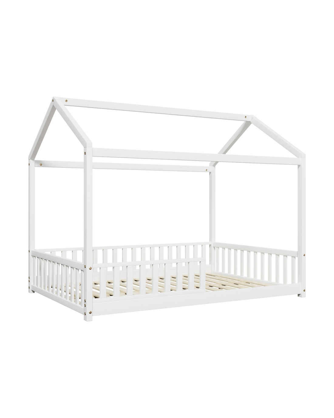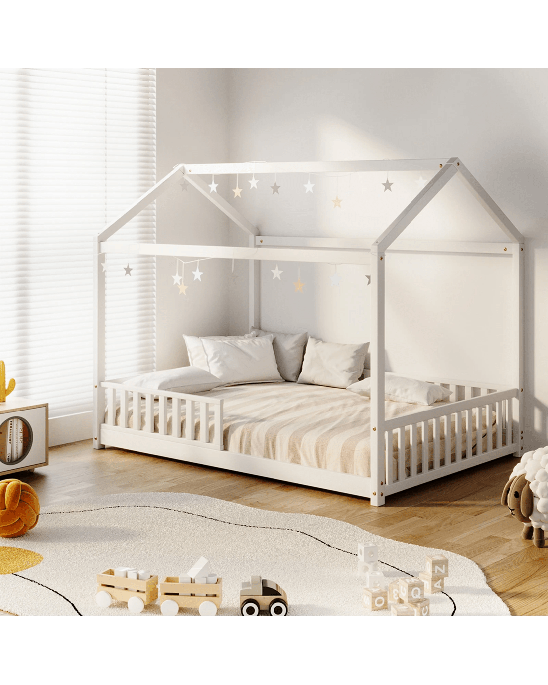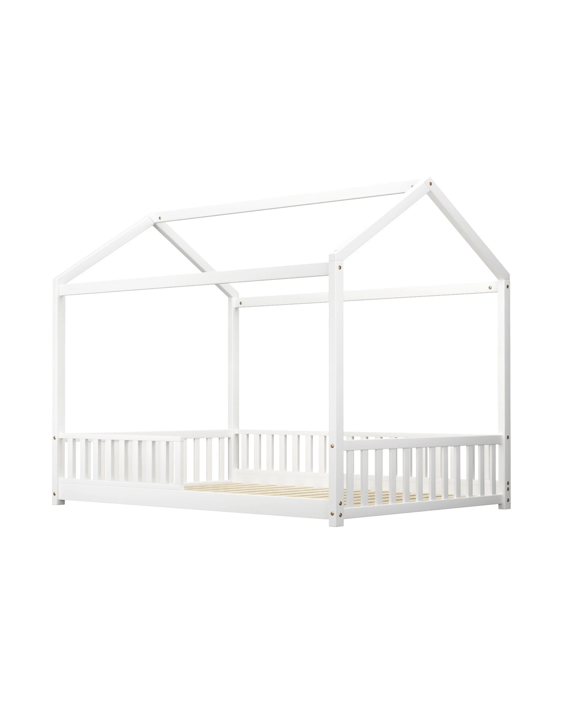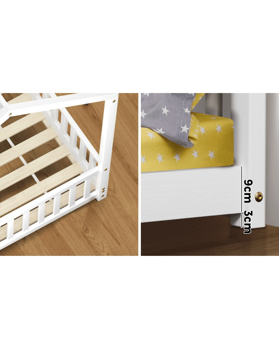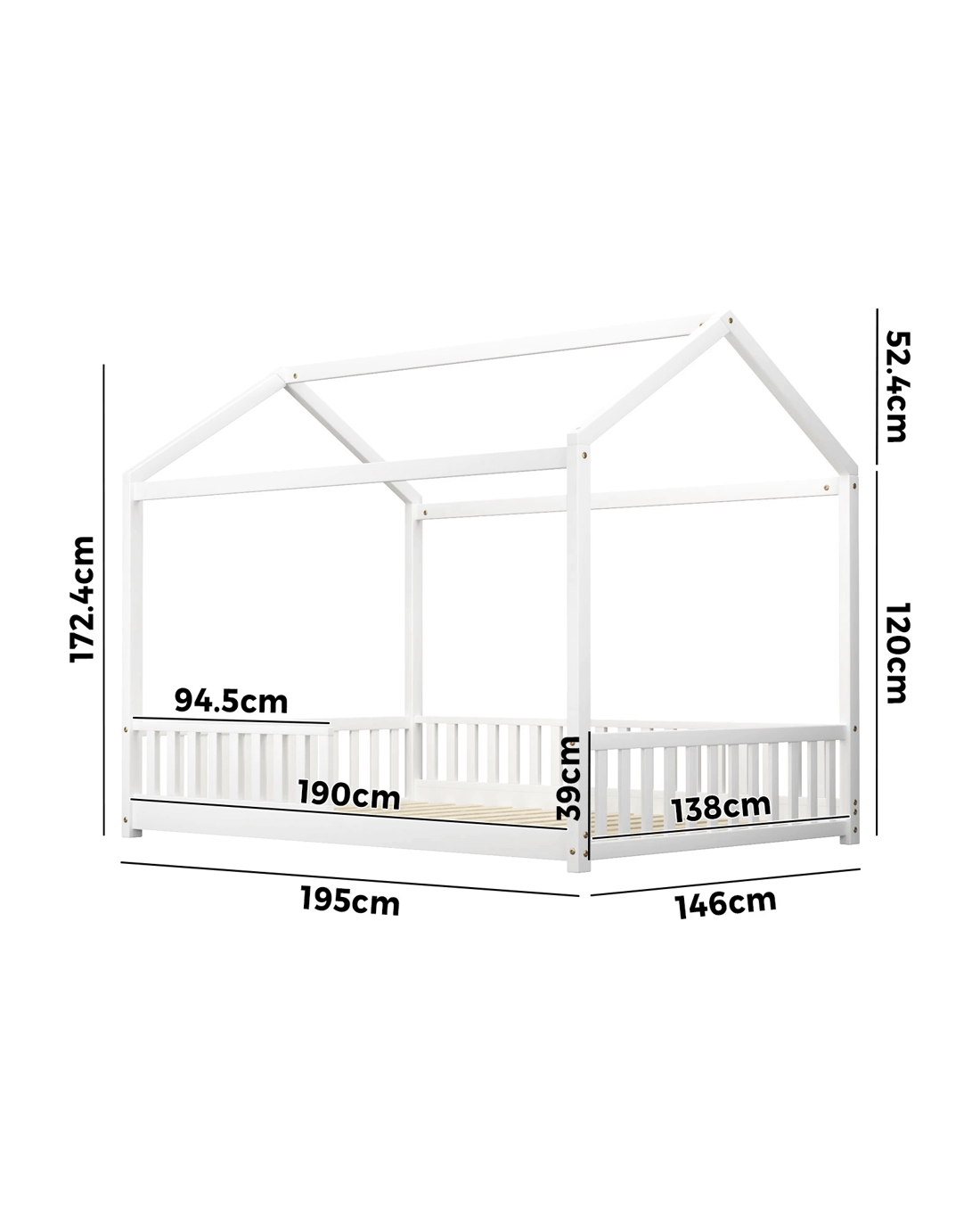 Sold by Kamprad's Oikos 1943Oikiture Kids Wooden Bed Frame House Beds Platform Double Timber Pine - White