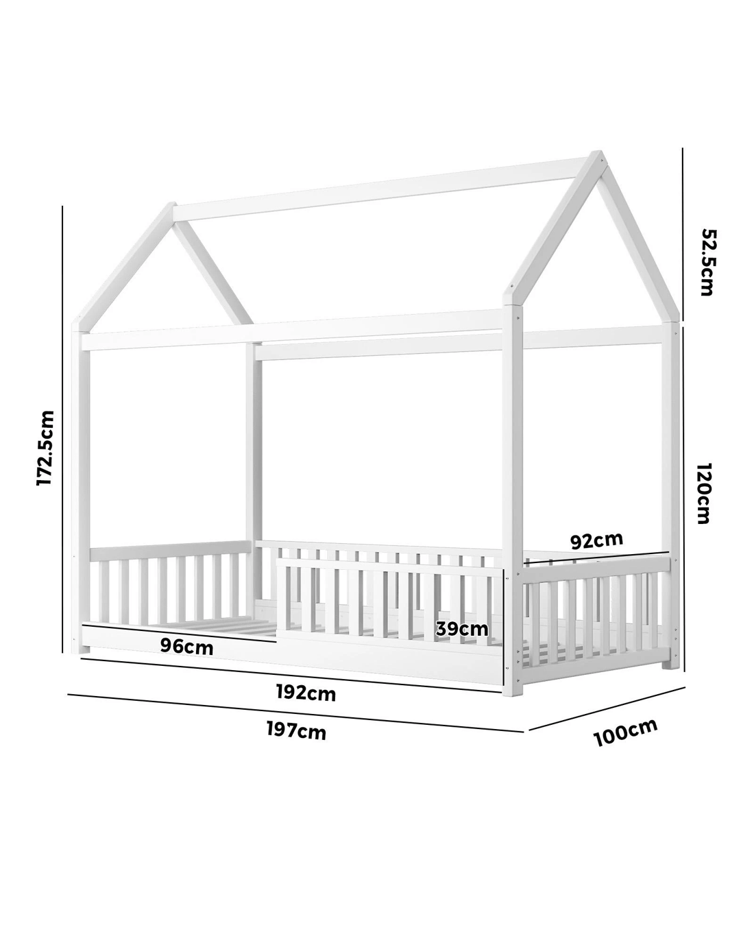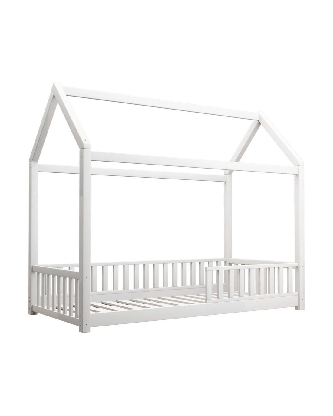 Oikiture Kids Wooden Bed Frame House Beds Platform Timber Pine Single - White