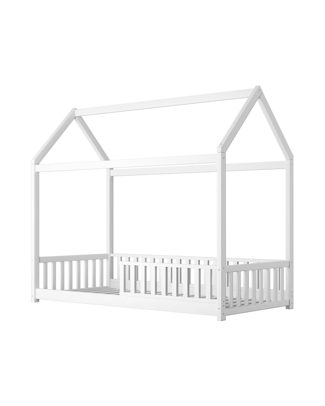 Sold by Kamprad's Oikos 1943Oikiture Kids Wooden Bed Frame House Beds Platform Timber Pine Single - White